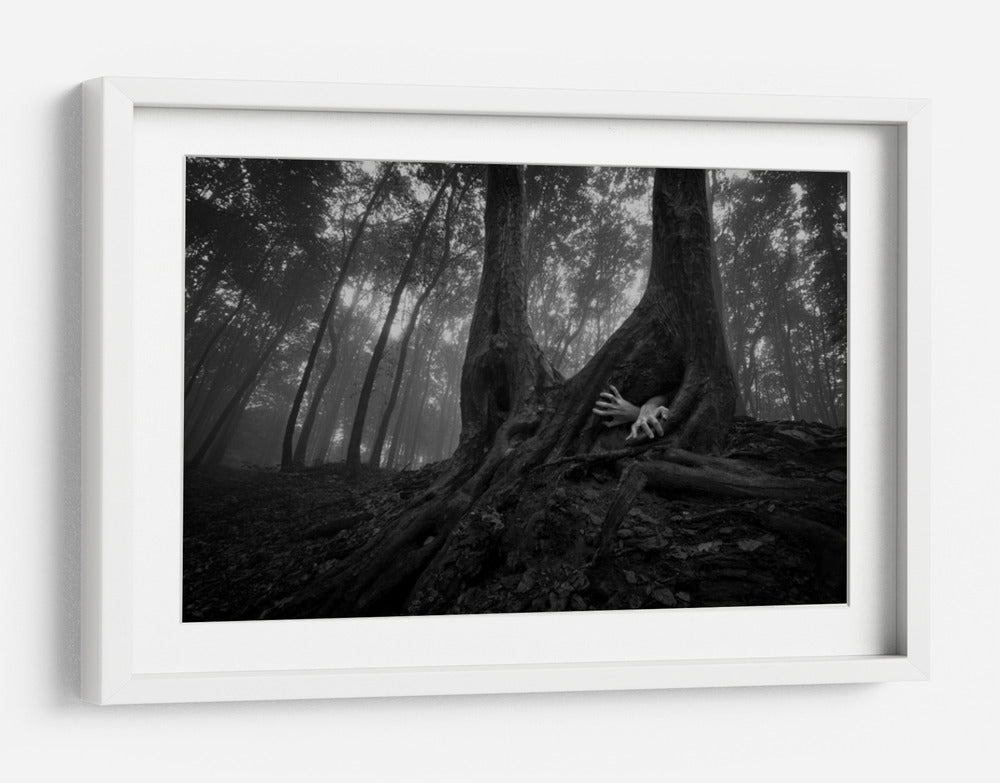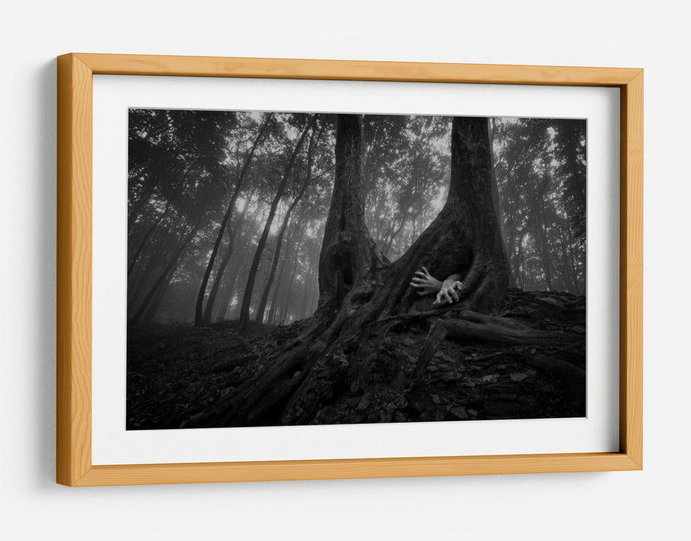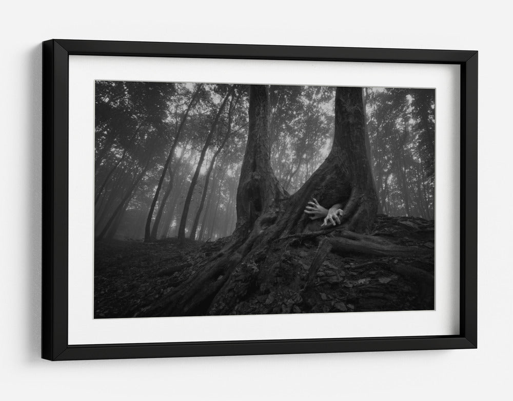 Adéntrate en la misteriosa obra de arte "Desde el otro lado", una pieza evocadora que captura la esencia de lo desconocido en un bosque neblinoso. Las manos emergiendo de la base de un árbol antiguo invitan a la reflexión, creando una atmósfera de suspense y maravilla. La paleta monocromática intensifica el drama y el misterio, con un juego de luces y sombras que guía la mirada a través de la densa arboleda. Este cuadro decorativo es ideal para aquellos que buscan añadir un toque de intriga y profundidad a sus espacios. Su composición dramática y su temática surrealista lo convierten en un punto focal cautivador para salas de estar modernas, estudios o cualquier lugar donde se desee una pieza que genere conversación y estimule la imaginación. "Desde el otro lado" no es solo una imagen, es una invitación a explorar los límites de la percepción y a conectar con lo enigmático que reside en la naturaleza y en nosotros mismos. Un lienzo perfecto para amantes del arte contemporáneo y la fotografía conceptual que buscan trascender lo ordinario y adornar sus hogares con piezas únicas y con carácter.
