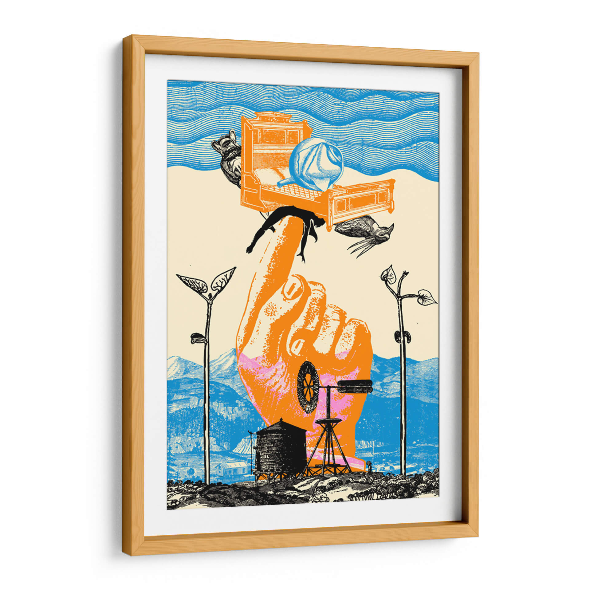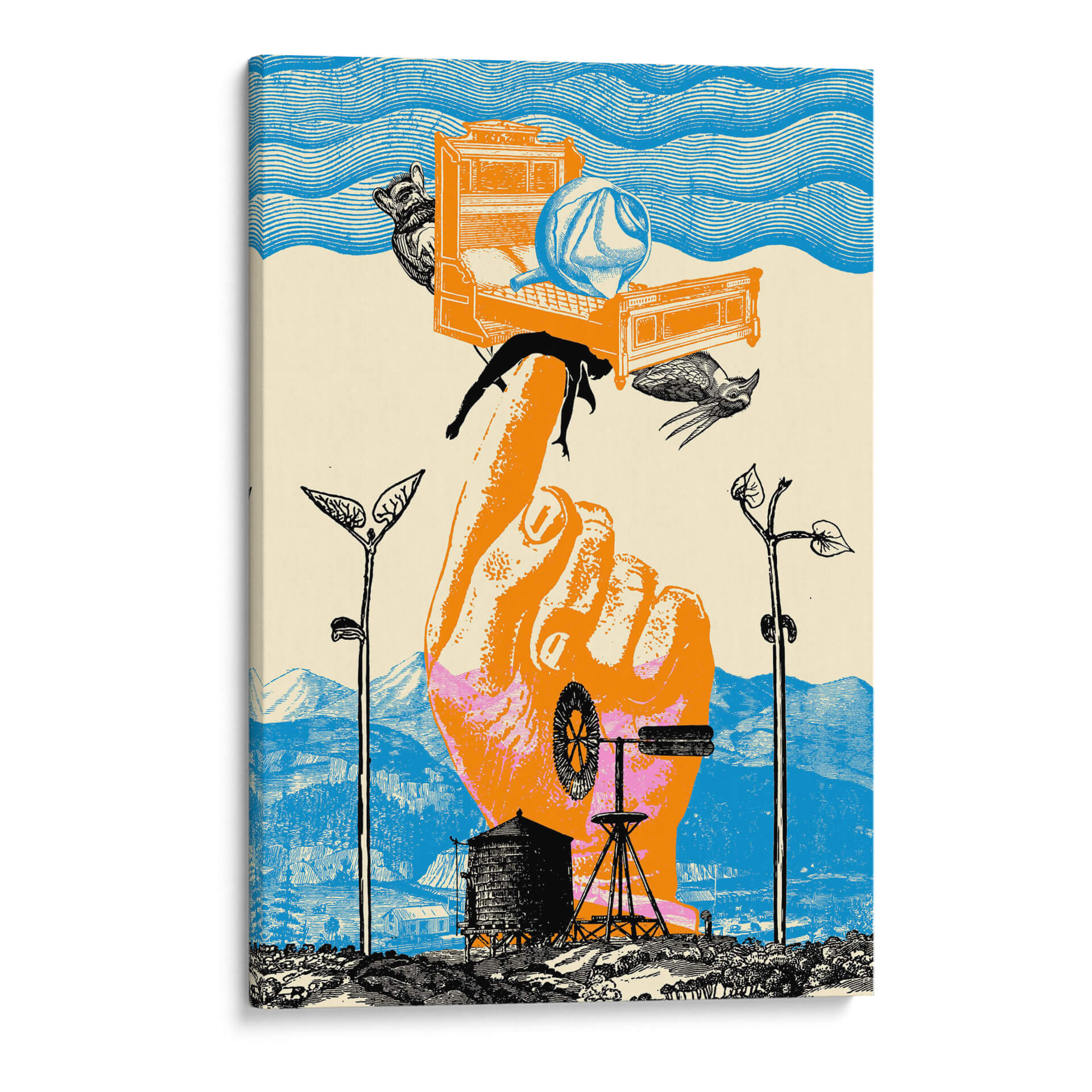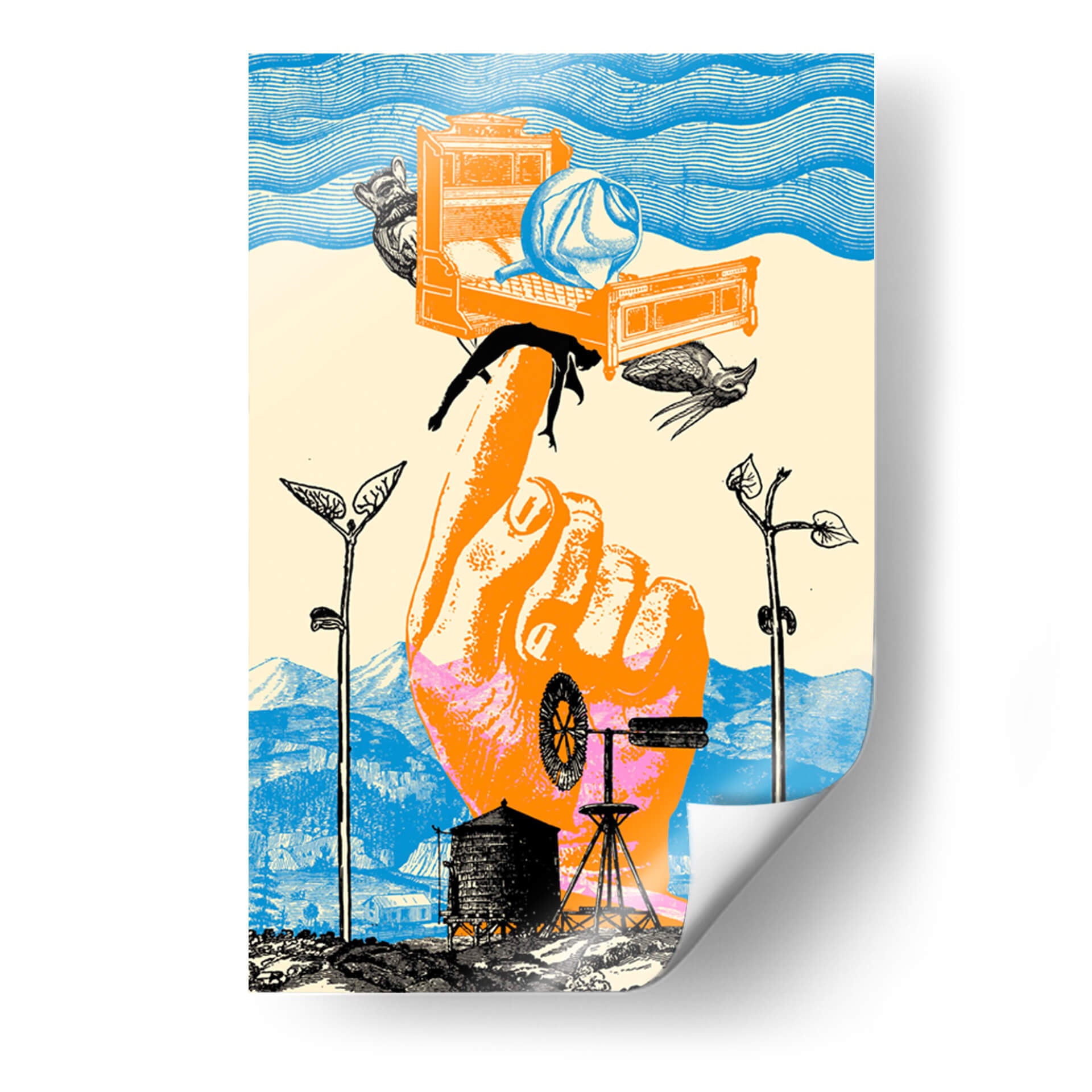 Sumérgete en la enigmática obra 'Despertar III' de Pawel Pacholec, una pieza visualmente impactante que fusiona elementos surrealistas y oníricos para crear una atmósfera de reflexión profunda. Esta composición explora la fragilidad de la existencia y la conexión entre lo humano y lo natural, utilizando una paleta de colores vibrantes que capturan la atención. El contraste entre el gran tamaño de la mano que sostiene elementos cotidianos y la vastedad del paisaje de fondo genera una tensión intrigante. Los detalles intrincados, como el molino de viento y las siluetas de la fauna, añaden capas de significado a esta obra de arte moderno. 'Despertar III' es ideal para espacios que buscan un toque de originalidad y conversación, como salas de estar, estudios u oficinas creativas. Este cuadro decorativo contemporáneo invita a la contemplación, ofreciendo una perspectiva única sobre el ciclo de la vida y el despertar de la conciencia. Su estilo distintivo lo convierte en un punto focal excepcional para cualquier decoración interior, aportando una dosis de misterio y arte vanguardista a tu hogar. Descubre la profundidad de 'Despertar III' y permite que su narrativa visual enriquezca tu entorno.