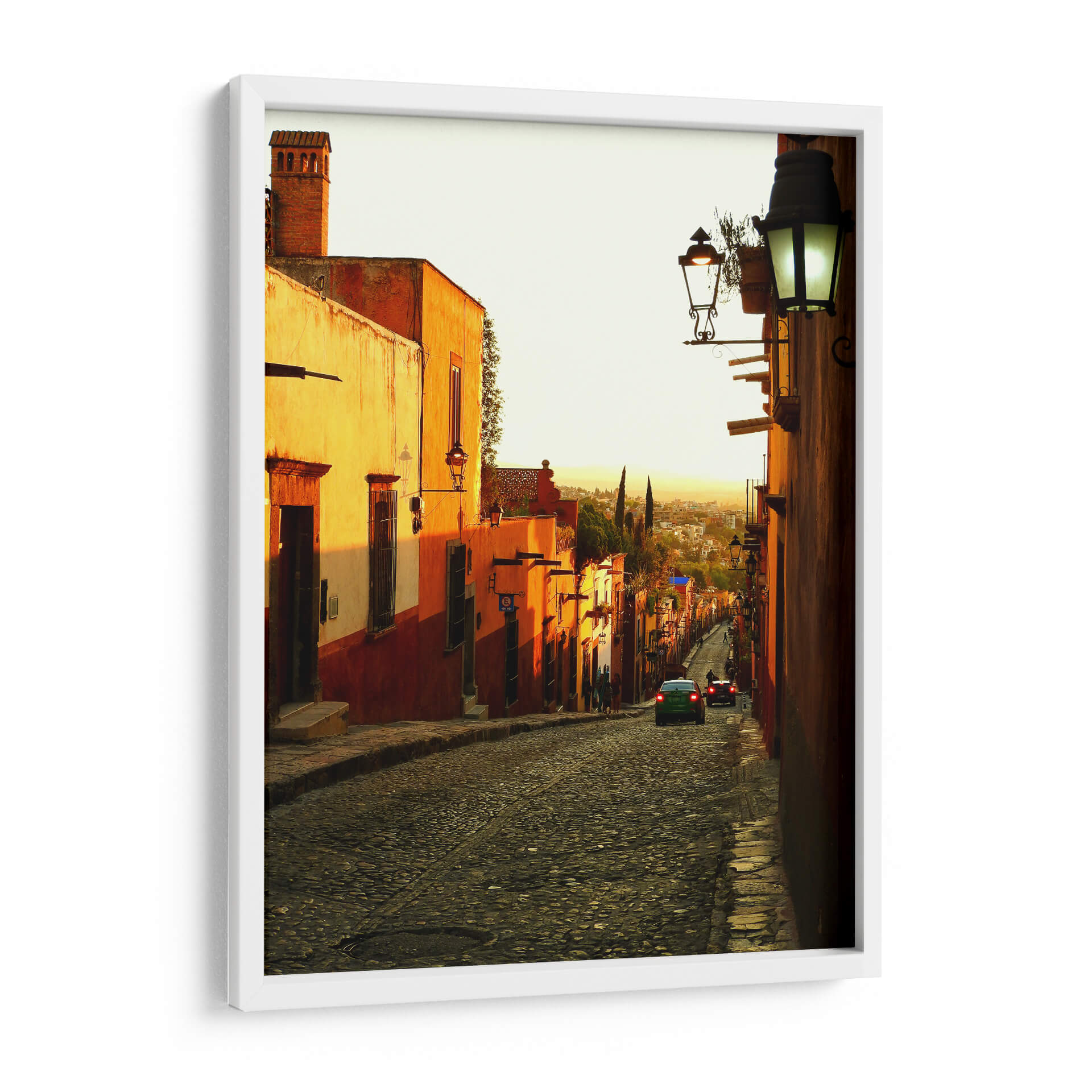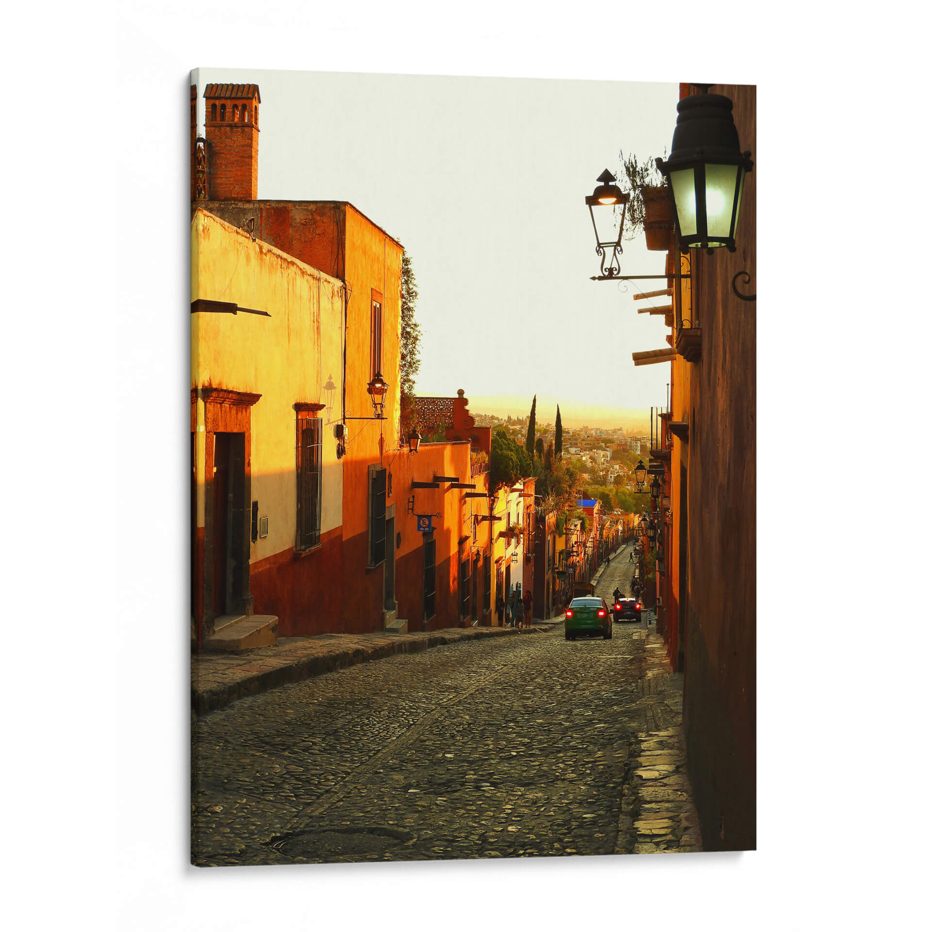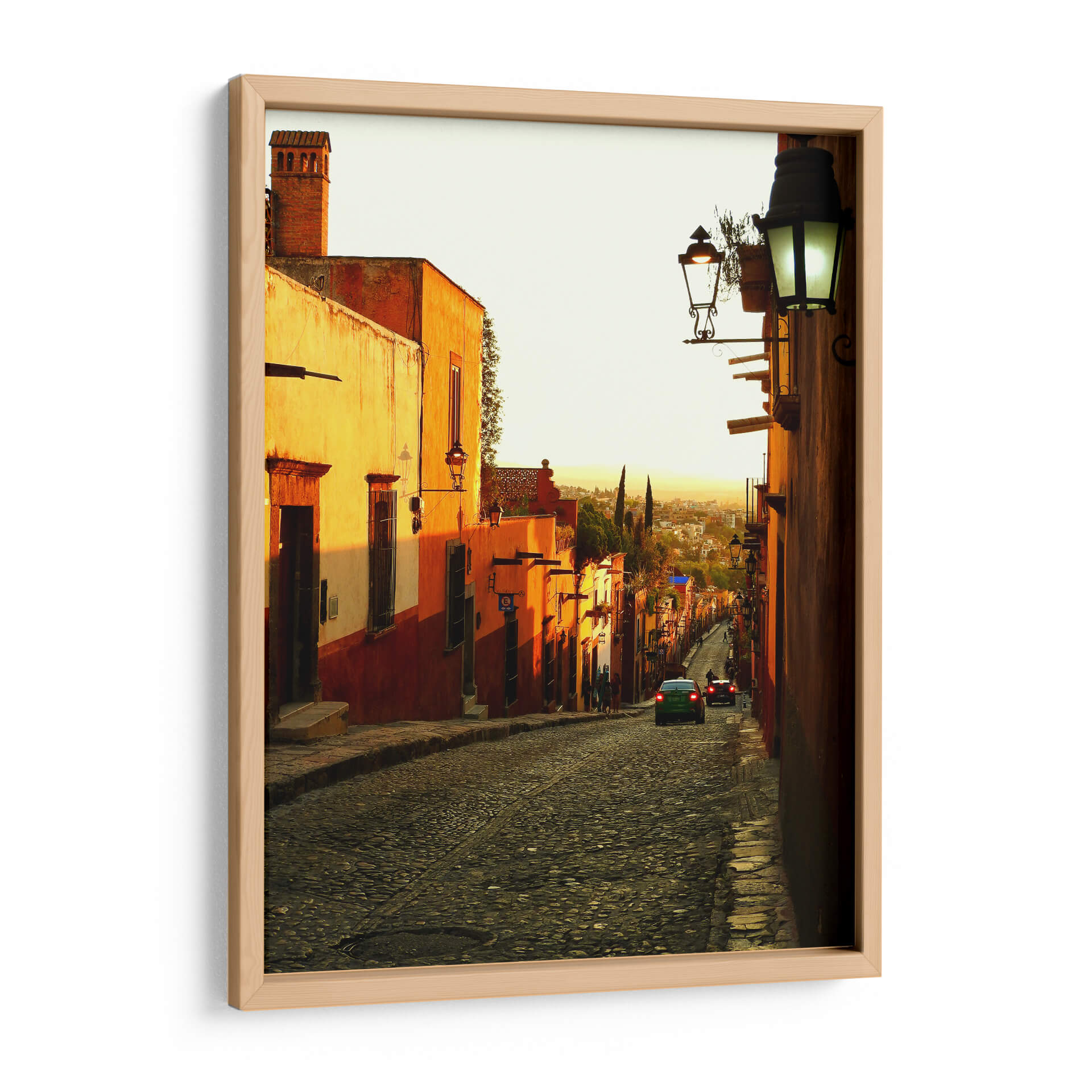 Transporta tus sentidos a una encantadora calle adoquinada bañada por la cálida luz del atardecer con "Destino" de Hugo Segura. Este cuadro decorativo captura la esencia de un pueblo pintoresco, donde las fachadas ocres y rojizas se alzan junto a farolas de hierro forjado que prometen guiar el camino. La perspectiva de la calle, que se pierde en la distancia, invita a la contemplación y al ensueño, mientras que los coches que transitan suavemente añaden un toque de vida y movimiento a la escena. La paleta de colores, dominada por tonos cálidos como el naranja, el ocre y el marrón, crea una atmósfera acogedora y nostálgica, evocando la sensación de un viaje o una escapada. Los detalles de los adoquines y la arquitectura tradicional hablan de historia y autenticidad. "Destino" es una obra que no solo embellecerá tus paredes, sino que también te transportará a un lugar de paz y reflexión, ideal para salones, pasillos o estudios que buscan una conexión con la belleza del mundo y la calidez del hogar. Una pieza que celebra la arquitectura, la luz y el espíritu de los lugares con encanto.