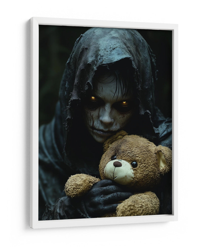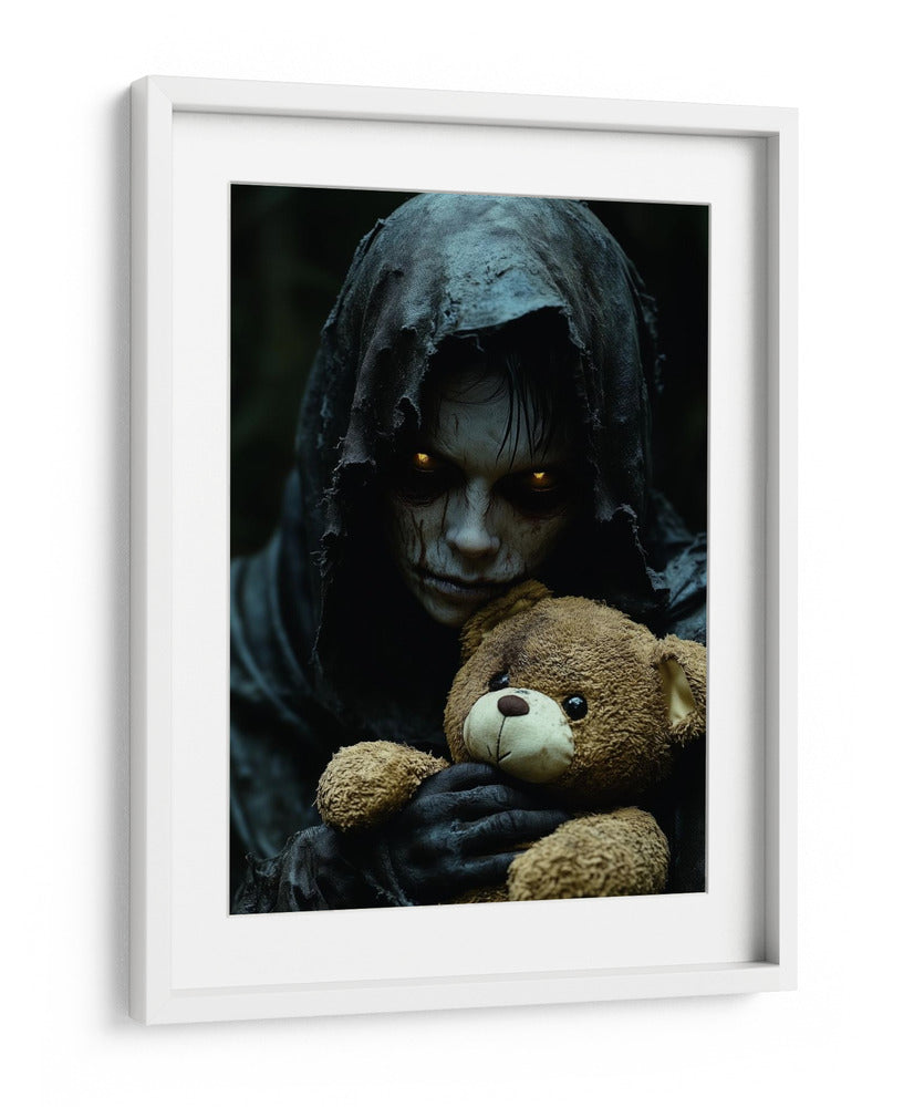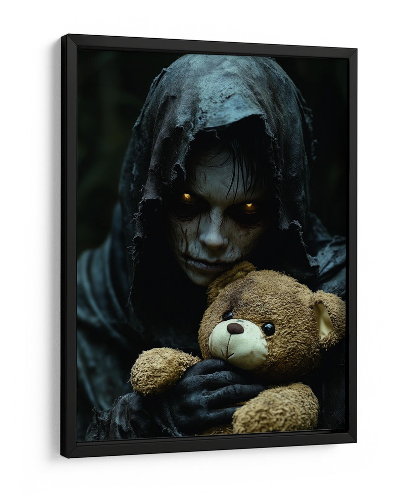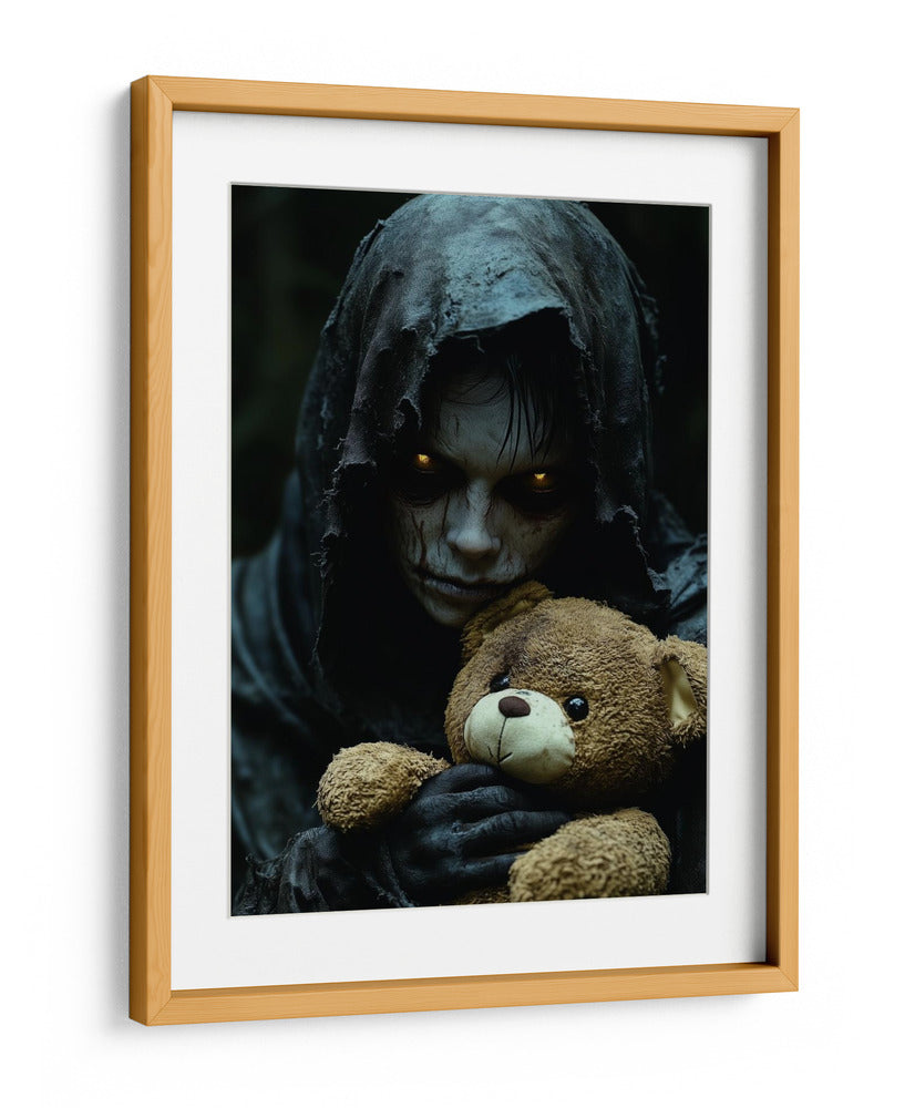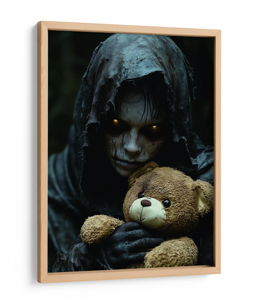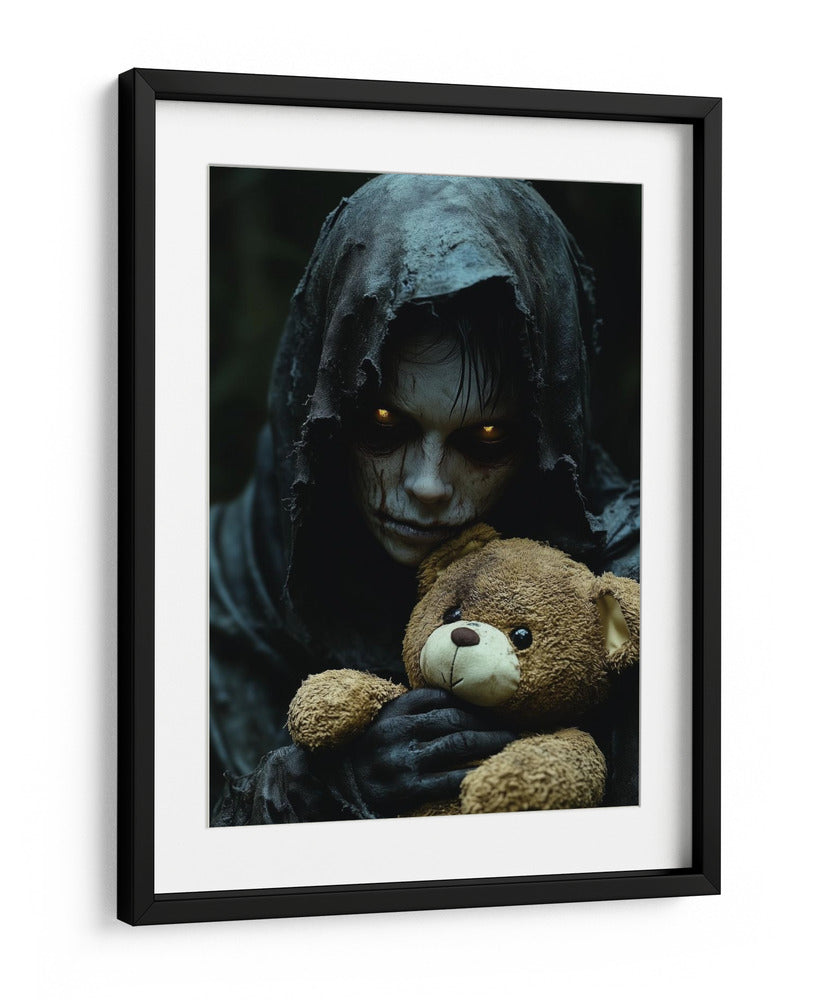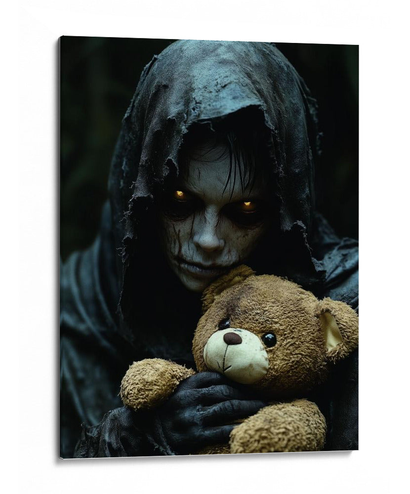 Sumérgete en la enigmática obra de arte "Don de los despreciados" de David Drake, un cuadro decorativo que desafía las convenciones y evoca una profunda reflexión. Esta pieza visualmente impactante presenta una figura sombría, envuelta en una túnica oscura y con una mirada penetrante de ojos brillantes, aferrando un tierno osito de peluche. La paleta de colores se centra en tonos oscuros y sombríos, acentuada por el contraste de los ojos luminosos, creando una atmósfera de misterio y melancolía. El estilo, que roza lo gótico y lo surrealista, invita a explorar la dualidad entre la oscuridad y la inocencia, lo aterrador y lo conmovedor. La composición, con un primer plano enfocado en el rostro y el osito, dirige la atención del espectador hacia la narrativa emocional de la obra. "Don de los despreciados" es ideal para aquellos que buscan una pieza de arte decorativo única y provocadora que genere conversación y añada un toque de profundidad a espacios como un estudio, una sala de estar con carácter o incluso un dormitorio que busque una declaración audaz. Este cuadro decorativo no es solo una imagen, sino una invitación a contemplar las complejidades de la existencia, ideal para quienes aprecian el arte contemporáneo con un fuerte componente narrativo y emocional.