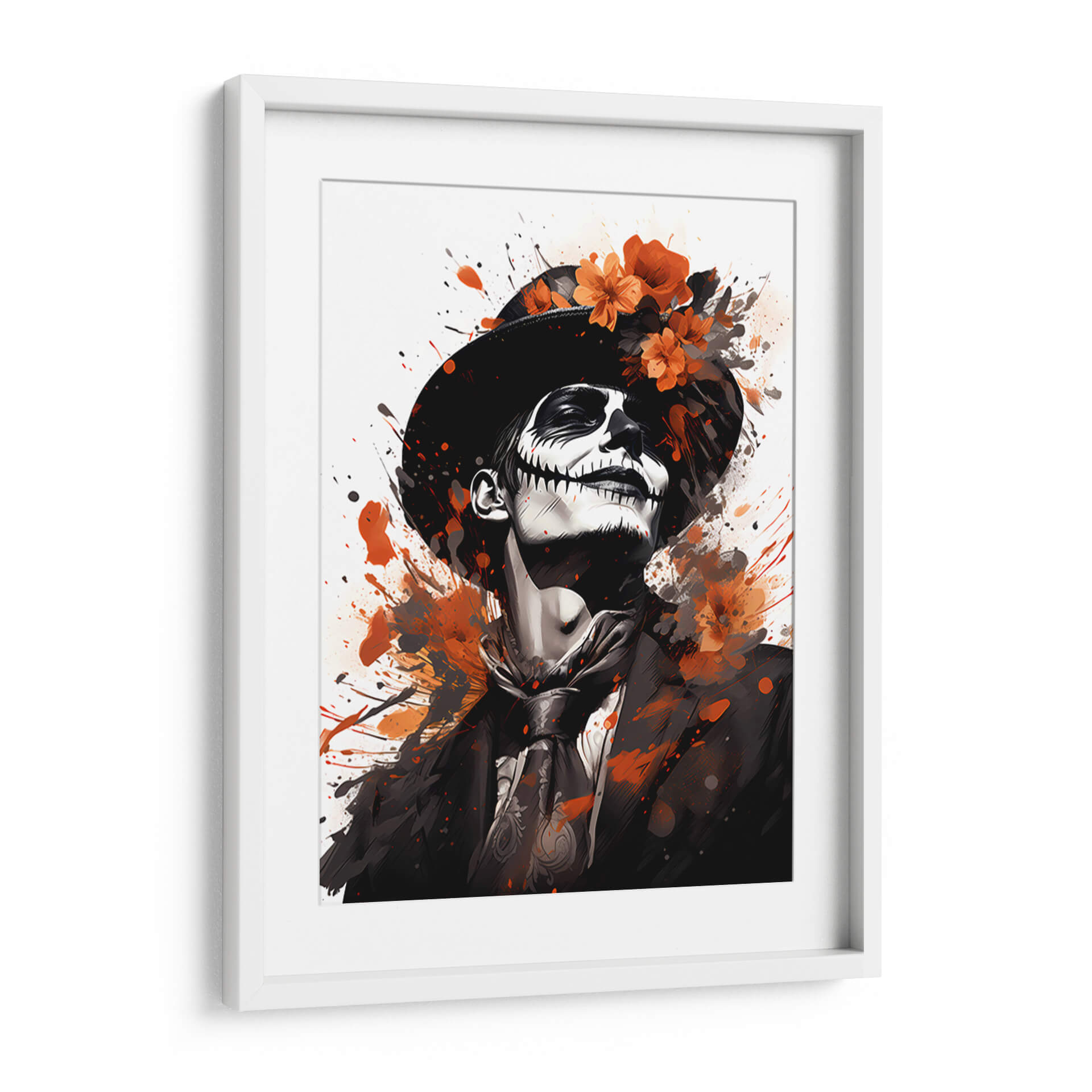 Sumérgete en la fascinante tradición mexicana con "El Catrín - Día de Muertos - 1", una obra de arte digital que captura la esencia de esta festividad icónica. La pieza presenta una figura masculina con el distintivo maquillaje de calavera, adornada con vibrantes flores naranjas y rodeada de salpicaduras de pintura que evocan energía y movimiento. Los contrastes dramáticos entre las sombras profundas y los toques de color crean una atmósfera cautivadora, a medio camino entre lo solemne y lo festivo. El estilo artístico fusiona elementos realistas con una expresividad abstracta, logrando un impacto visual potente. Este cuadro decorativo es ideal para quienes buscan añadir un toque de cultura, misterio y color a sus hogares u oficinas. Perfecto para salas de estar modernas, estudios o cualquier espacio que necesite un punto focal audaz y con carácter. "El Catrín" no es solo una decoración, es una celebración del arte y la tradición, lista para dar vida a tus paredes con su diseño único y su profunda conexión cultural. Transforma tu ambiente con esta pieza que rinde homenaje a una de las celebraciones más emblemáticas del mundo.