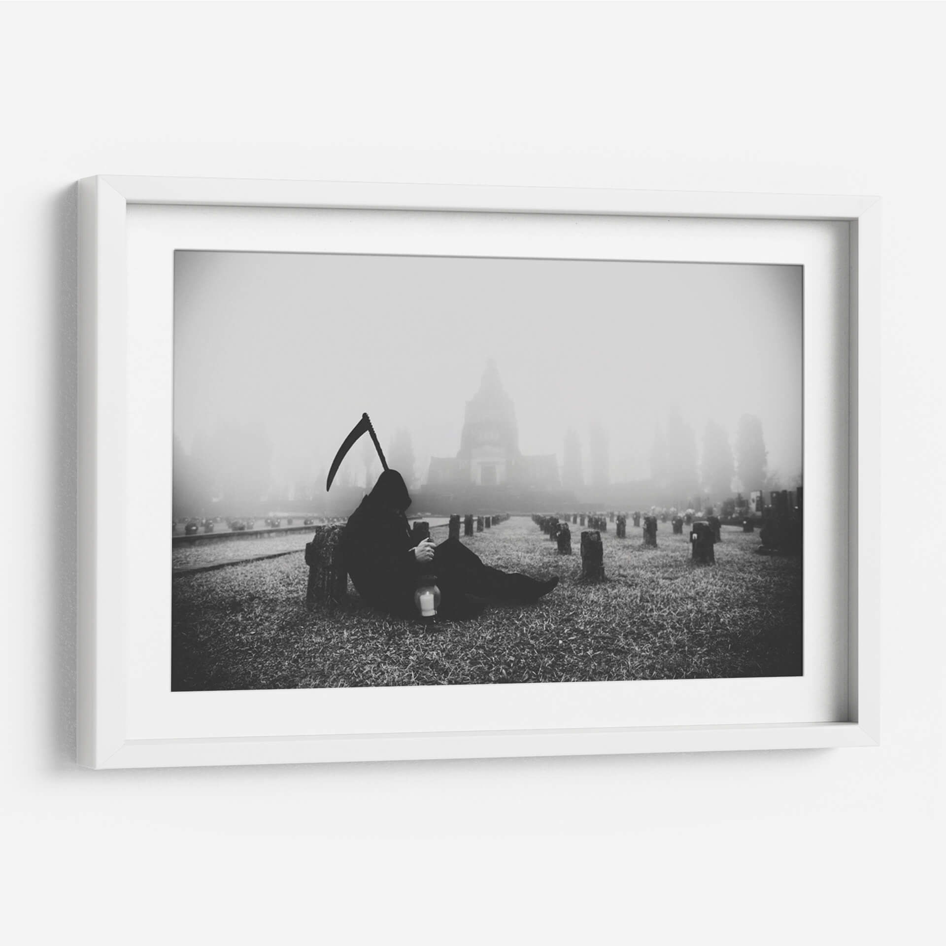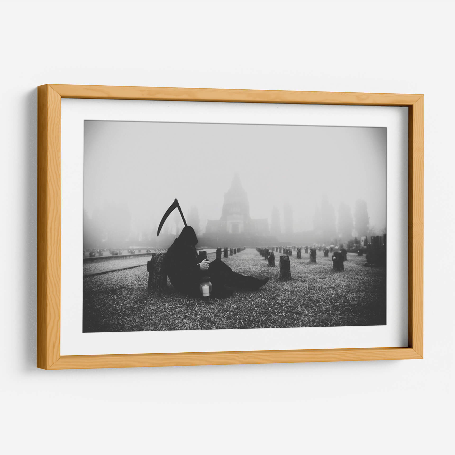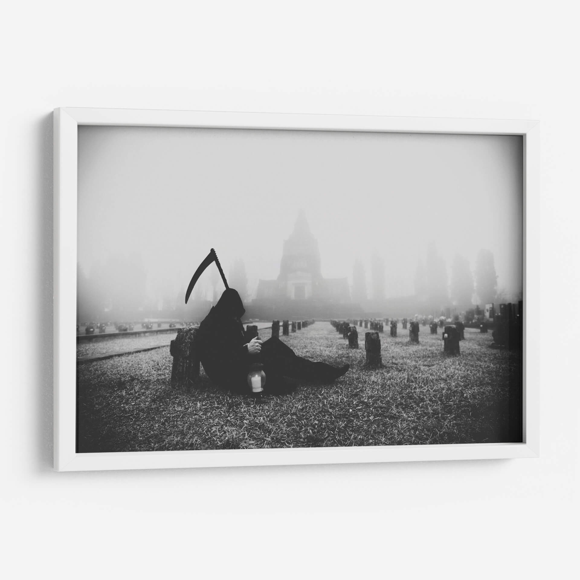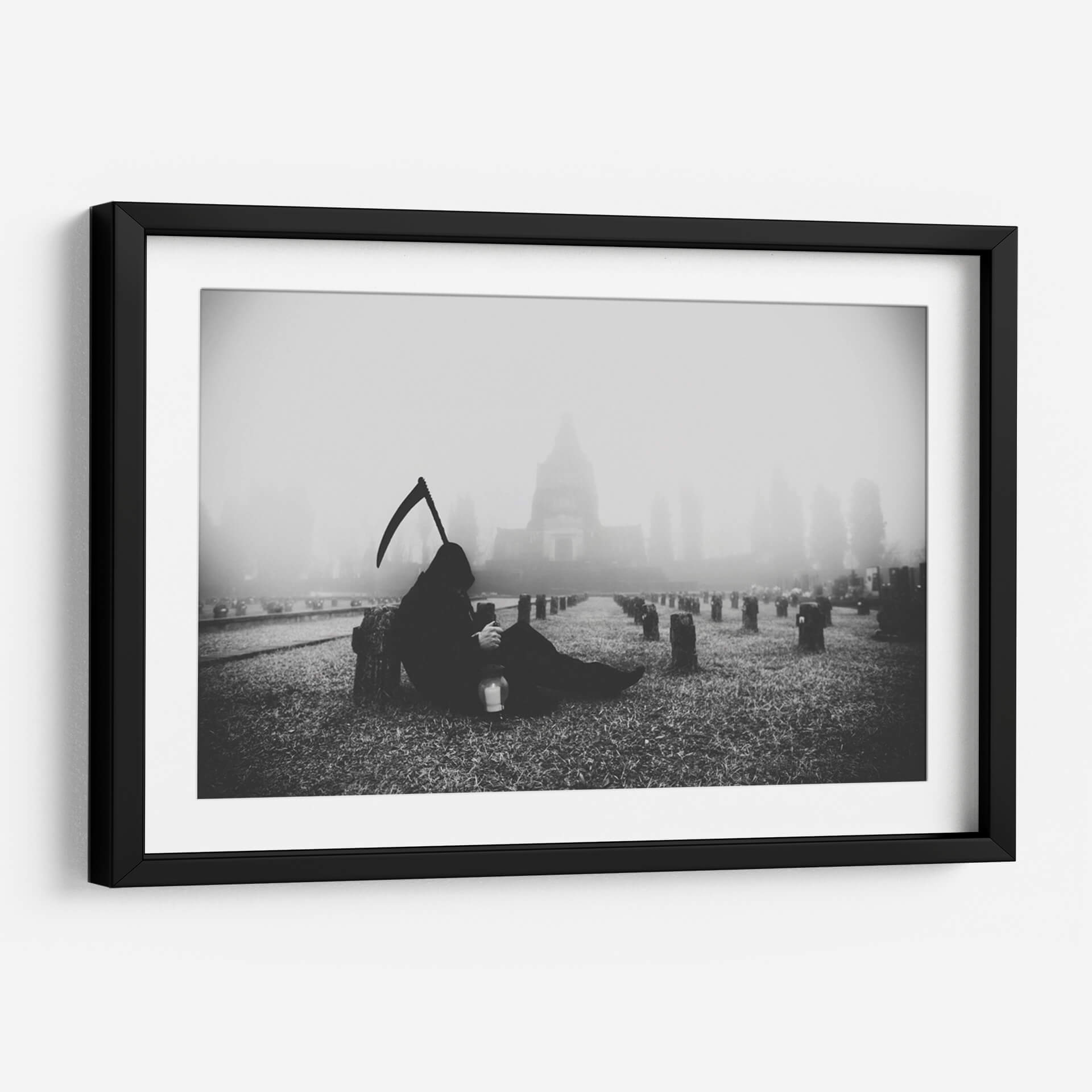 Sumérgete en la atmósfera enigmática y contemplativa de "El descanso de la Parca" de Marco Redaelli. Esta impactante obra de arte decorativo captura la figura icónica de la Parca sentada en un cementerio neblinoso, sosteniendo una vela que ilumina tenues destellos de esperanza o reflexión en medio de la quietud eterna. La paleta de colores monocromática, dominada por grises profundos y blancos etéreos, crea un ambiente melancólico y sereno, invitando a la introspección sobre la vida y el tiempo. Las filas de lápidas y la silueta de una estructura arquitectónica en el fondo, envueltas en una bruma misteriosa, intensifican la sensación de paz sombría y atemporalidad. "El descanso de la Parca" es ideal para espacios que buscan un toque de profundidad emocional y un punto de conversación único, como un estudio, una sala de estar con un estilo gótico o moderno, o incluso un dormitorio para aquellos que aprecian la belleza en lo efímero. Este cuadro decorativo contemporáneo no solo embellece tu pared, sino que también evoca una profunda meditación sobre la existencia, transformando tu hogar en un santuario de arte reflexivo y estéticamente poderoso.
