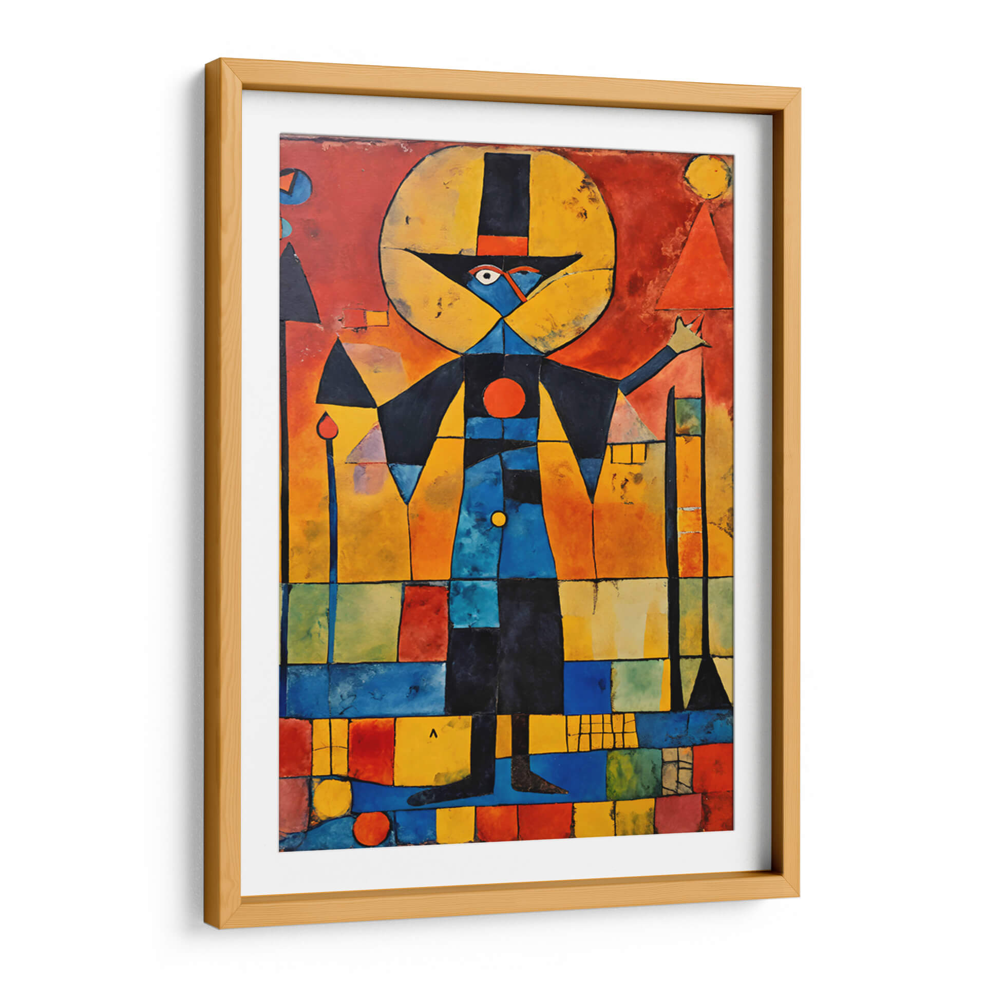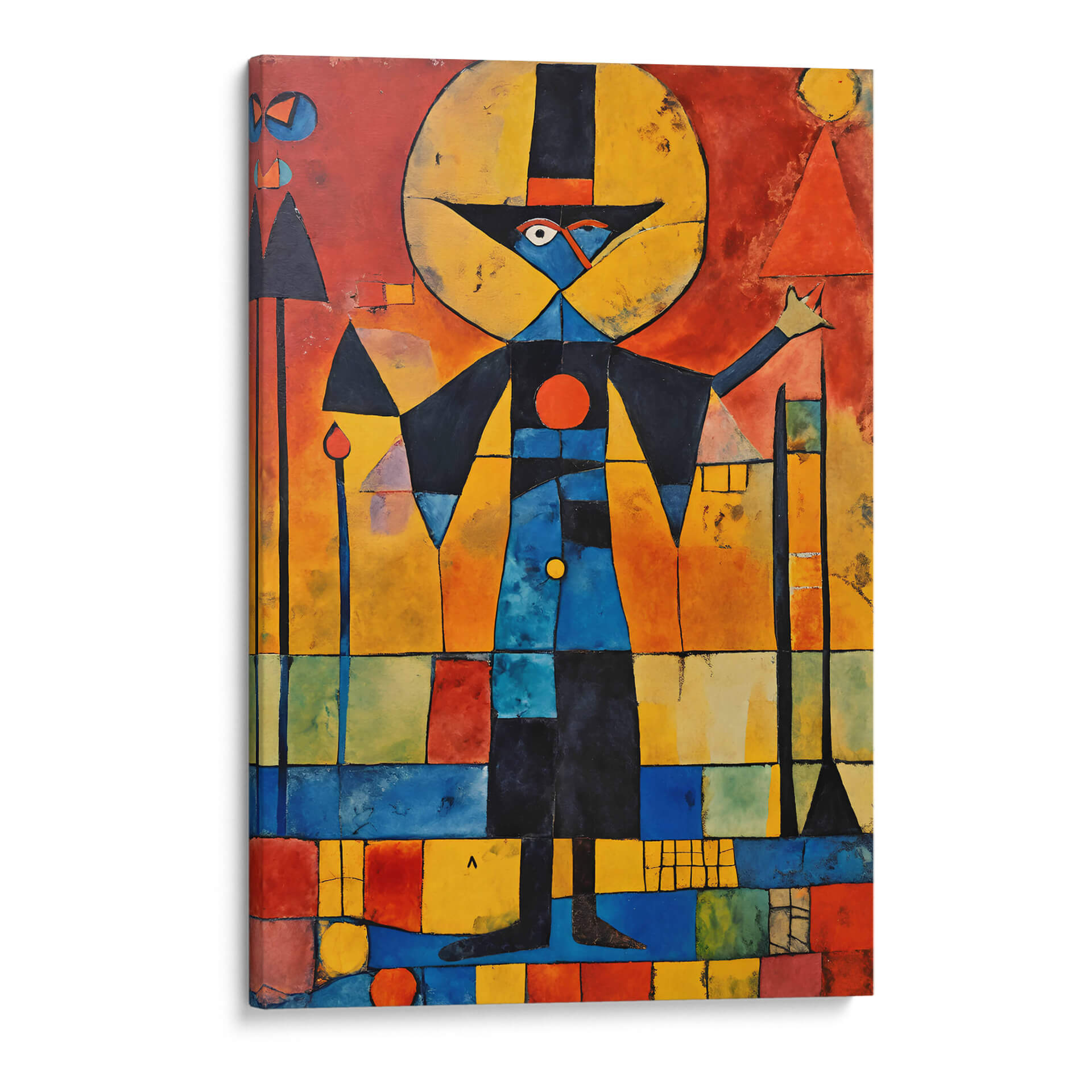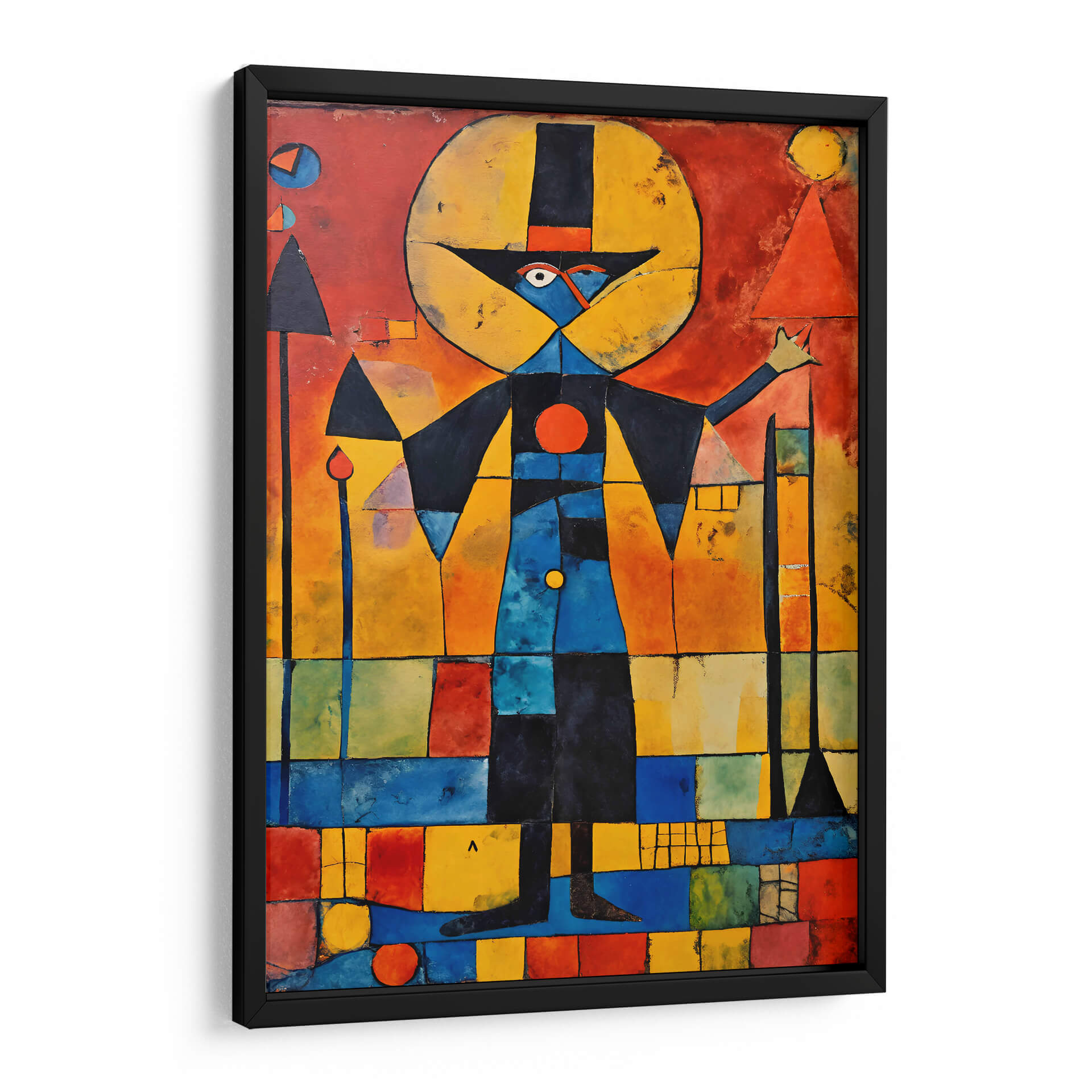 Adéntrate en el enigmático universo de 'El Mago Celeste', una obra de arte digital que evoca misterio y poder cósmico. Esta pieza se caracteriza por su audaz composición geométrica y una paleta de colores vibrantes que fusiona tonos cálidos como el naranja y el amarillo con profundos azules y negros. La figura central, estilizada y enigmática, parece un chamán o un guardián interdimensional, coronado por un gran círculo solar y portando símbolos arcanos. Las formas triangulares y rectangulares que rodean a la figura crean una sensación de estructura y orden dentro del caos aparente, sugiriendo un equilibrio entre lo terrenal y lo espiritual. El estilo, que fusiona elementos del arte abstracto, surrealista y simbolista, invita a la contemplación y a la interpretación personal. "El Mago Celeste" es ideal para espacios que buscan un toque de originalidad y profundidad, como una sala de estar moderna, un estudio creativo o una oficina que inspire la reflexión. Transforma tu pared en un portal a otro plano con este cuadro decorativo que desata la imaginación.