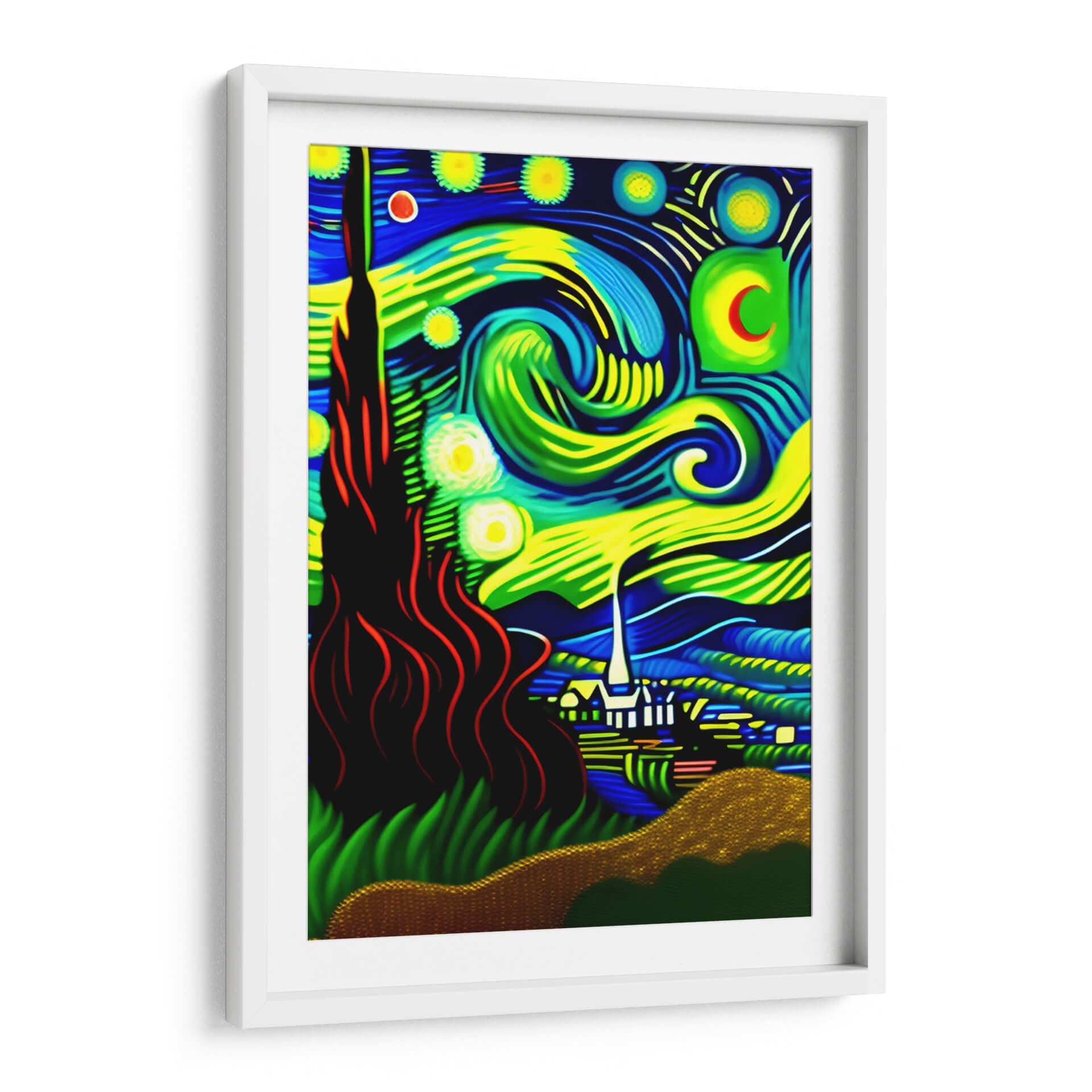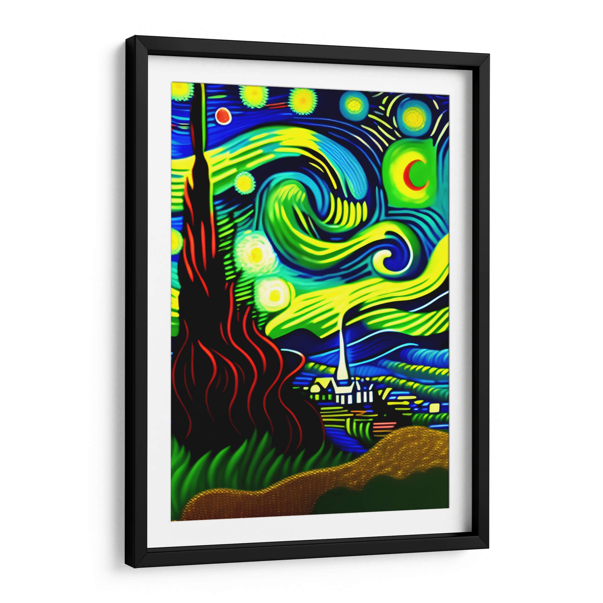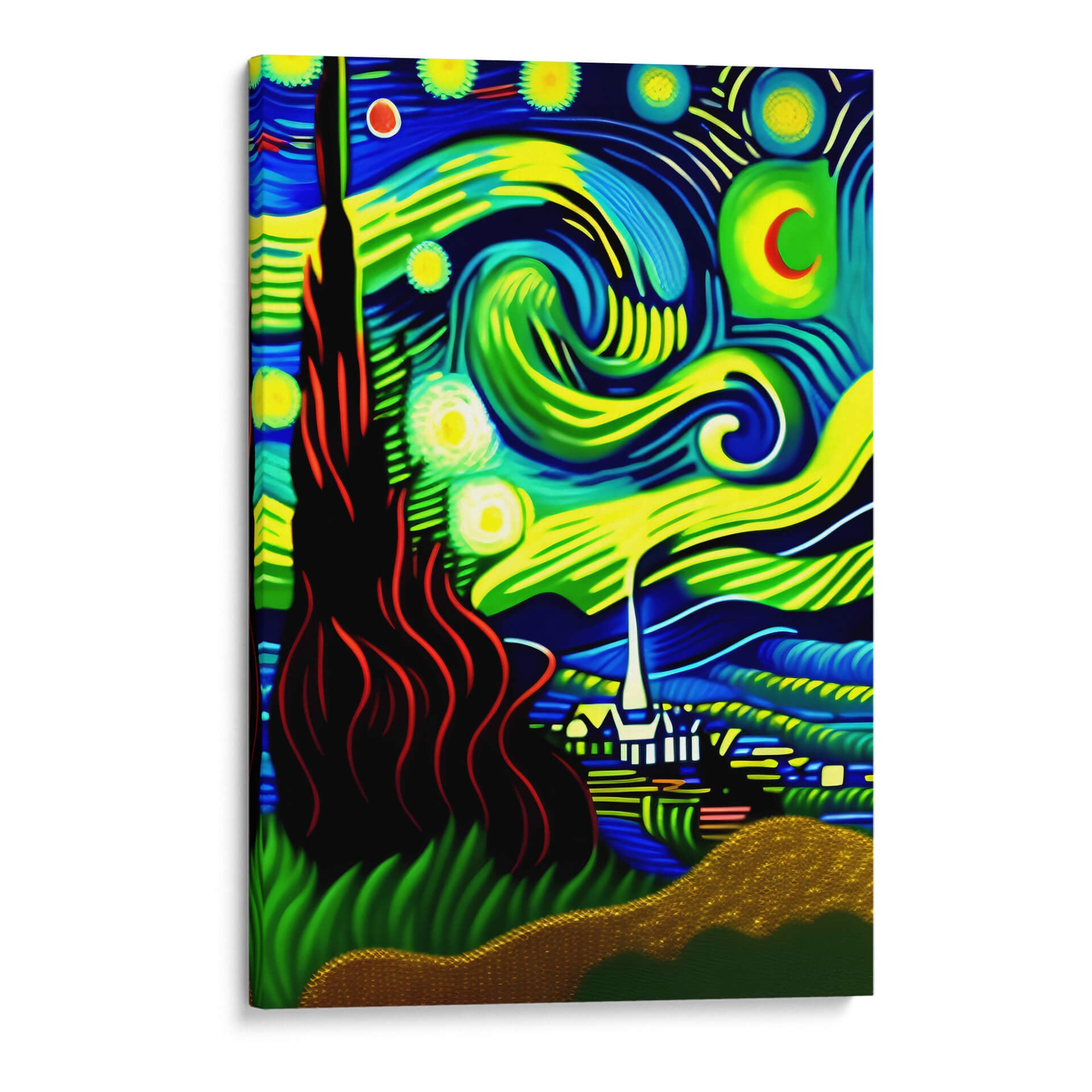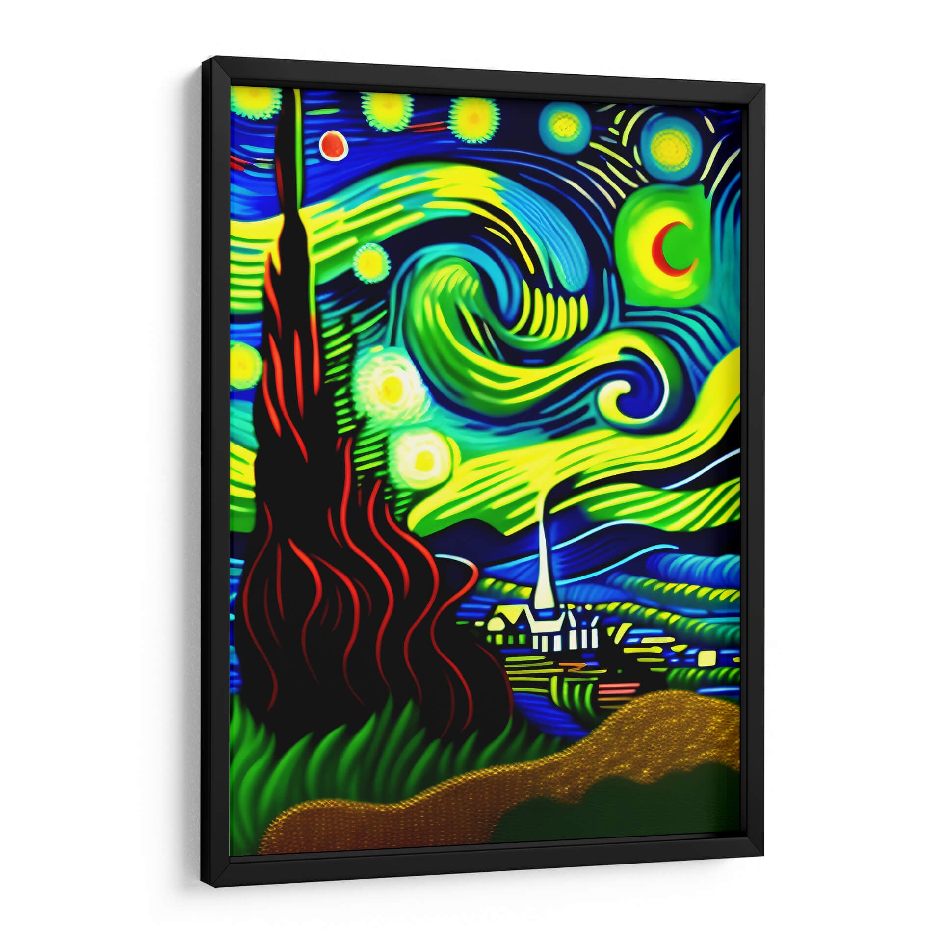 Sumérgete en la vibrante y enigmática obra de arte 'El Pueblo Impresionista', una pieza digital que evoca la energía y el movimiento de un paisaje nocturno transformado por la imaginación. Los colores intensos y las pinceladas fluidas crean una atmósfera dinámica y soñadora, perfecta para añadir un toque de originalidad y carácter a cualquier espacio. Destaca la icónica silueta oscura de un árbol o torre que se alza majestuosamente contra un cielo arremolinado de azules profundos, verdes eléctricos y amarillos brillantes. Las luces de un pequeño pueblo parpadean en la distancia, insinuando una narrativa oculta y un sentido de misterio. El estilo impresionista digital de DEA Digital Esoteric Art se manifiesta en la forma en que la luz y el color se entrelazan para crear una experiencia visual cautivadora. Esta obra es ideal para quienes buscan un cuadro decorativo que estimule la conversación y despierte emociones, ya sea en la sala de estar, un estudio o incluso un dormitorio. Añade una dimensión artística única a tu hogar u oficina con este cuadro decorativo abstracto y lleno de vida.