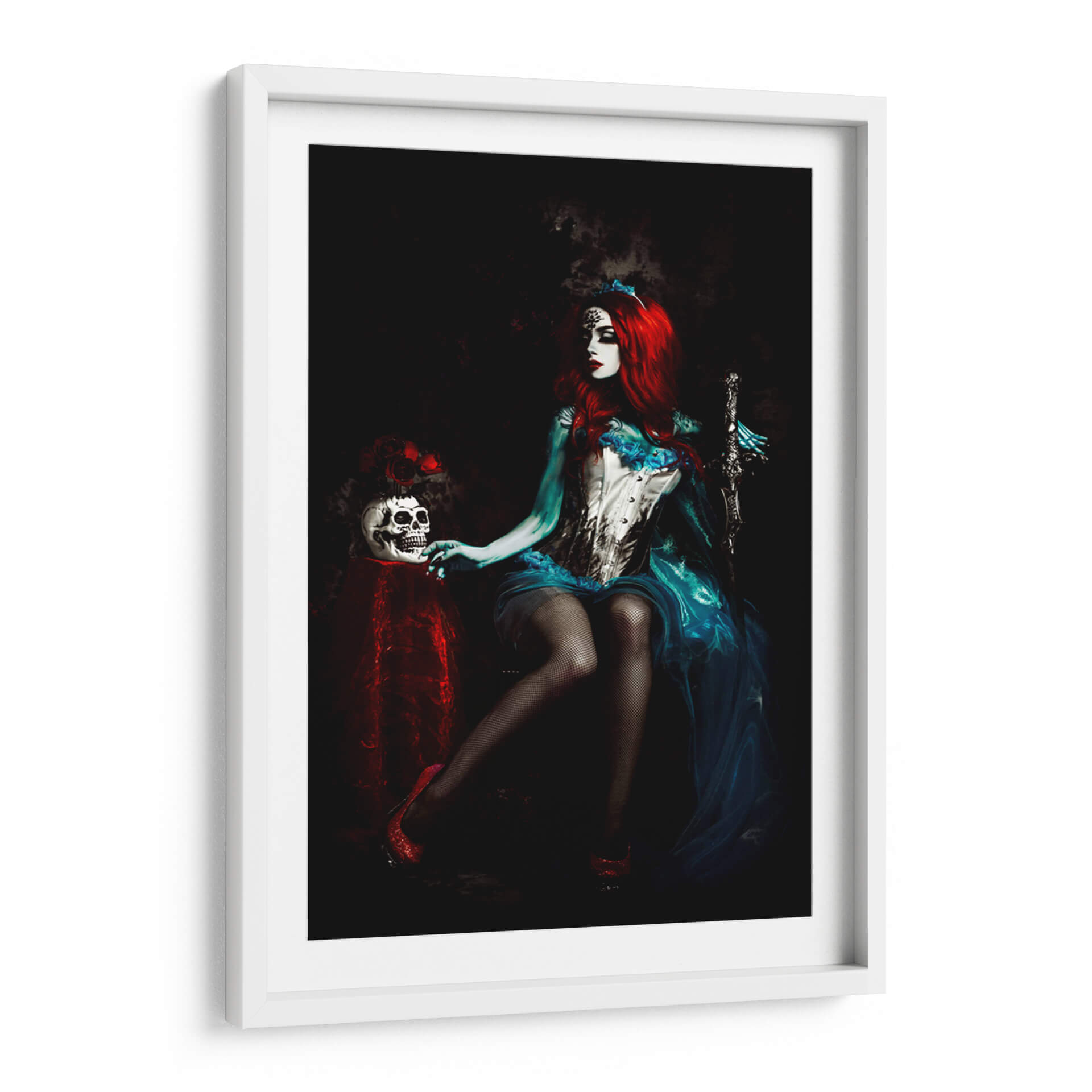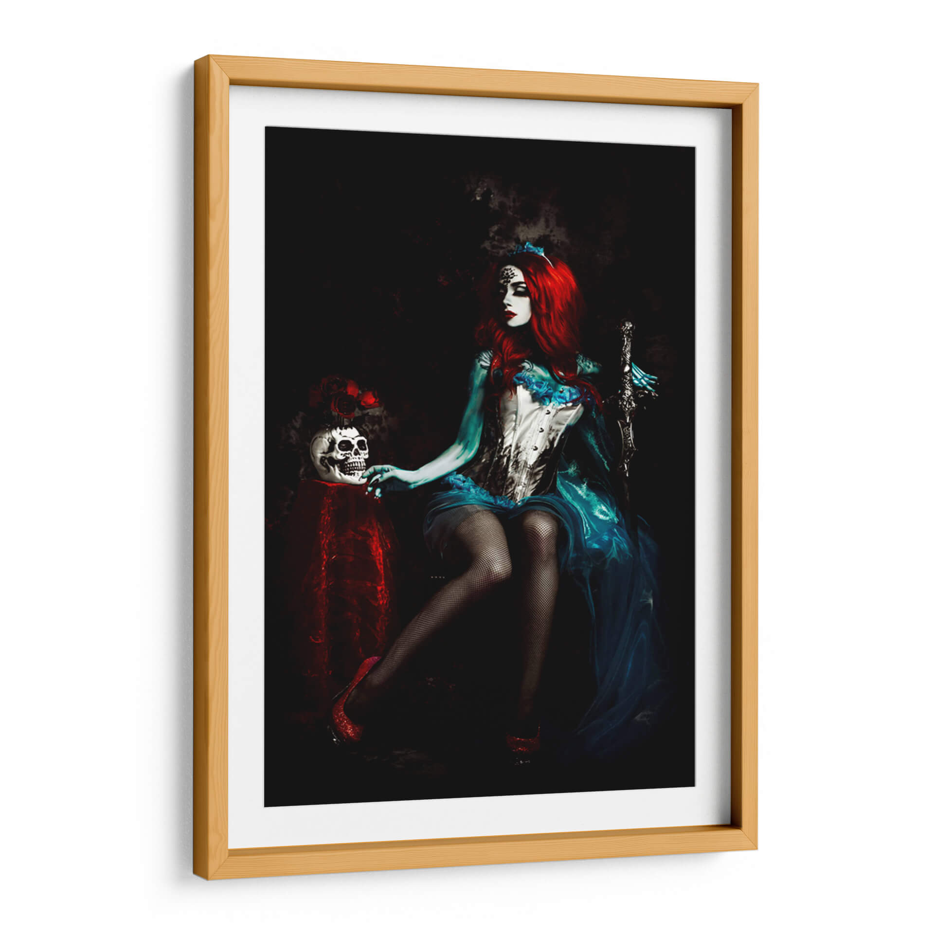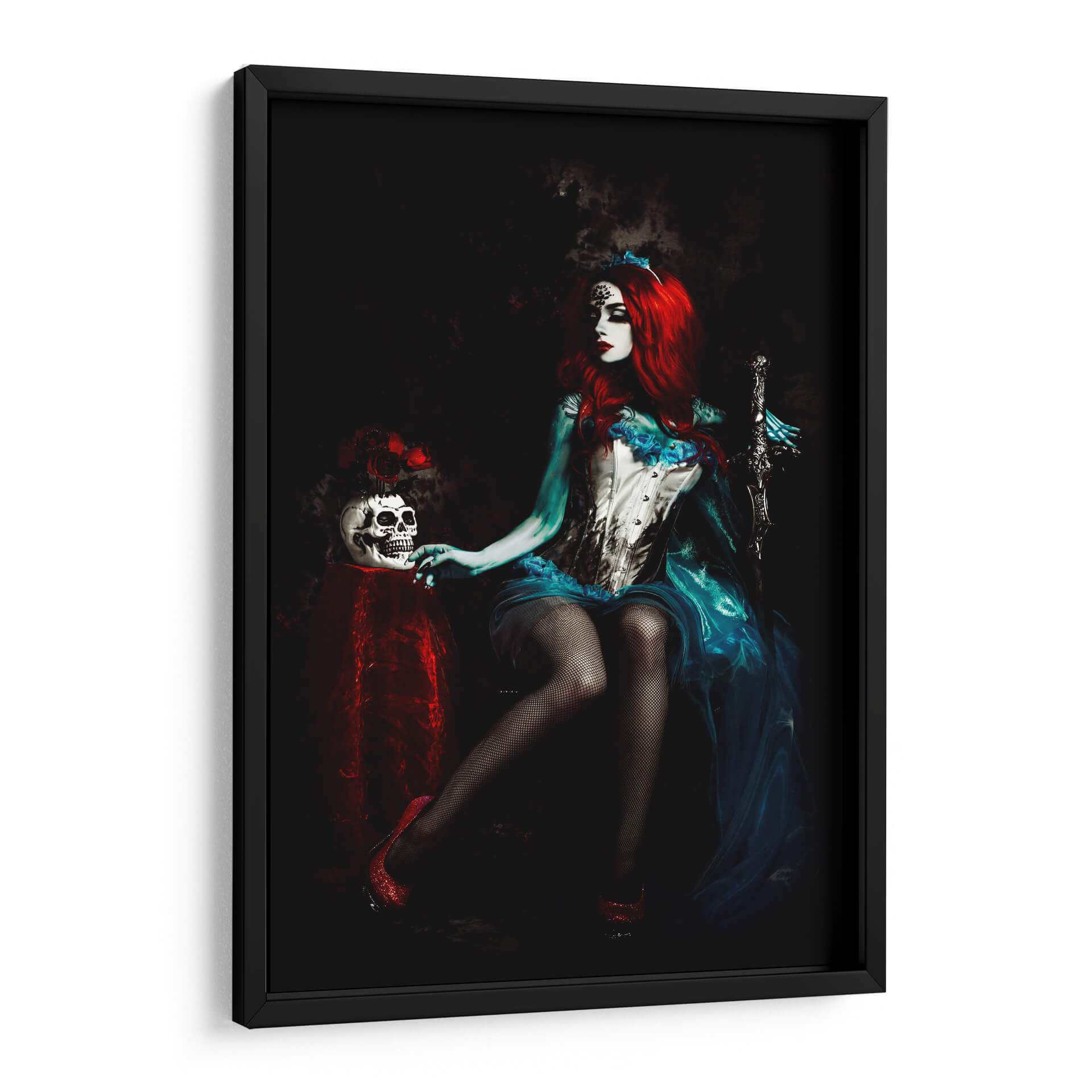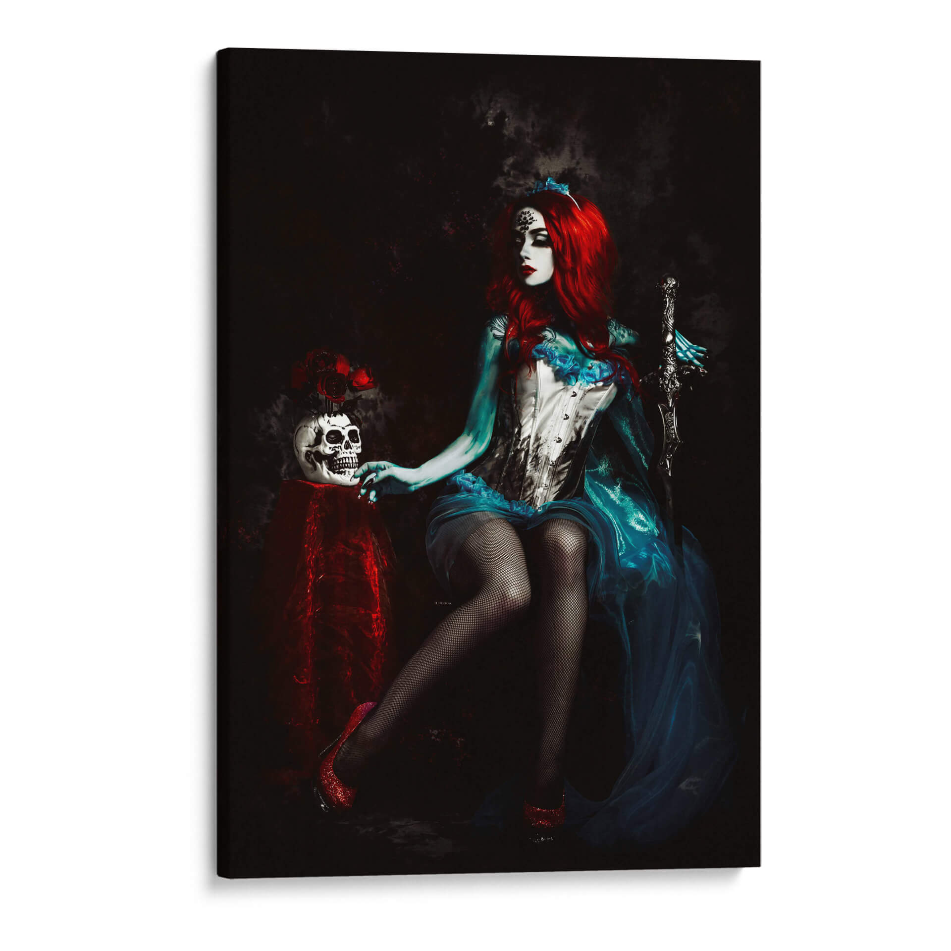 Sumérgete en el enigmático universo de "Elegancia Gótica", una obra de Ruslan Bolgov que desafía la percepción y captura la imaginación. Esta impactante pieza presenta una figura femenina etérea, envuelta en una atmósfera de misterio y sofisticación. Sus vibrantes cabellos rojos contrastan dramáticamente con su piel pálida y el corset plateado, adornado con delicados detalles azules que evocan la frialdad de la noche. La composición se ve realzada por la presencia de un cráneo adornado con rosas rojas, un símbolo de la dualidad entre la vida y la muerte, la belleza y lo macabro, que añade una capa de profundidad introspectiva a la obra. Los tonos oscuros y sombríos del fondo crean un telón de intriga, permitiendo que los elementos centrales resplandezcan con una luz propia. "Elegancia Gótica" es más que un simple cuadro decorativo; es una declaración de estilo audaz, perfecta para aquellos que aprecian el arte que explora los límites entre lo etéreo y lo terrenal. Ideal para salones modernos, estudios creativos o cualquier espacio que busque un toque de drama y refinamiento gótico.
