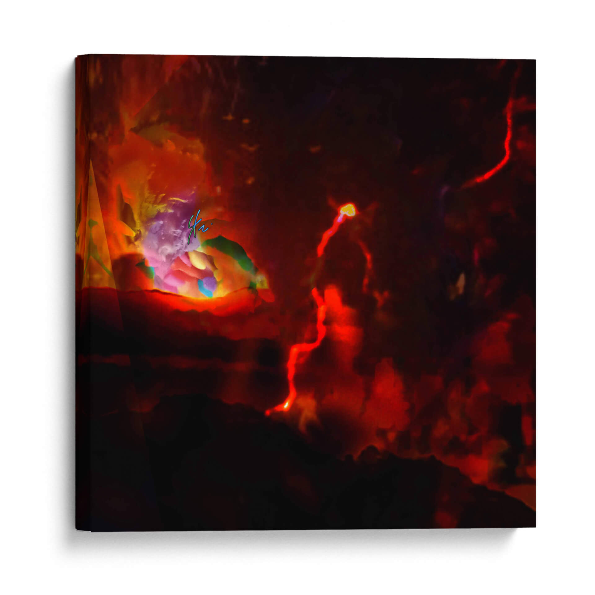 Sumérgete en la intensidad y el misterio de "Entre Vapores", una obra de arte contemporáneo que captura la esencia de lo etéreo y lo profundo. Los vibrantes tonos rojos y naranjas se entrelazan con zonas oscuras, creando una atmósfera de pasión, energía y enigmática belleza. En el centro, un foco de luz revela una amalgama de colores pasteles, sugiriendo un núcleo de calma o revelación dentro de la tormenta visual. La composición abstracta, con sus formas fluidas y texturas sugeridas, invita a la contemplación, evocando sensaciones de transformación y descubrimiento. Este cuadro decorativo es ideal para aquellos que buscan añadir un punto focal audaz y emocional a su hogar u oficina. Perfecto para espacios modernos que valoran la expresión artística única, "Entre Vapores" transformará cualquier pared en un lienzo de emociones y conversaciones. Su riqueza cromática y su profundidad lo convierten en una pieza que no solo decora, sino que también inspira y fascina.