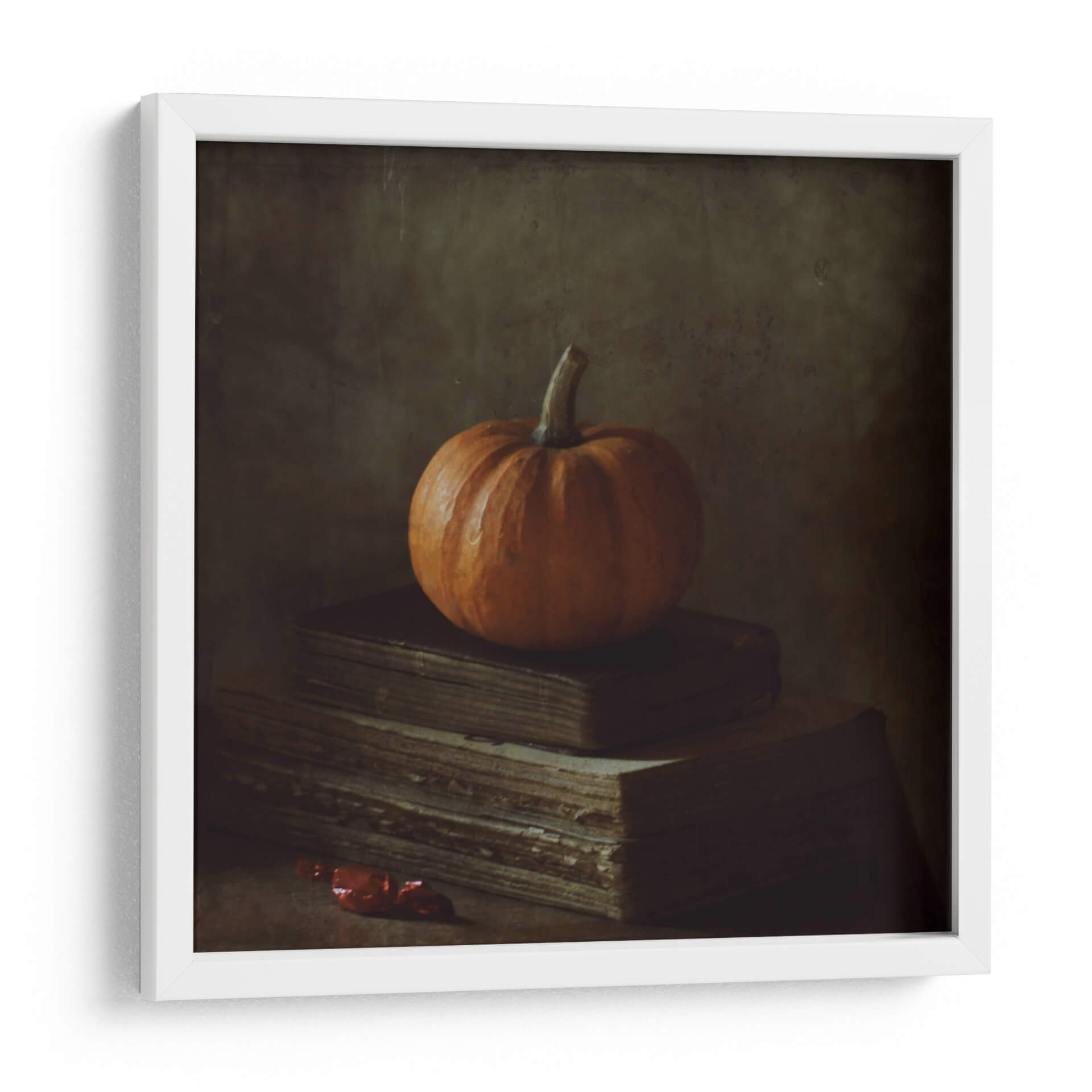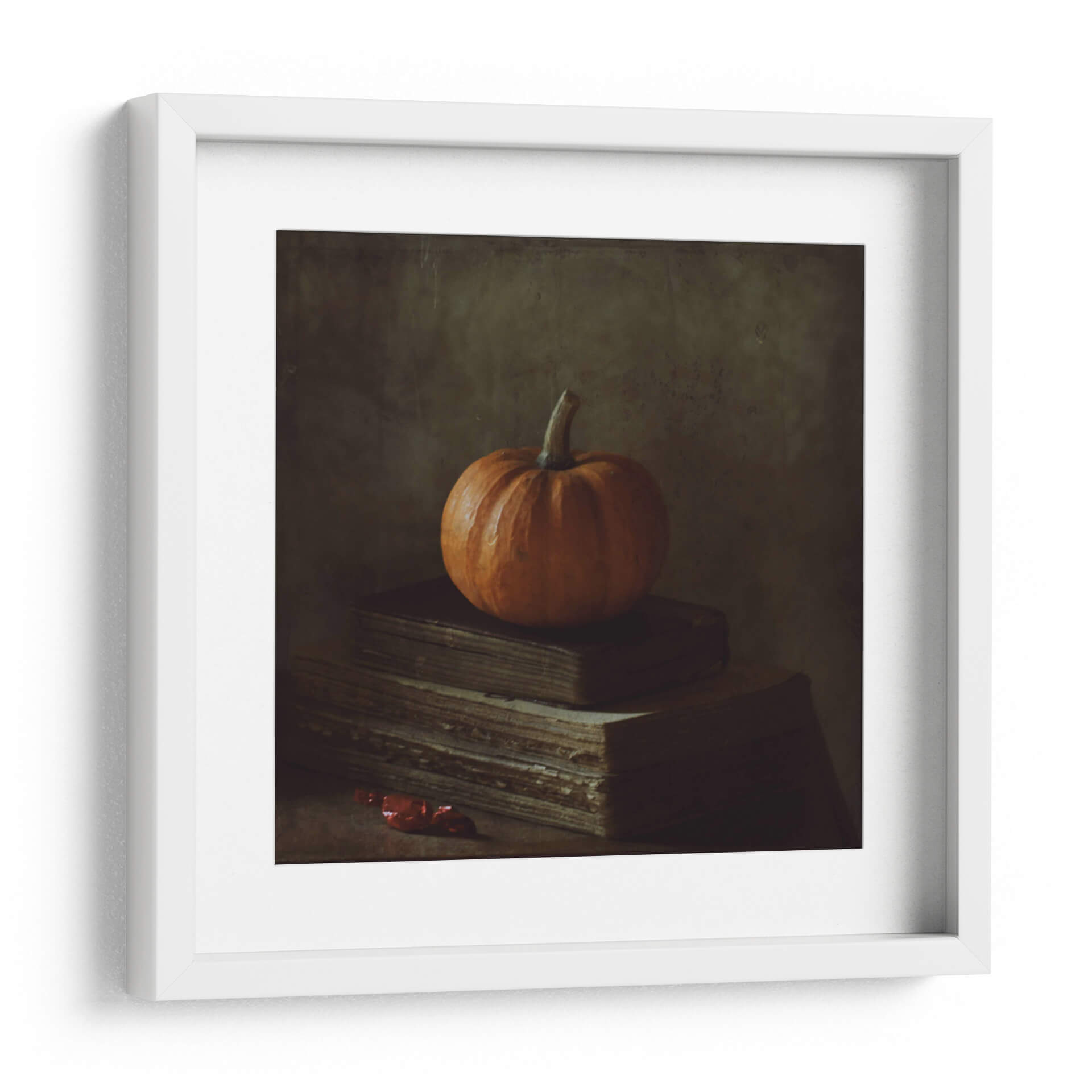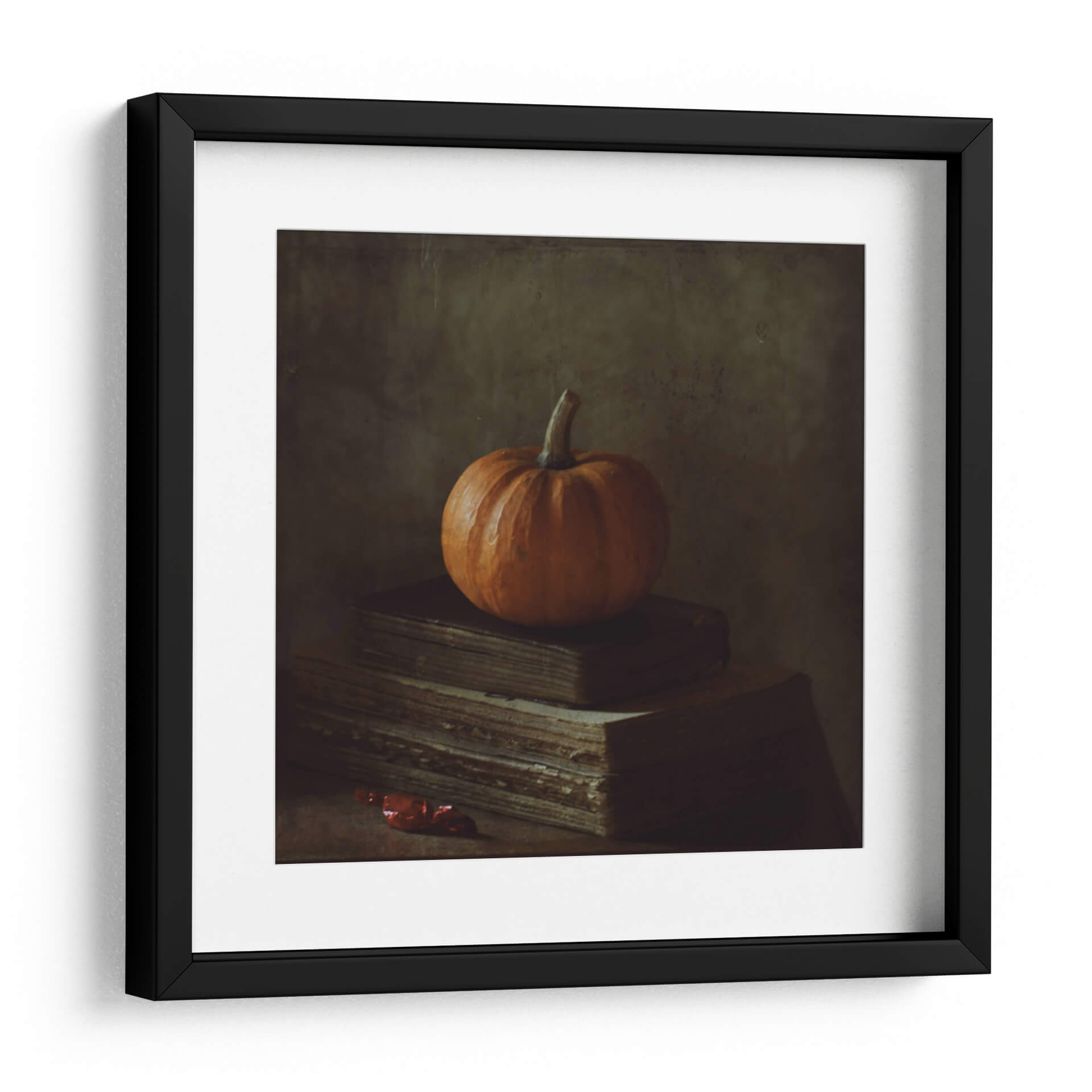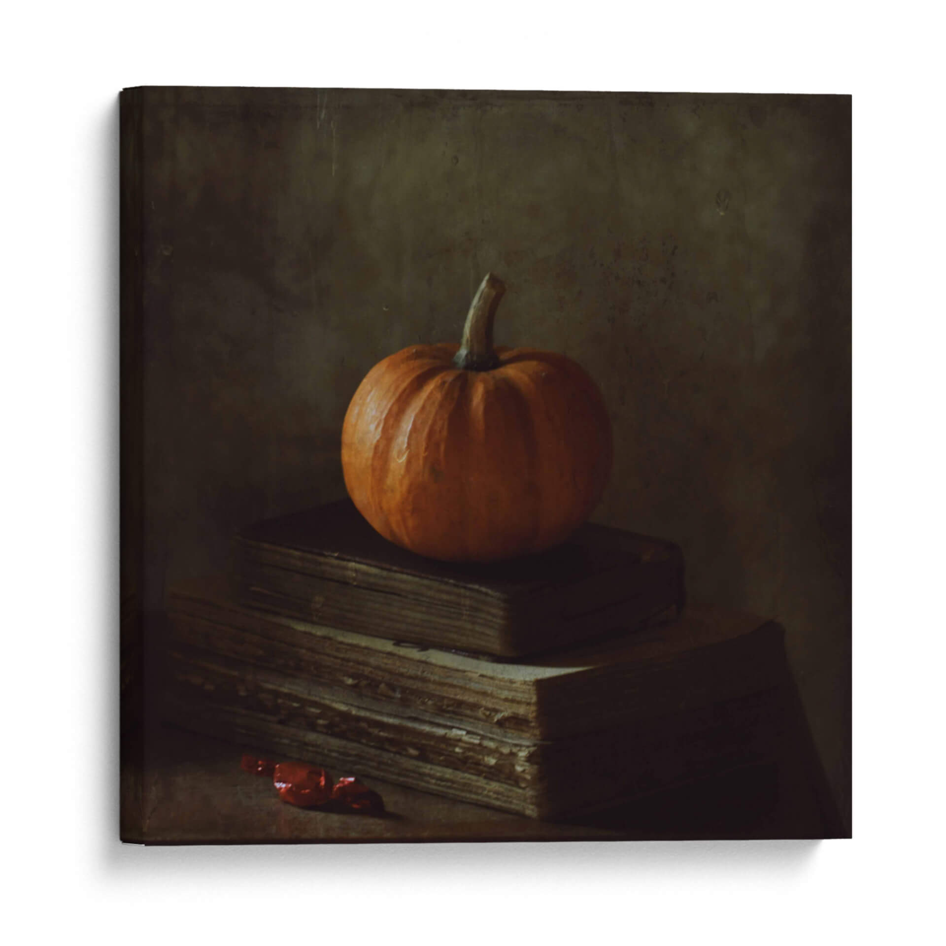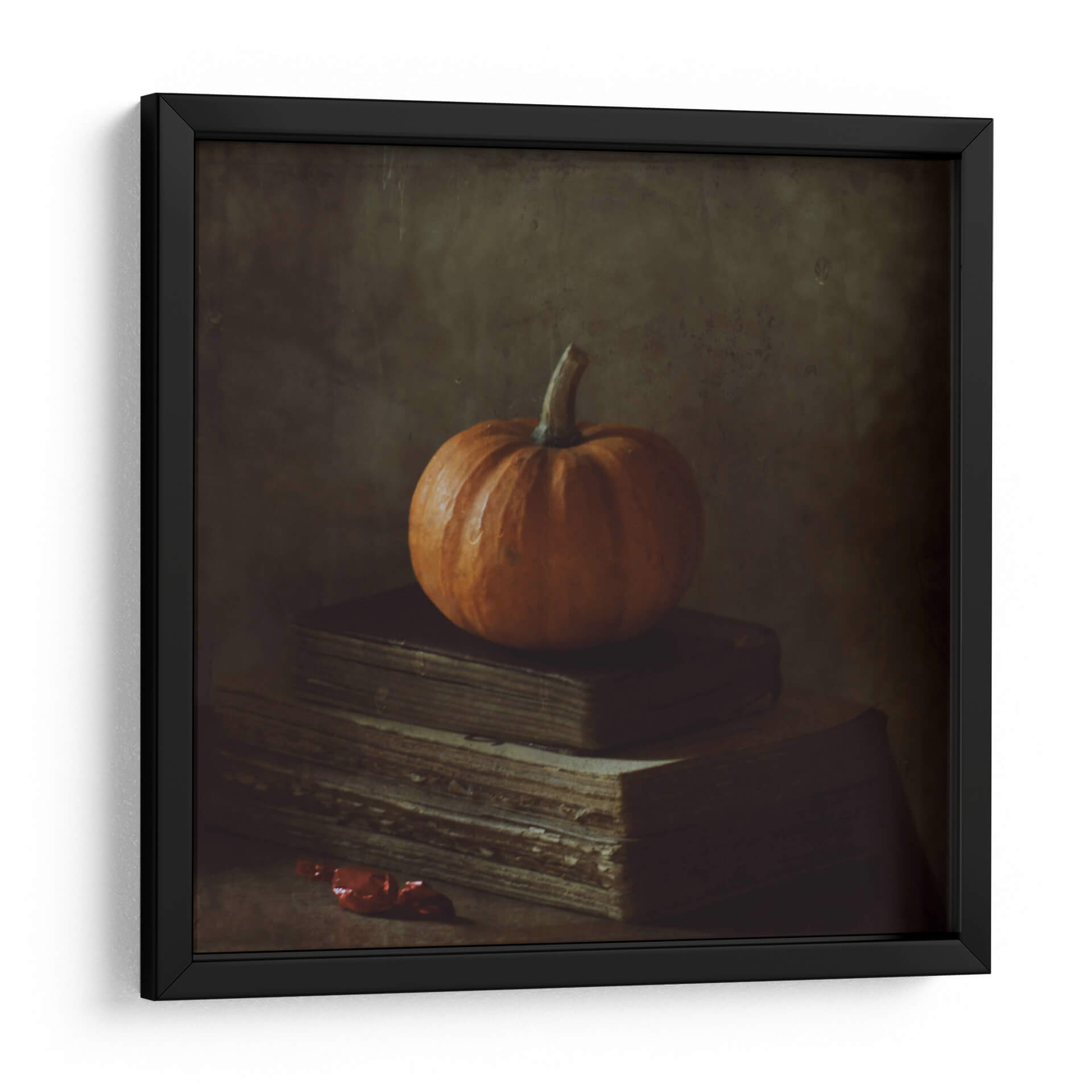 Sumérgete en la atmósfera acogedora y nostálgica de "Érase una vez una calabaza", una obra de arte de Delphine Devos que evoca la calidez del otoño y la magia de las historias olvidadas. Esta pieza central presenta una vibrante calabaza naranja, posada delicadamente sobre una pila de libros antiguos cuyas páginas amarillentas insinúan secretos del pasado. La paleta de colores, dominada por tonos tierra profundos y sombras ricas, crea una sensación de intimidad y contemplación. El estilo realista con toques de pintura clásica transporta al espectador a un momento suspendido en el tiempo, ideal para quienes buscan añadir un toque de encanto rústico y narrativo a su hogar. La composición, centrada y equilibrada, asegura que la calabaza sea el punto focal, mientras que la textura sutil del fondo añade profundidad y carácter. "Érase una vez una calabaza" es perfecta para dar vida a un rincón de lectura, enriquecer una sala de estar con un aire de sofisticación serena, o añadir un acento de temporada a tu comedor. Este cuadro decorativo es una invitación a soñar y a recordar, un guiño al encanto atemporal de los objetos sencillos y las historias que cuentan, convirtiendo cualquier espacio en un refugio de paz y belleza.