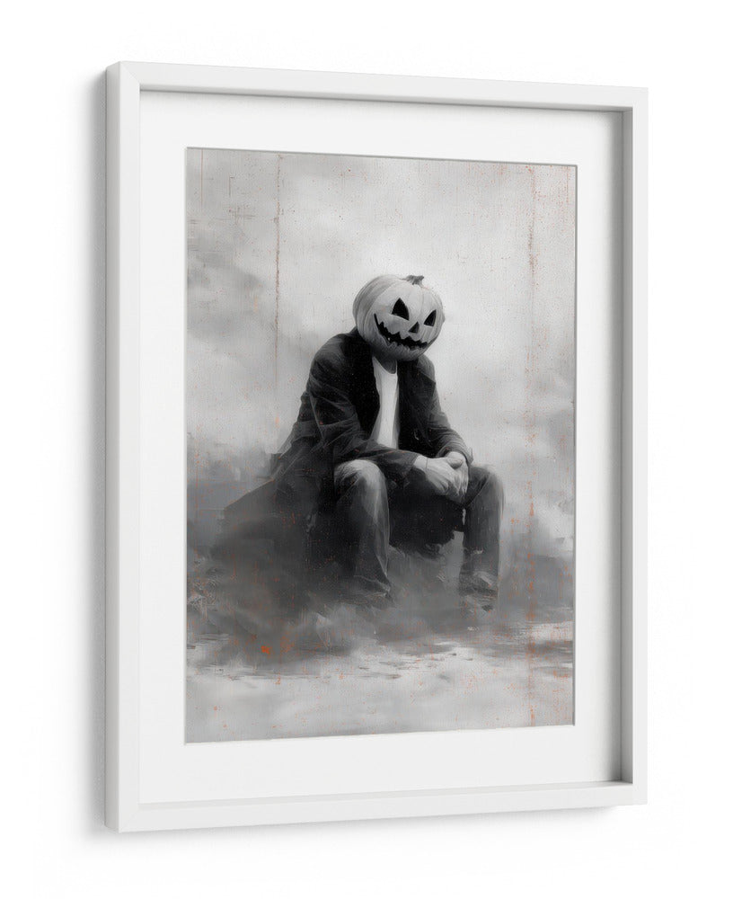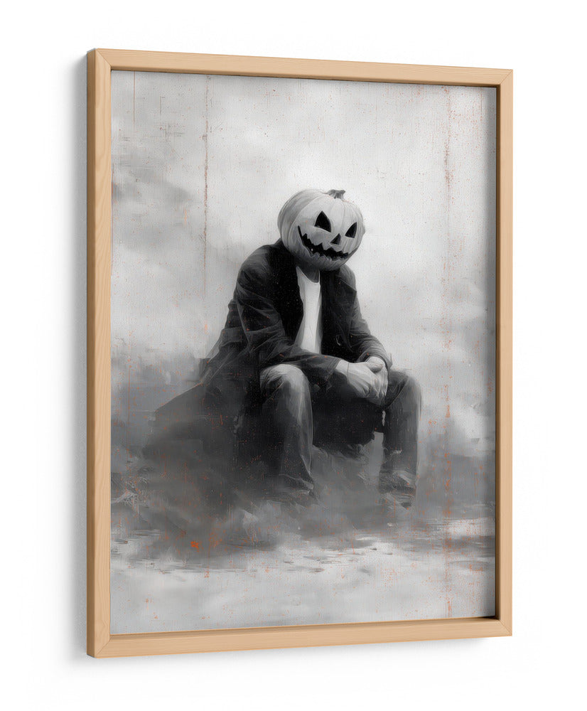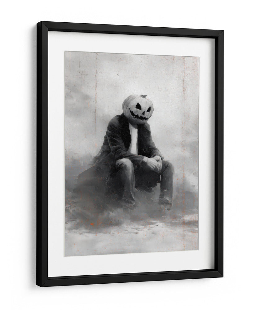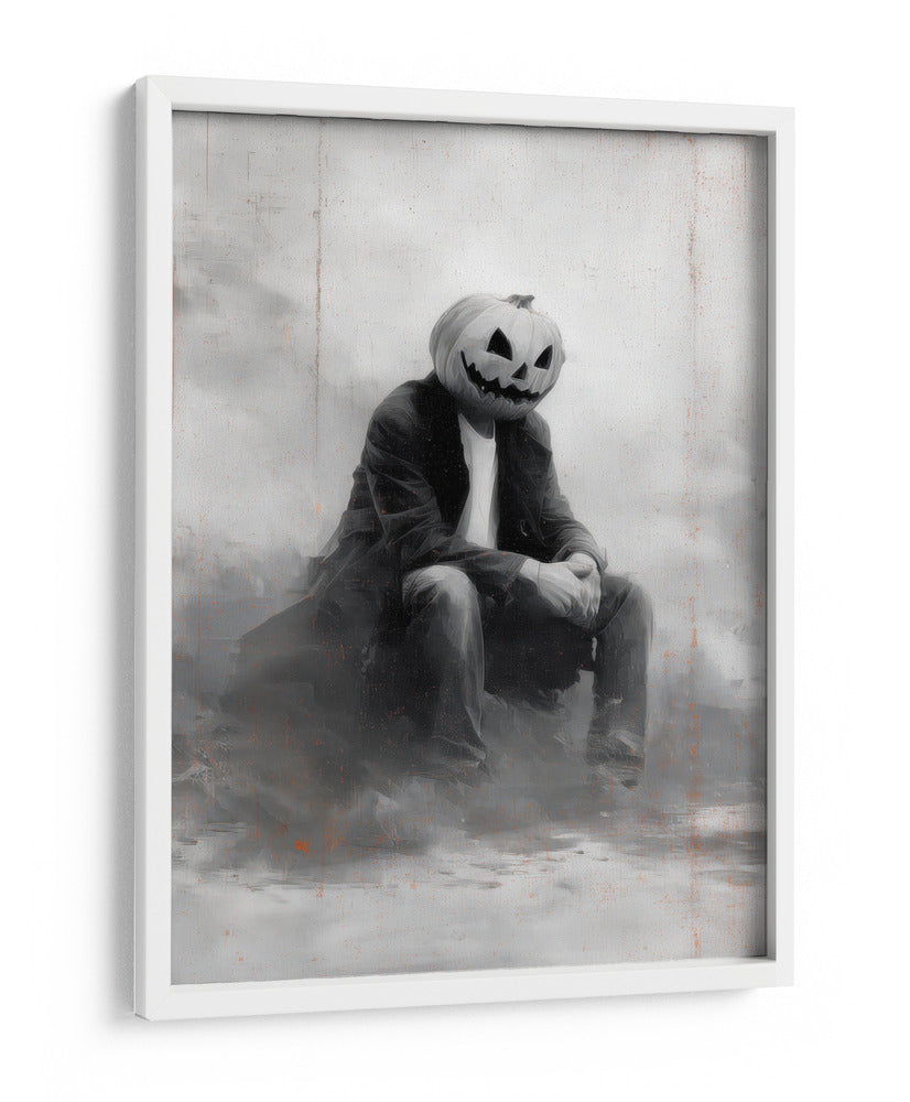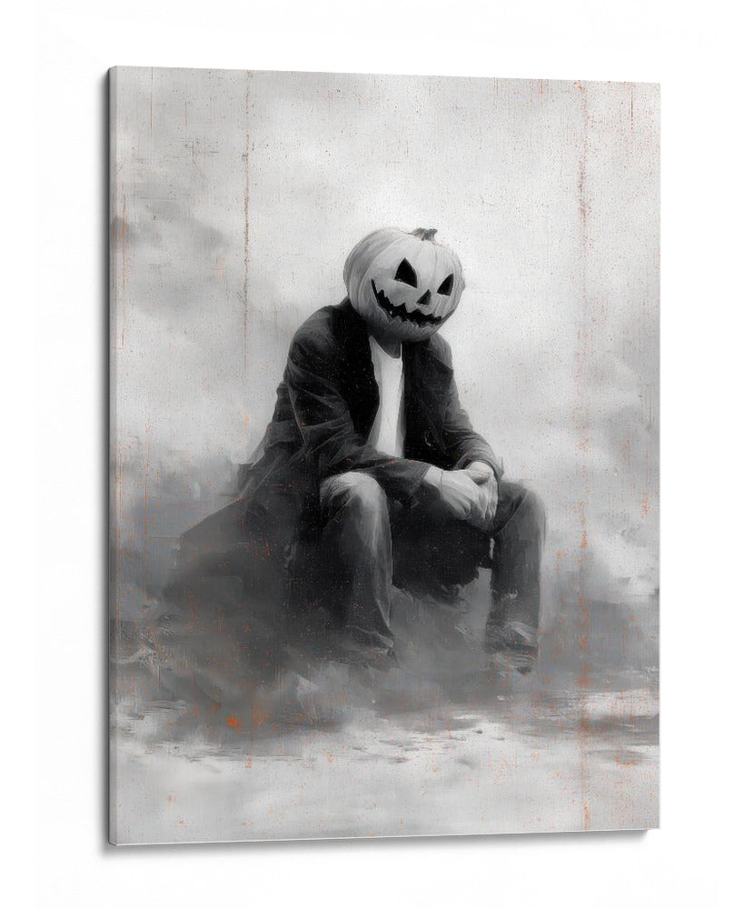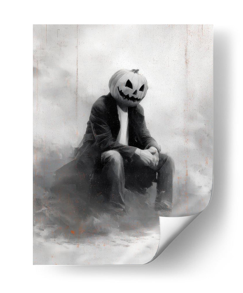 Sumérgete en el misterio y el encanto de "Escena de Halloween de un hombre con calabaza II" de Justyna Jaszke. Esta cautivadora obra de arte presenta una figura solitaria con la icónica cabeza de calabaza, sentada en una atmósfera etérea y sombría. La paleta de grises y blancos, con sutiles toques de naranja quemado, crea una sensación de melancolía y reflexión, perfecta para quienes buscan añadir un toque de drama sutil a sus espacios. El estilo pictórico, con pinceladas expresivas y un enfoque en la atmósfera, evoca una sensación de nostalgia y misterio, ideal para entornos como estudios, salones o incluso oficinas que buscan una pieza de conversación única. Este cuadro decorativo es una representación contemporánea de un tema clásico, invitando a la contemplación y añadiendo profundidad a cualquier decoración. Su composición centrada y la figura enigmática lo convierten en un punto focal intrigante, capturando la imaginación y generando intriga. Añade esta pieza única a tu colección y transforma tu espacio en un lienzo de emociones y estilo.