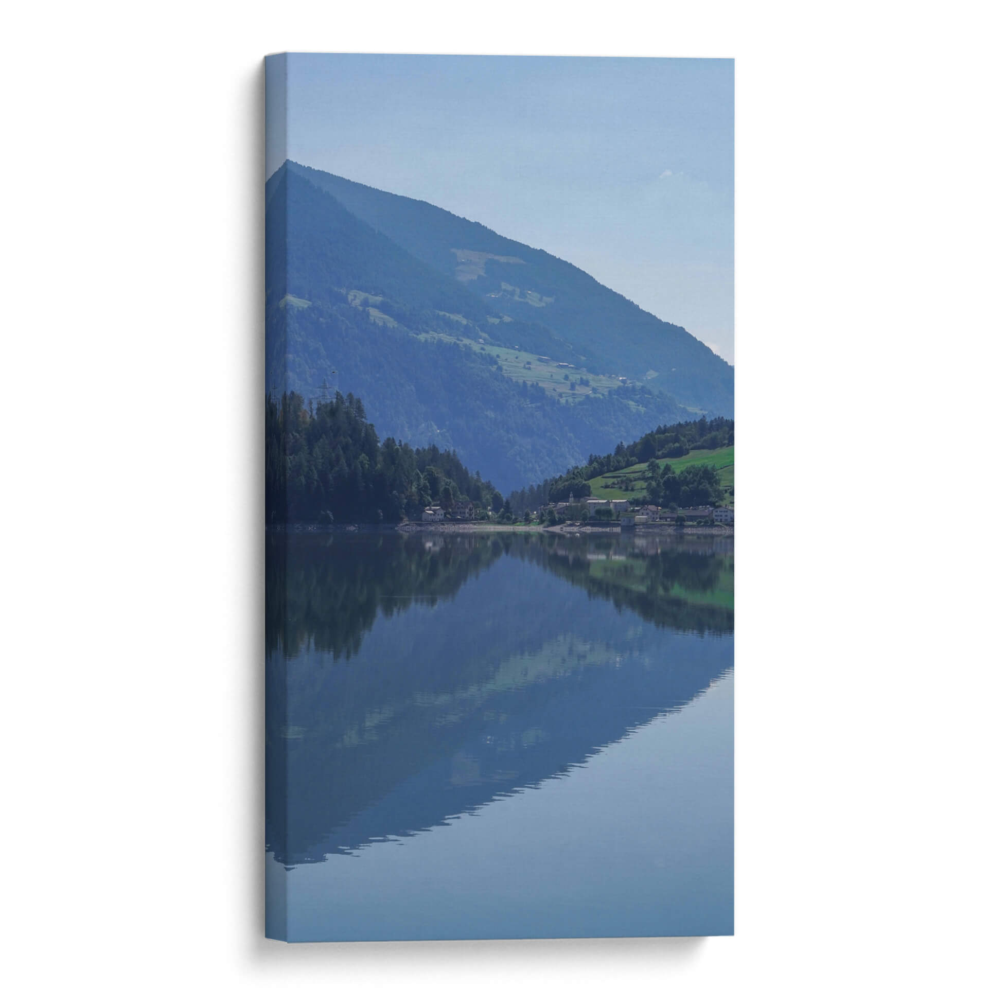 Captura la serenidad y la majestuosidad de la naturaleza con el cuadro decorativo "Espejo Natural" de Christian Castro. Esta obra transporta al espectador a un paisaje de montaña idílico, donde imponentes cumbres se reflejan a la perfección en las tranquilas aguas de un lago cristalino. La paleta de colores, dominada por suaves tonos azules del cielo y el agua, y los verdes profundos de los bosques que tapizan las laderas, crea una atmósfera de paz y contemplación. Las pequeñas edificaciones dispersas en la ladera añaden un toque de vida y calidez al paisaje, sugiriendo un refugio alpino pintoresco. La composición simétrica, con el reflejo casi perfecto de las montañas en el agua, aporta una sensación de equilibrio y armonía visual. Este cuadro decorativo es ideal para infundir calma y belleza natural en cualquier espacio, desde un salón moderno hasta un dormitorio acogedor o una oficina que busque un respiro visual. La obra de Christian Castro es una invitación a la introspección y a la conexión con la tranquilidad que solo la naturaleza puede ofrecer, convirtiéndose en un punto focal sereno y elegante para tu decoración.