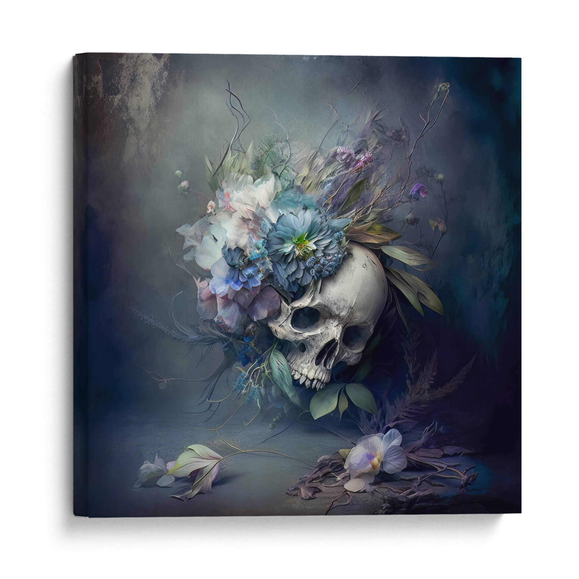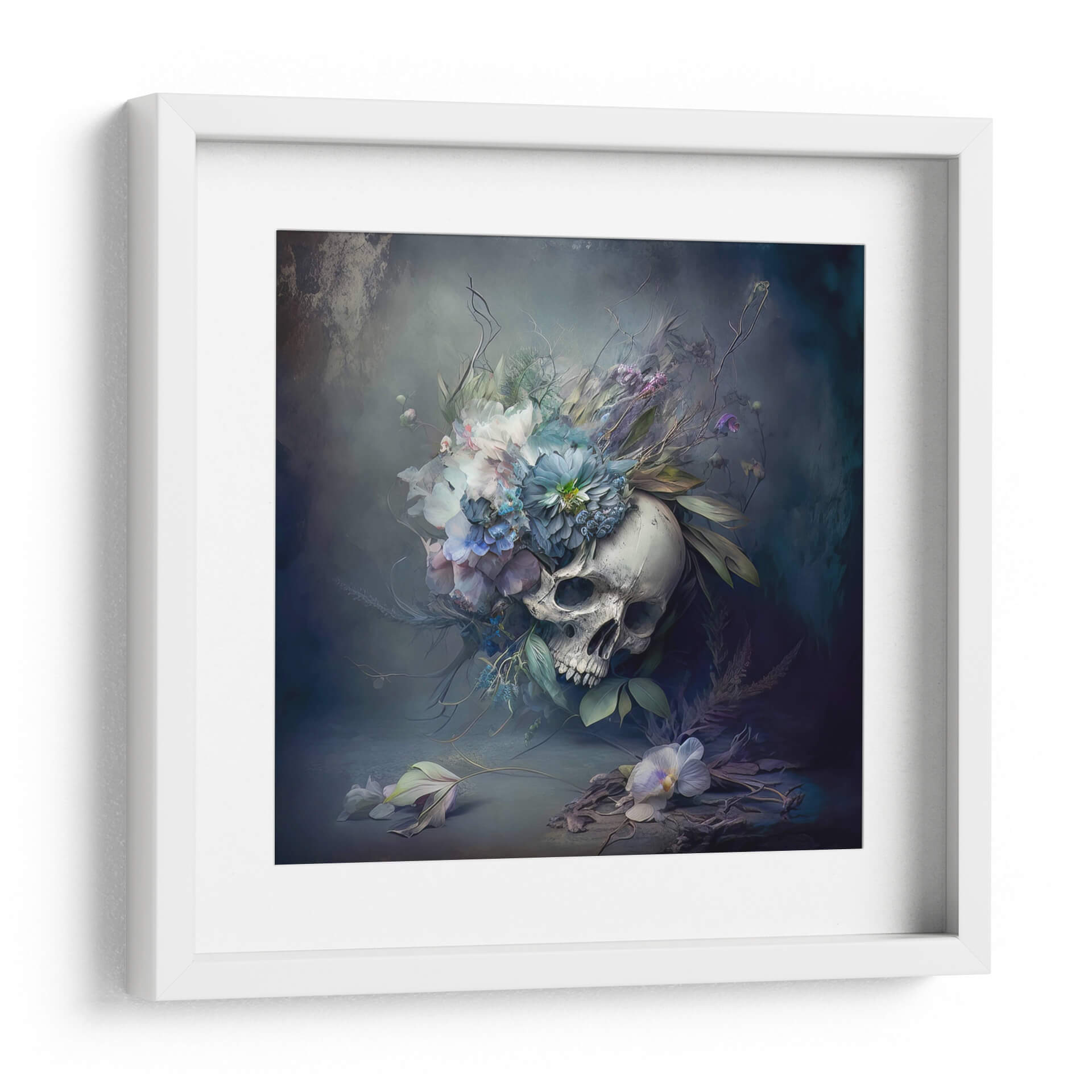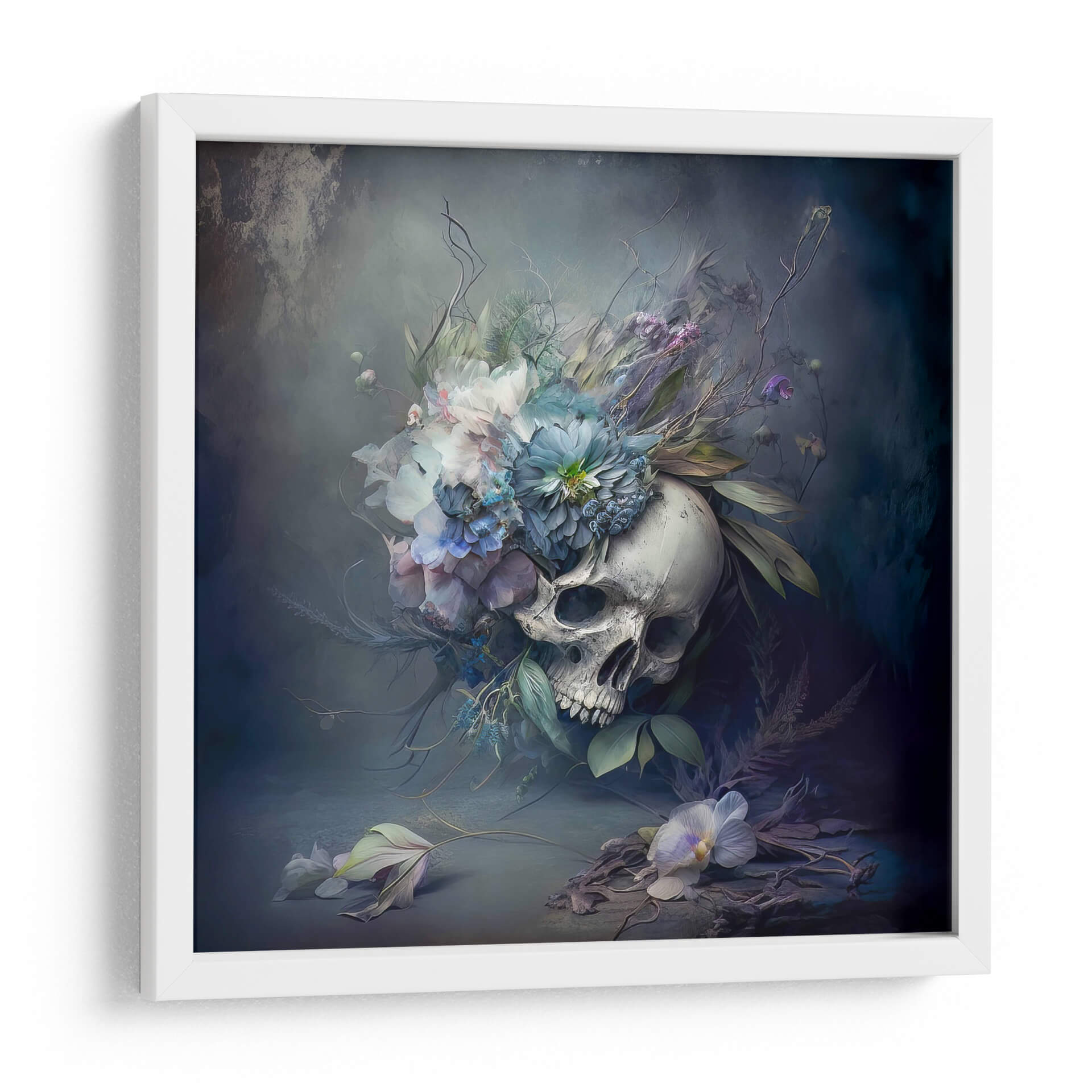 Sumérgete en la enigmática belleza de "Flores 10", una obra maestra del arte decorativo de pared creada por Bilge Paksoylu. Esta pieza evoca una atmósfera de belleza efímera y misterio, fusionando la fragilidad de las flores con la presencia simbólica de una calavera. La paleta de colores se mueve entre tonos fríos y suaves, con delicados azules, verdes etéreos y toques de lavanda y blanco, creando un contraste fascinante con la calavera de tono marfil. Las flores, representadas con un realismo casi onírico, se derraman y entrelazan, sugiriendo el ciclo de la vida y la muerte, la decadencia y la renovación. La composición, sutilmente dramática, invita a la contemplación, mientras que la textura sugerida y el fondo nebuloso añaden profundidad y un aire de ensueño. Este cuadro decorativo es ideal para añadir un toque sofisticado y reflexivo a cualquier espacio, ya sea una sala de estar moderna, un estudio personal o un dormitorio que busque una declaración de estilo única. "Flores 10" no es solo una imagen, es una invitación a explorar la dualidad de la existencia, perfecta para quienes aprecian el arte contemporáneo con un significado profundo y una estética cautivadora. Transforma tu hogar con esta pieza que combina lo macabro con lo bello de una manera inolvidable.