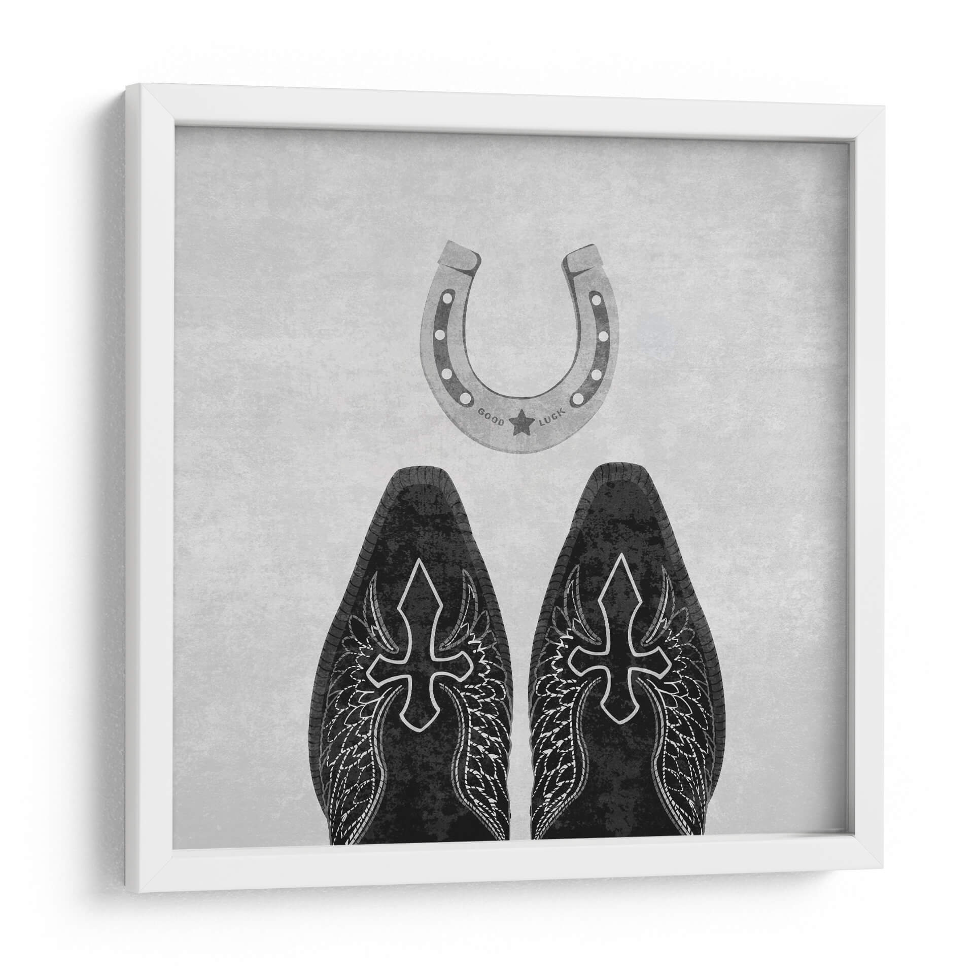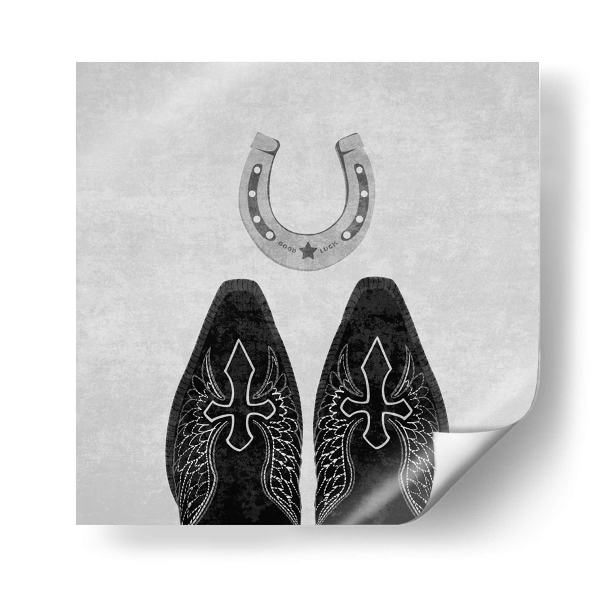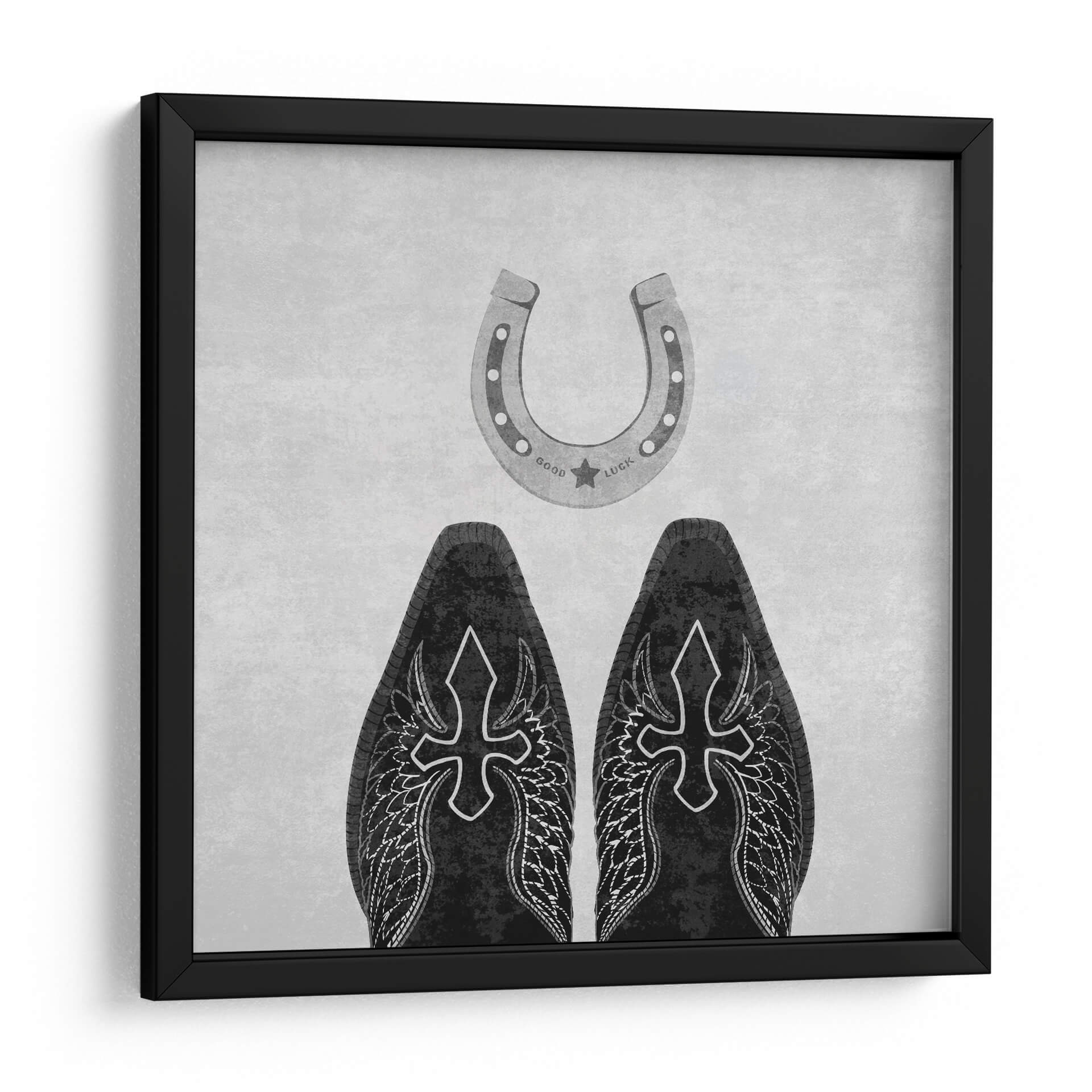 Sumérgete en la simbología y el estilo audaz con "Fortuna Occidental" de Emel Tunaboylu. Esta impactante obra de arte presenta un primer plano de dos botas de vaquero con intrincados detalles de alas y cruces, coronada por una herradura de la suerte. La paleta de colores monocromática, con tonos grises y negros, crea una atmósfera potente y atemporal, ideal para añadir un toque de carácter y misticismo a cualquier espacio. El contraste entre los elementos rústicos del oeste y los detalles etéreos de las alas evoca una sensación de fuerza y protección. "Fortuna Occidental" es perfecta para salones modernos, oficinas con carácter o cualquier rincón que busque una declaración visual audaz y llena de significado. Esta pieza contemporánea no solo decora, sino que también cuenta una historia de resiliencia, aventura y buena fortuna, resonando con aquellos que aprecian el arte con profundidad y estilo.
