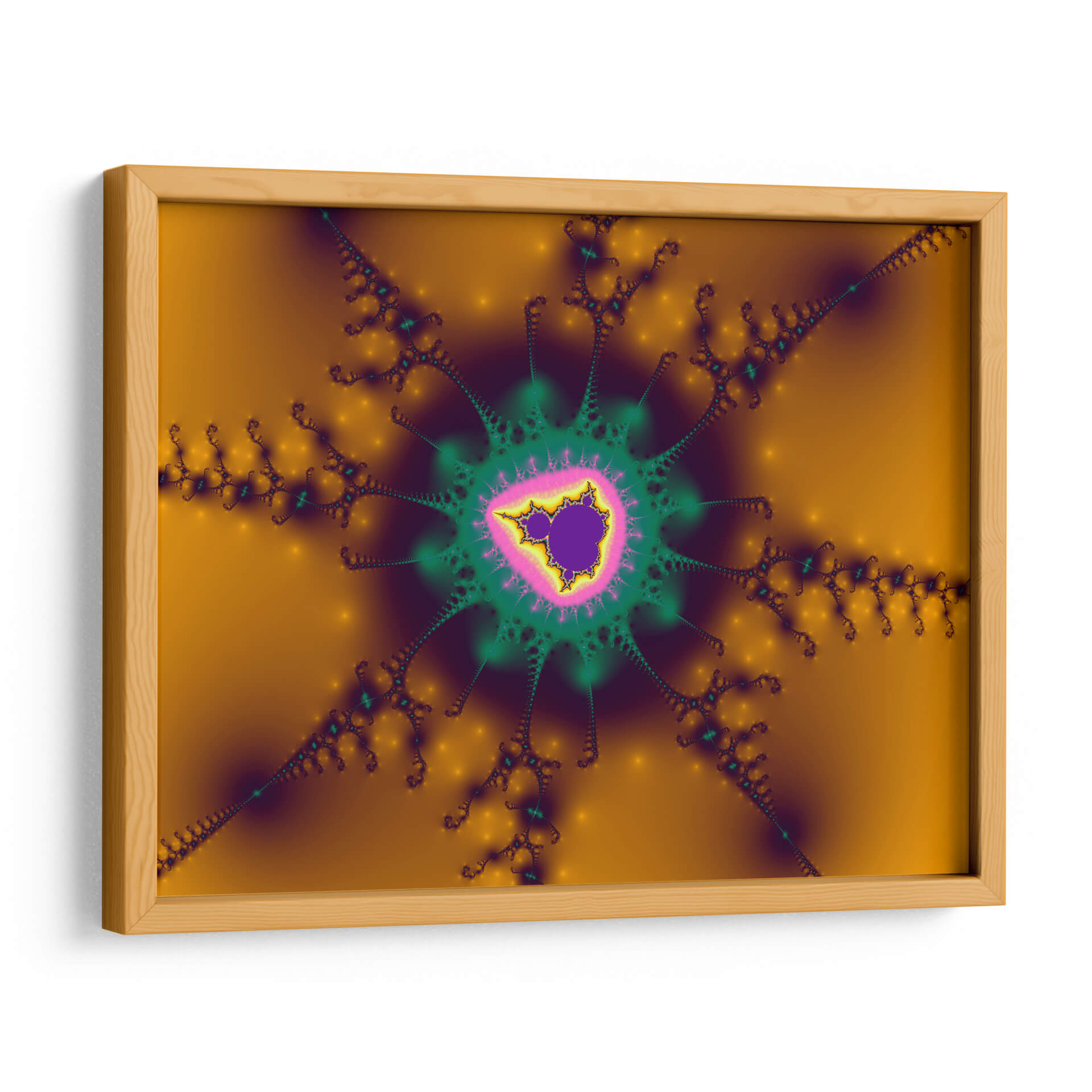 Sumérgete en la hipnótica belleza de "Fractal Fragment 15" de Eric de Lucio, una obra de arte digital que captura la esencia de la complejidad y el color. Esta pieza abstracta presenta intrincadas estructuras fractales que se expanden desde un núcleo vibrante de púrpura y rosa fucsia, rodeado por una nebulosa de tonos verde esmeralda y turquesa. Los delicados filamentos que irradian hacia el exterior, adornados con pequeños puntos de luz brillante, crean una sensación de profundidad y movimiento cósmico. El fondo, bañado en un degradado cálido de dorado a ámbar, aporta una calidez envolvente y un contraste cautivador con los tonos fríos del fractal. "Fractal Fragment 15" es una invitación a explorar la belleza inherente en las matemáticas y la naturaleza, evocando una atmósfera de asombro y serenidad. Su diseño dinámico y su rica paleta cromática la convierten en una pieza de arte de pared ideal para añadir un toque de sofisticación moderna y energía vibrante a cualquier sala de estar, estudio u oficina. Deja que esta cautivadora obra impulse la conversación y enriquezca tu espacio con su singularidad.