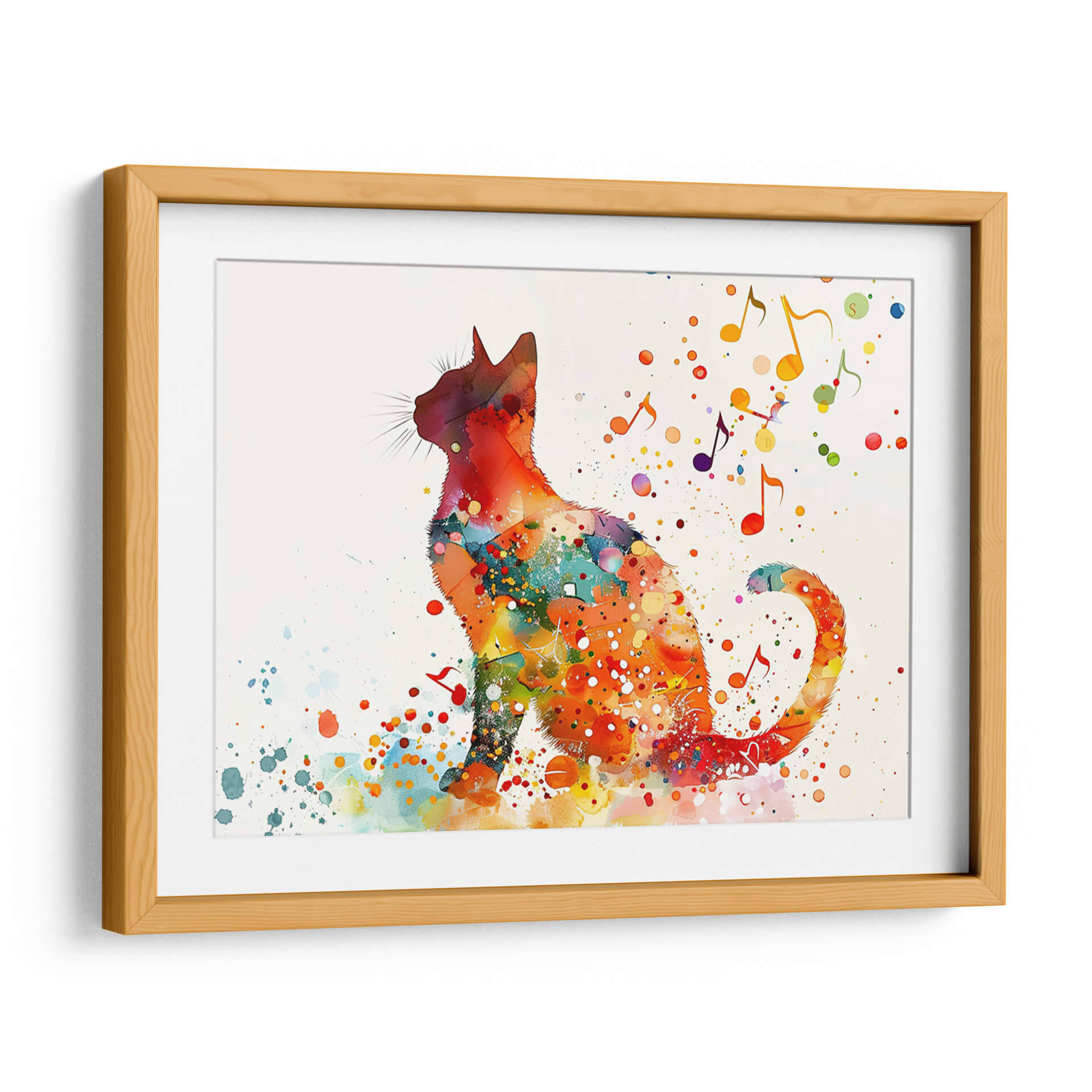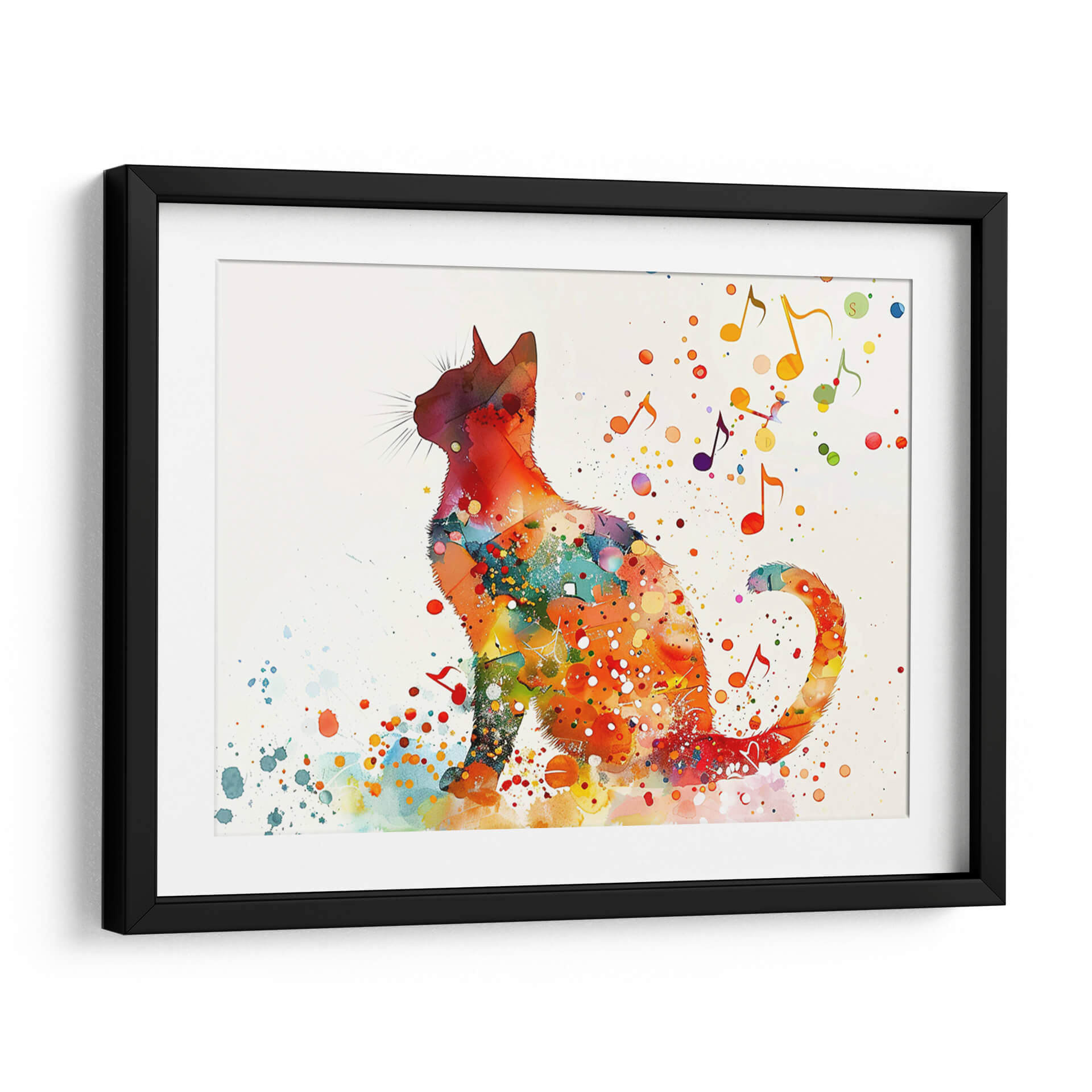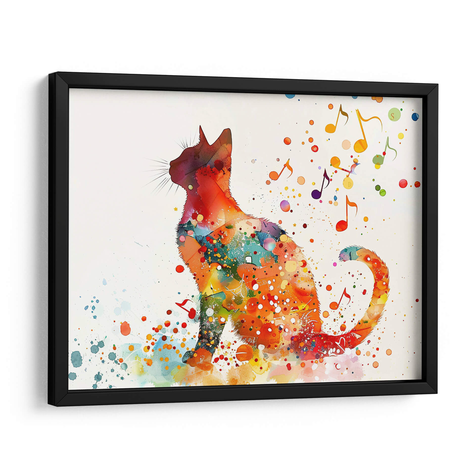 Sumérgete en el vibrante mundo de "Gato y Música 1", una obra de arte digital de Cecilia Flores que captura la sinergia entre el felino y la melodía. Esta pieza se caracteriza por una silueta de gato delineada con audaces salpicaduras y texturas que evocan la técnica de acuarela, creando un efecto dinámico y lleno de vida. Los colores cálidos, predominando naranjas, rojos y amarillos, irradian energía y alegría, contrastando sutilmente con toques de azul y verde que añaden profundidad y complejidad. Las notas musicales dispersas y las gotas de pintura danzan alrededor del felino, sugiriendo un ambiente lúdico y armonioso. El estilo, una fusión de expresionismo y arte pop, resulta en un cuadro decorativo moderno y cautivador. "Gato y Música 1" es ideal para infundir personalidad en cualquier espacio, desde una sala de estar contemporánea hasta un estudio creativo o una habitación infantil. Añade un toque de originalidad y buen humor a tu decoración con este cuadro decorativo único que celebra la conexión entre el arte, la música y la naturaleza. Una pieza que sin duda será un punto de conversación y una fuente de inspiración diaria en tu hogar u oficina.