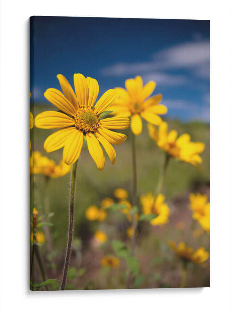 Sumérgete en la vibrante belleza de la naturaleza con "Girasoles Salvajes 4", una obra de Marcos Rodríguez que captura la esencia de un campo florido bajo un cielo azul intenso. Este cuadro decorativo te transportará a un día soleado, con la luz jugando entre los pétalos de girasol y las sutiles nubes. La composición, con un girasol principal en primer plano enfocado con detalle y otros en un suave desenfoque, crea una sensación de profundidad y movimiento, como si el viento acariciara suavemente las flores. Los tonos amarillos intensos de los girasoles contrastan maravillosamente con el azul profundo del cielo y los verdes y marrones terrosos del fondo, creando una paleta de colores alegre y armoniosa. Ideal para añadir un toque de calidez y vitalidad a cualquier espacio, desde una sala de estar moderna hasta un dormitorio acogedor o una oficina inspiradora. "Girasoles Salvajes 4" es más que una simple imagen; es una invitación a la contemplación de la simplicidad y la fuerza de la vida. Perfecta para quienes buscan arte de pared que eleve el espíritu y aporte una dosis de optimismo y color a su decoración.