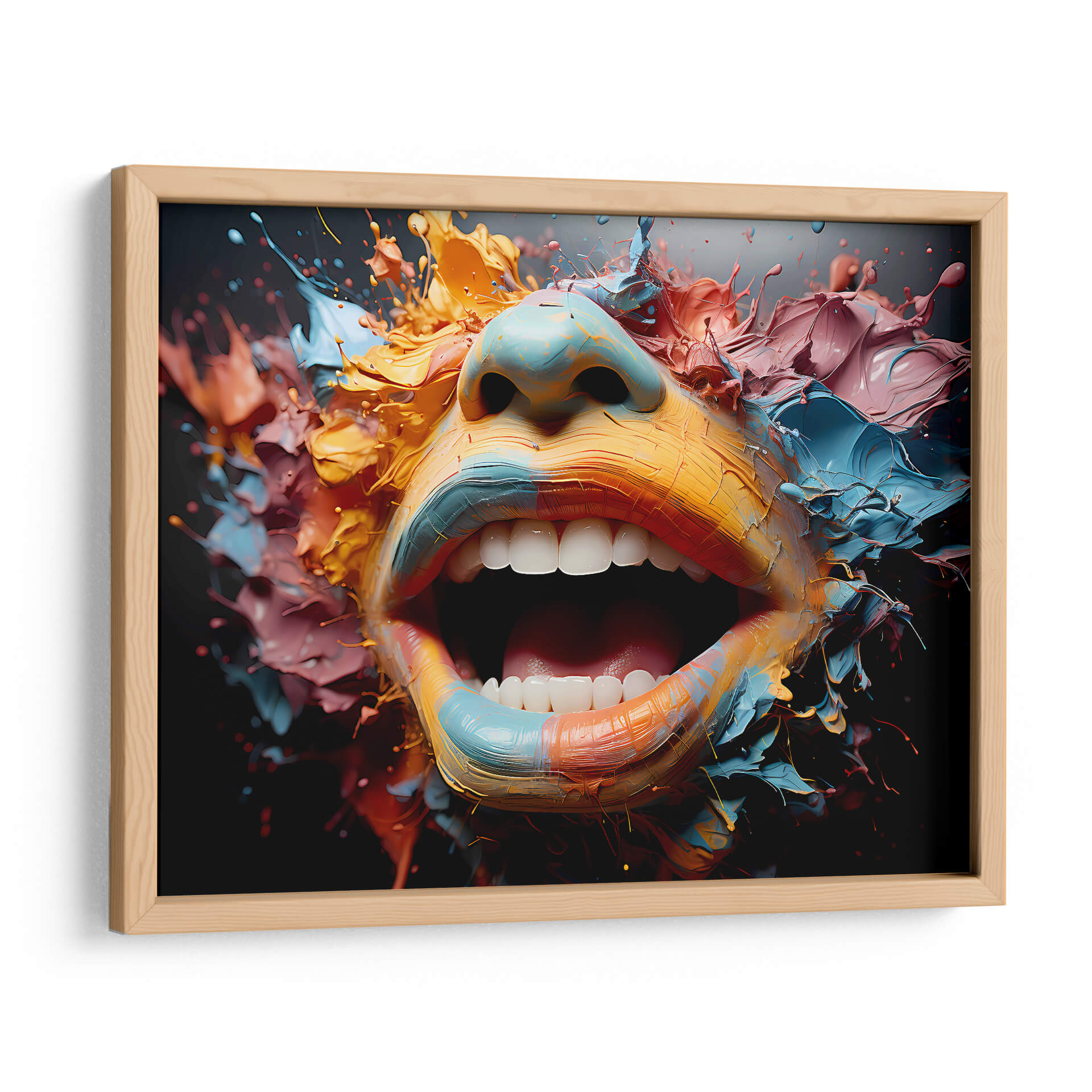 Sumérgete en la vibrante explosión de "Háblame de Color", una obra de arte contemporáneo que desafía la percepción y celebra la expresión. Este cuadro decorativo presenta una representación audaz y estilizada de una boca abierta, emergiendo de un torbellino de pintura líquida en vibrantes tonos naranjas, azules y rosados. La técnica utilizada crea una sensación de movimiento y energía, como si el color mismo estuviera cobrando vida y saliendo de la imagen. La composición se centra en la intensidad de la expresión, con los detalles de los dientes y la lengua contrastando con la naturaleza abstracta y fluida del entorno. Los salpicaduras y remolinos de pintura añaden textura y profundidad, invitando al espectador a explorar cada rincón de la obra. "Háblame de Color" es una pieza que evoca emociones de alegría, sorpresa y una audaz afirmación de la vida. Ideal para espacios modernos y vanguardistas, este cuadro decorativo se convertirá en el punto focal de cualquier sala de estar, estudio u oficina, añadiendo un toque de originalidad y un estallido de color que inspirará conversaciones y admiración. Su estilo abstracto y su paleta de colores llamativos lo hacen perfecto para aquellos que buscan una decoración de pared que sea tanto artística como impactante.