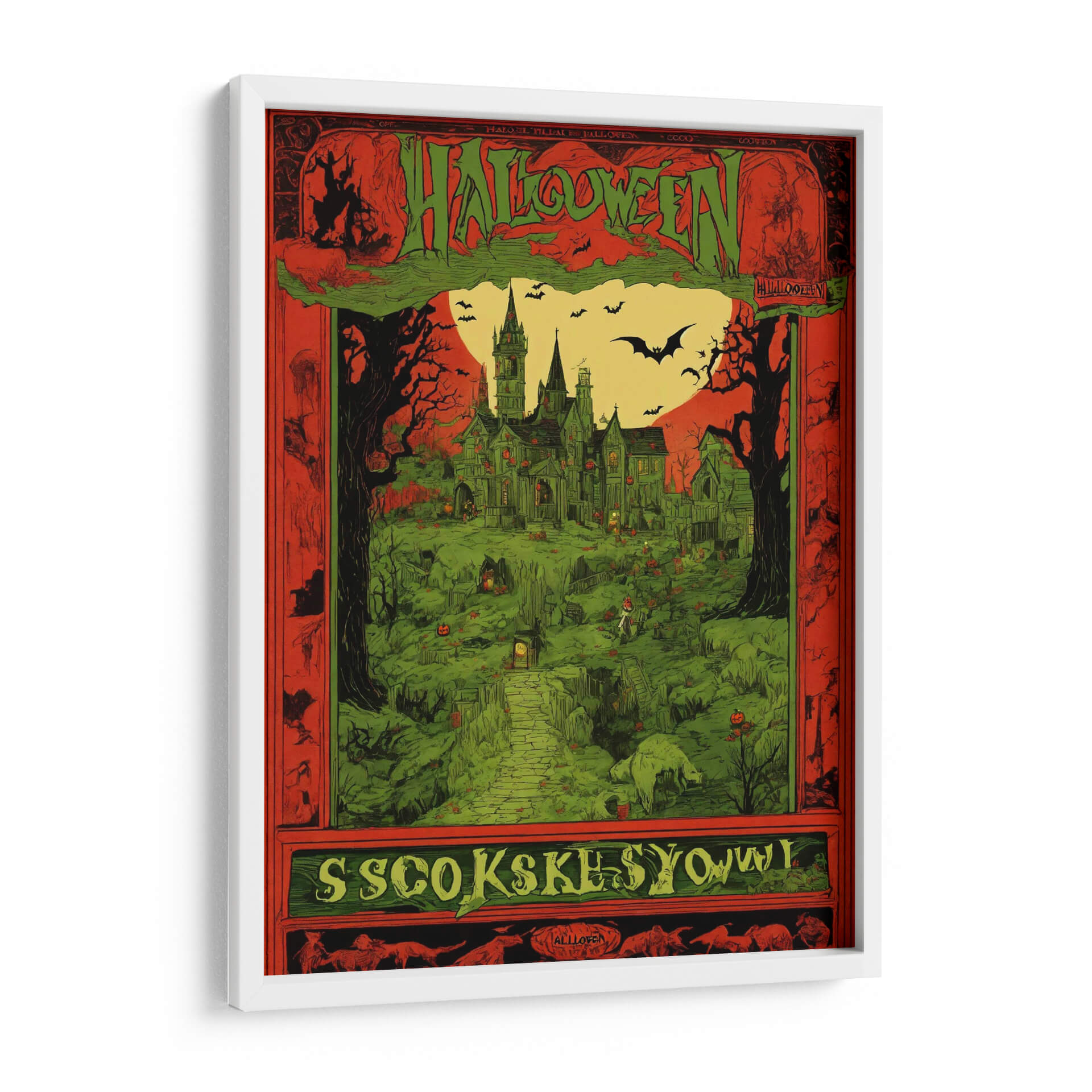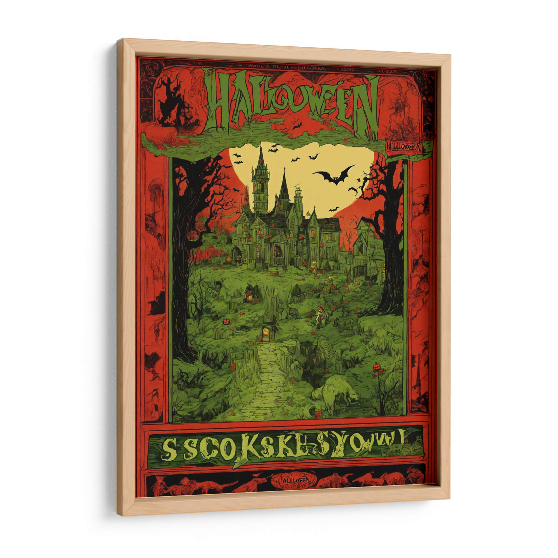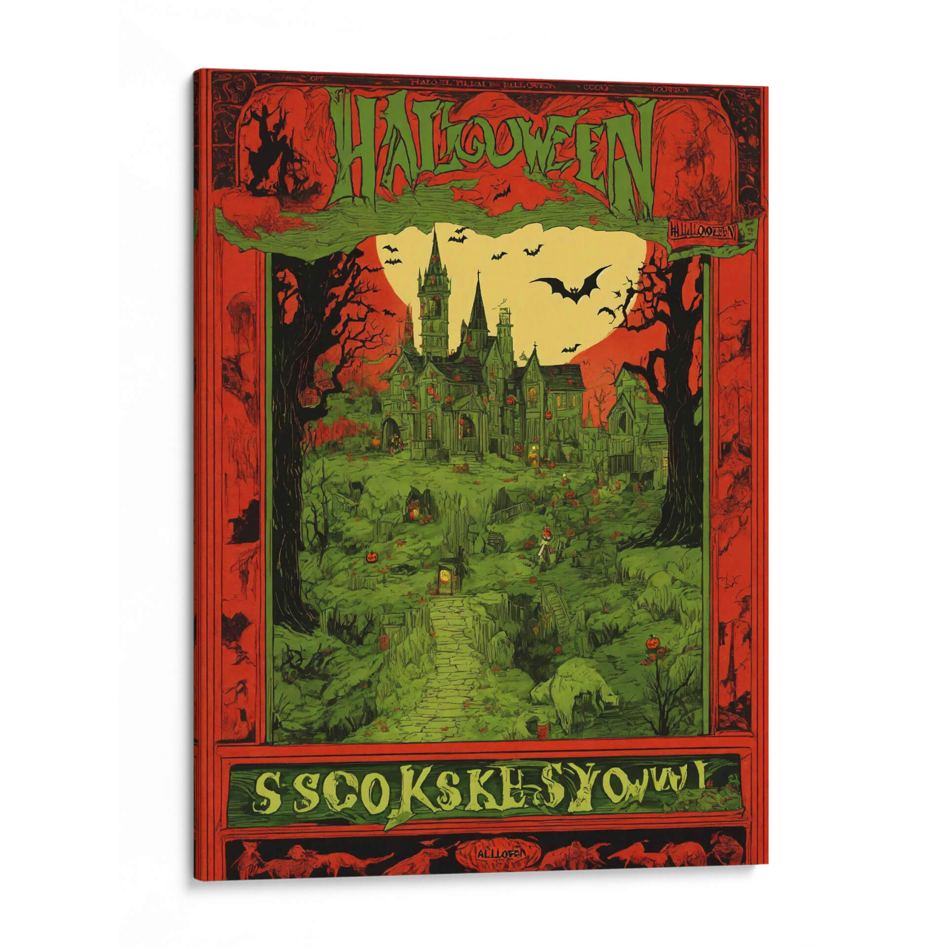Sumérgete en la atmósfera embrujada de 'Halloween 015', una obra de arte digital que captura la esencia gótica de la noche de brujas. Este cuadro decorativo presenta un imponente castillo lúgubre rodeado de un paisaje sombrío, iluminado por una luna roja y la silueta de murciélagos en vuelo. Los colores vibrantes, dominados por verdes intensos y rojos dramáticos, crean un contraste impactante que evoca misterio y una pizca de terror juguetón. Las intrincadas ilustraciones, llenas de detalles como calabazas y árboles retorcidos, invitan a explorar cada rincón de esta escena espeluznante. El estilo artístico, que fusiona elementos del arte gótico y la ilustración vintage de Halloween, lo convierte en una pieza única. Es ideal para aquellos que buscan añadir un toque audaz y temático a su decoración, ya sea en una sala de estar, un estudio o incluso como centro de atención durante la temporada de Halloween. Este cuadro decorativo no es solo una imagen, es una invitación a celebrar la magia y el misterio de una de las festividades más icónicas del año, transformando tu espacio en un portal a lo macabro y lo fascinante. Añade un aire de leyenda y encanto a tu hogar con esta pieza cautivadora.