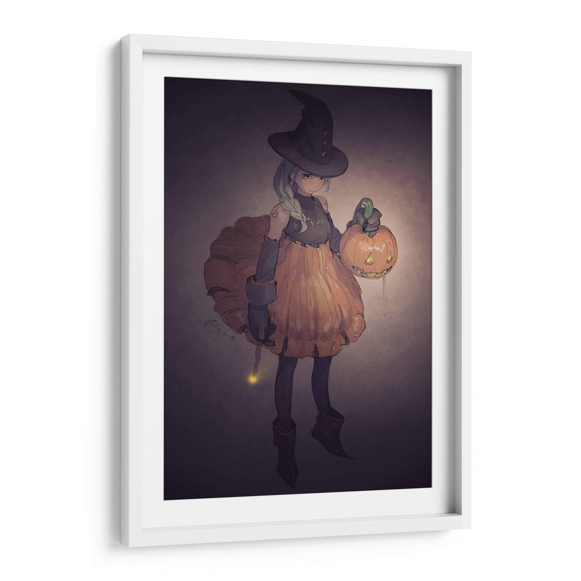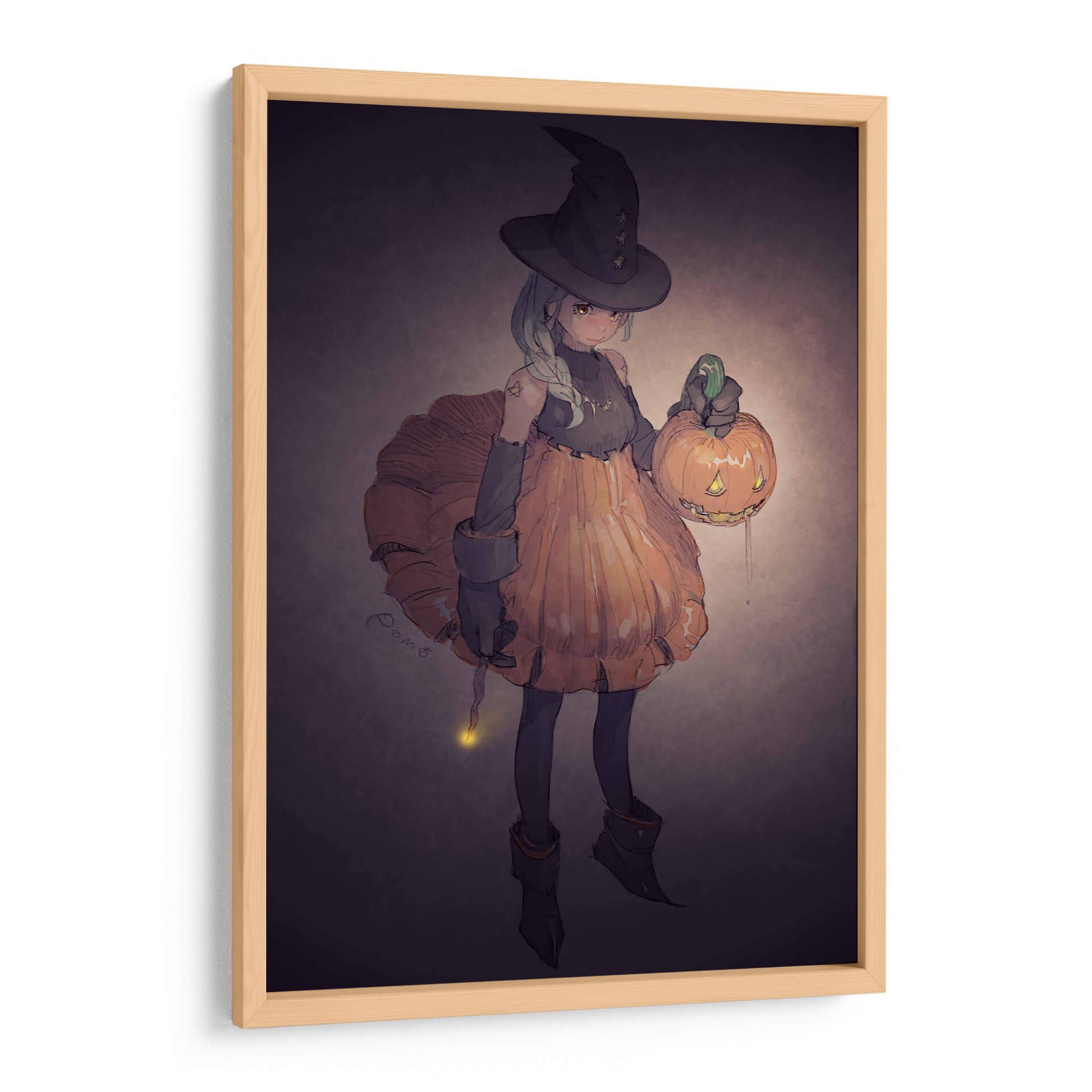 Celebra la temporada otoñal con este cautivador cuadro decorativo que captura la esencia de Halloween. La obra presenta a una encantadora figura vestida con un traje inspirado en una calabaza, adornado con un sombrero de bruja icónico. Sosteniendo una linterna de Jack-o'-lantern tallada, la ilustración evoca una atmósfera festiva y ligeramente misteriosa, perfecta para la época. Los colores cálidos predominantes, con naranjas vibrantes y sombras oscuras, crean un contraste llamativo y una sensación de calidez hogareña, a pesar del tema espeluznante. El estilo artístico, que combina elementos del anime con un toque etéreo, hace que esta pieza sea única y atractiva. Es ideal para añadir un toque de personalidad y diversión a la decoración de cualquier habitación, desde salas de estar y dormitorios hasta espacios de entretenimiento. Este cuadro decorativo es una forma fantástica de infundir espíritu de Halloween en tu hogar u oficina, atrayendo miradas y generando conversación entre tus invitados. Añade un toque de magia y fantasía a tus paredes con esta obra de arte digital.