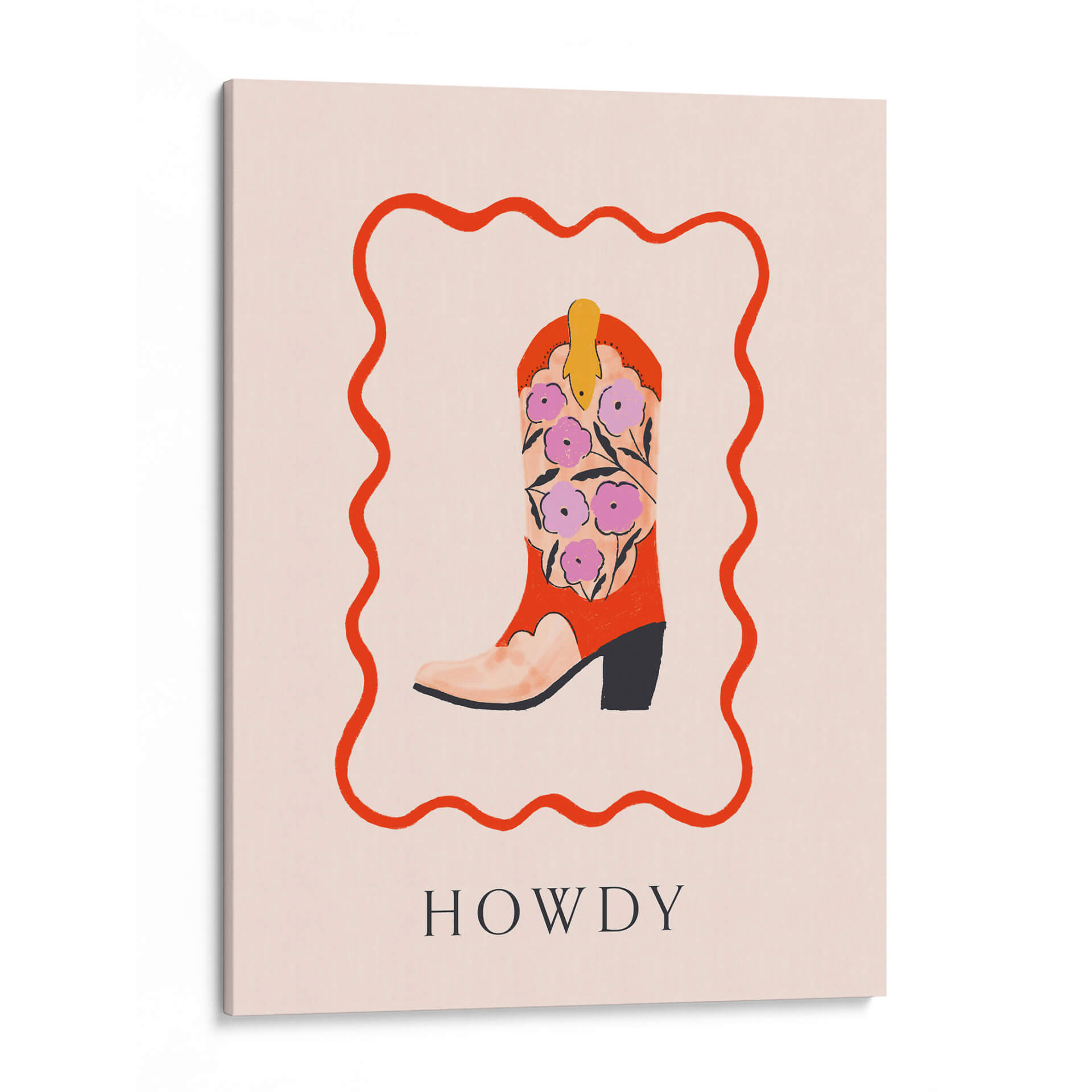 Dale la bienvenida a tu hogar con el encantador cuadro decorativo 'Howdy Boot' de Aislinn Simmonds. Esta pieza de arte contemporáneo presenta una bota de estilo western, adornada con un vibrante ramo de flores rosas y hojas verdes, todo ello enmarcado por una audaz línea roja ondulada. La paleta de colores, que combina el suave tono melocotón de la bota con el llamativo coral del marco y los toques alegres de rosa y verde, crea una atmósfera juguetona y acogedora. El diseño, con su estilo de ilustración estilizada y un toque de estética retro, evoca una sensación de nostalgia y calidez. El texto 'HOWDY' en tipografía clásica refuerza la bienvenida. Este cuadro decorativo es perfecto para añadir un punto focal distintivo a cualquier habitación, desde una sala de estar moderna hasta un dormitorio acogedor o una entrada llena de personalidad. Su singularidad lo convierte en un regalo ideal para amantes del arte, la cultura country o simplemente para quienes buscan una pieza decorativa que irradie optimismo y estilo.