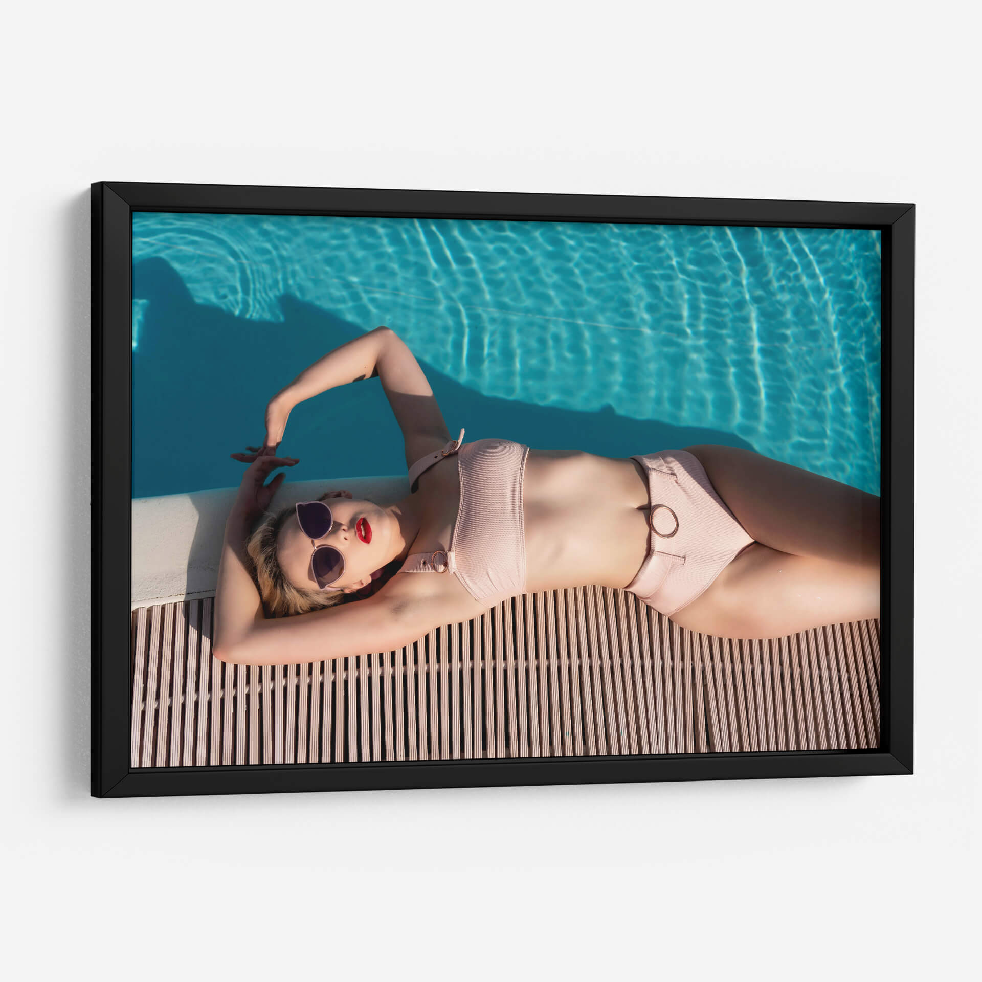 Sumérgete en la atmósfera vibrante y refrescante de "Junto a la Piscina", una obra de arte cautivadora del artista Colin Dixon. Esta pieza visualmente impactante captura la esencia de un día soleado junto al agua, con una paleta de colores que evoca la serenidad y la alegría del verano. Los tonos azules profundos del agua contrastan maravillosamente con la figura principal, creando un punto focal dinámico que atrae la mirada. La composición, que presenta una mujer relajándose en el borde de la piscina, transmite una sensación de tranquilidad y elegancia despreocupada. Los detalles sutiles y la iluminación crean una atmósfera envolvente, perfecta para añadir un toque de sofisticación y un aire vacacional a cualquier espacio. Este cuadro decorativo es ideal para salones modernos, dormitorios serenos o incluso para dar vida a un espacio de oficina. "Junto a la Piscina" no es solo una obra de arte, es una invitación a la relajación y al disfrute de los placeres sencillos de la vida. Un elemento decorativo que transformará tu hogar en un oasis de estilo y calma.