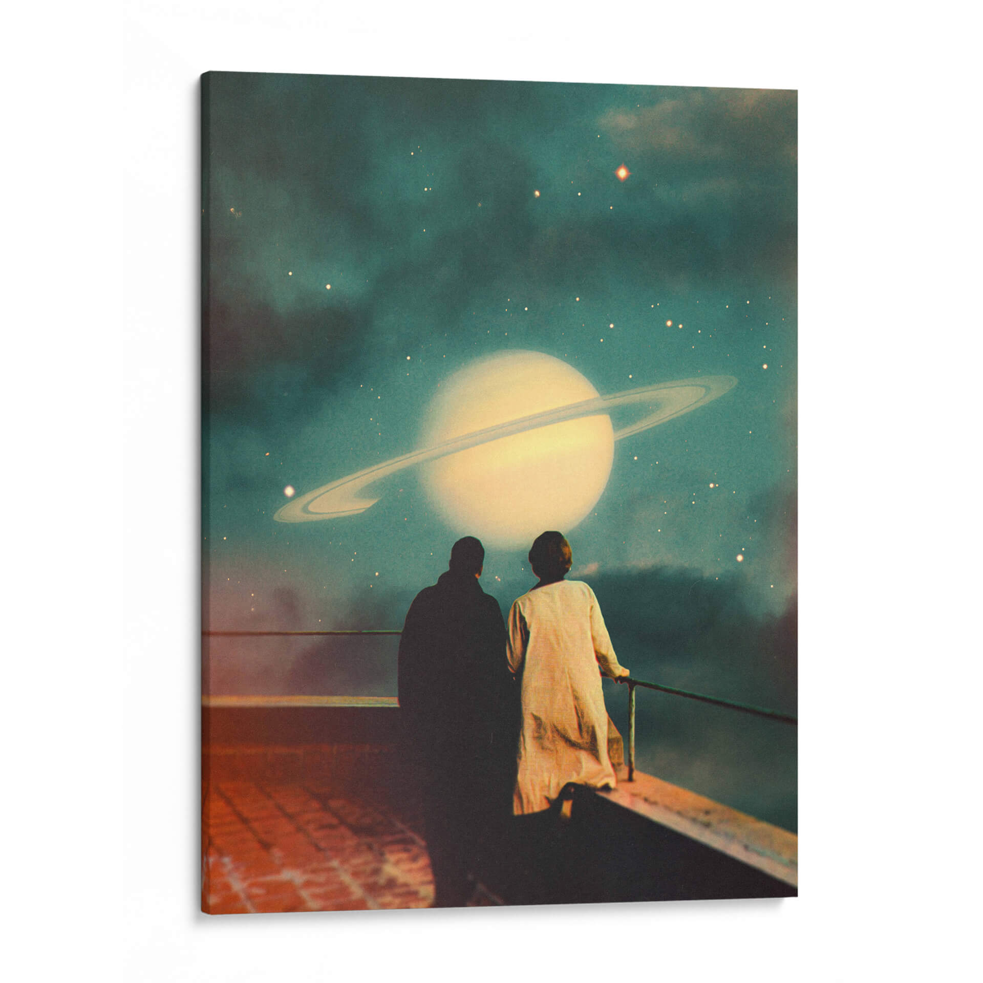 Sumérgete en la inmensidad del cosmos con "Juntos a través de las tormentas", una obra de arte que captura la esencia de la conexión humana frente a lo desconocido. Dos figuras se alzan en un balcón, contemplando un majestuoso planeta anillado que ilumina un cielo nocturno salpicado de estrellas y nubes etéreas. La paleta de colores, dominada por profundos tonos verdosos y azules, se entrelaza con destellos dorados y la calidez terrenal del balcón, creando una atmósfera de misterio, asombro y una serena compañía. El estilo evocador, con un toque surrealista y una composición que invita a la contemplación, convierte a este cuadro decorativo en una pieza ideal para cualquier espacio que busque añadir un toque de introspección y maravilla. Perfecto para salas de estar, estudios o dormitorios, "Juntos a través de las tormentas" no es solo una imagen, sino una invitación a soñar y a conectar con lo que trasciende lo terrenal. Transforma tu hogar en un santuario de imaginación con esta pieza única que celebra la unión y la exploración cósmica.