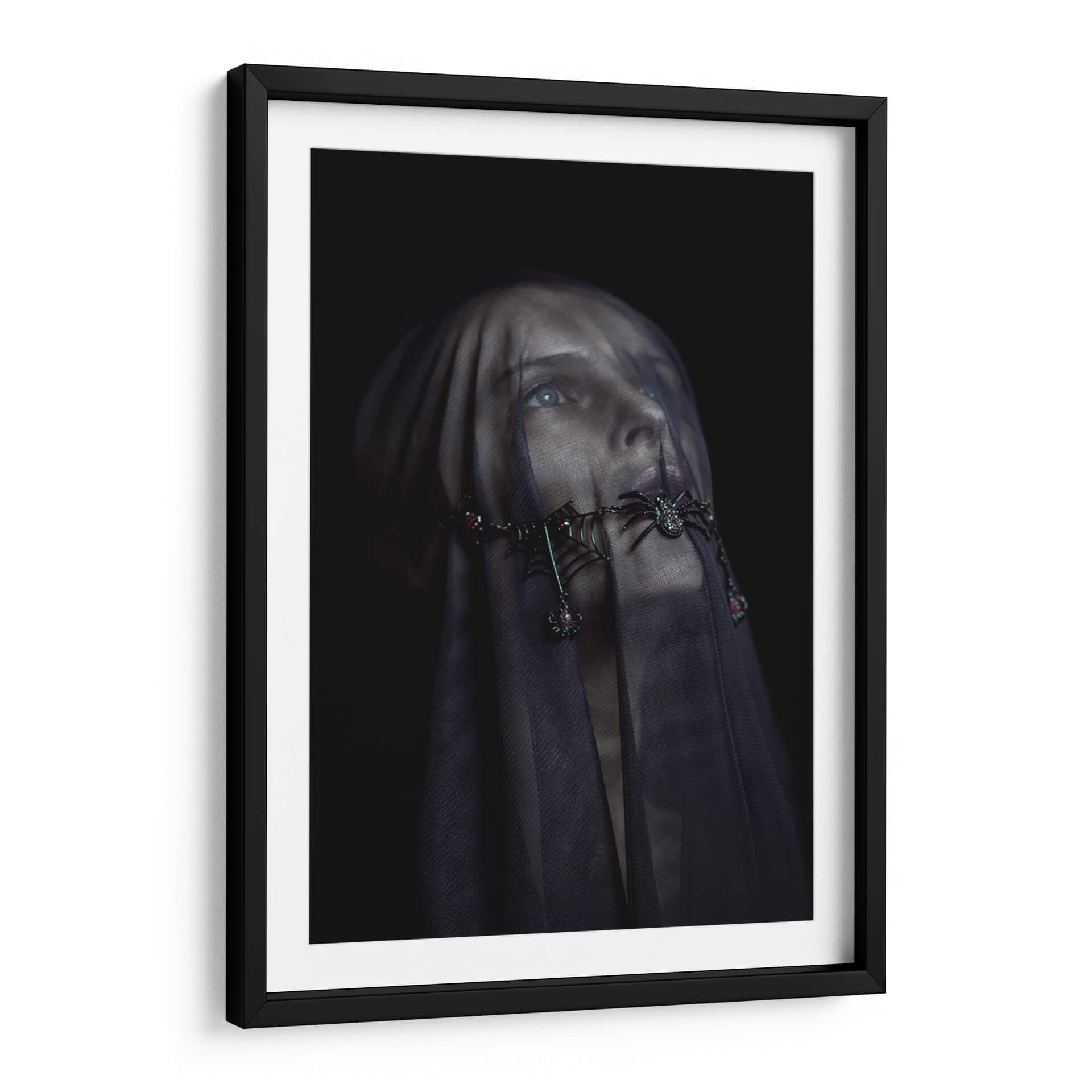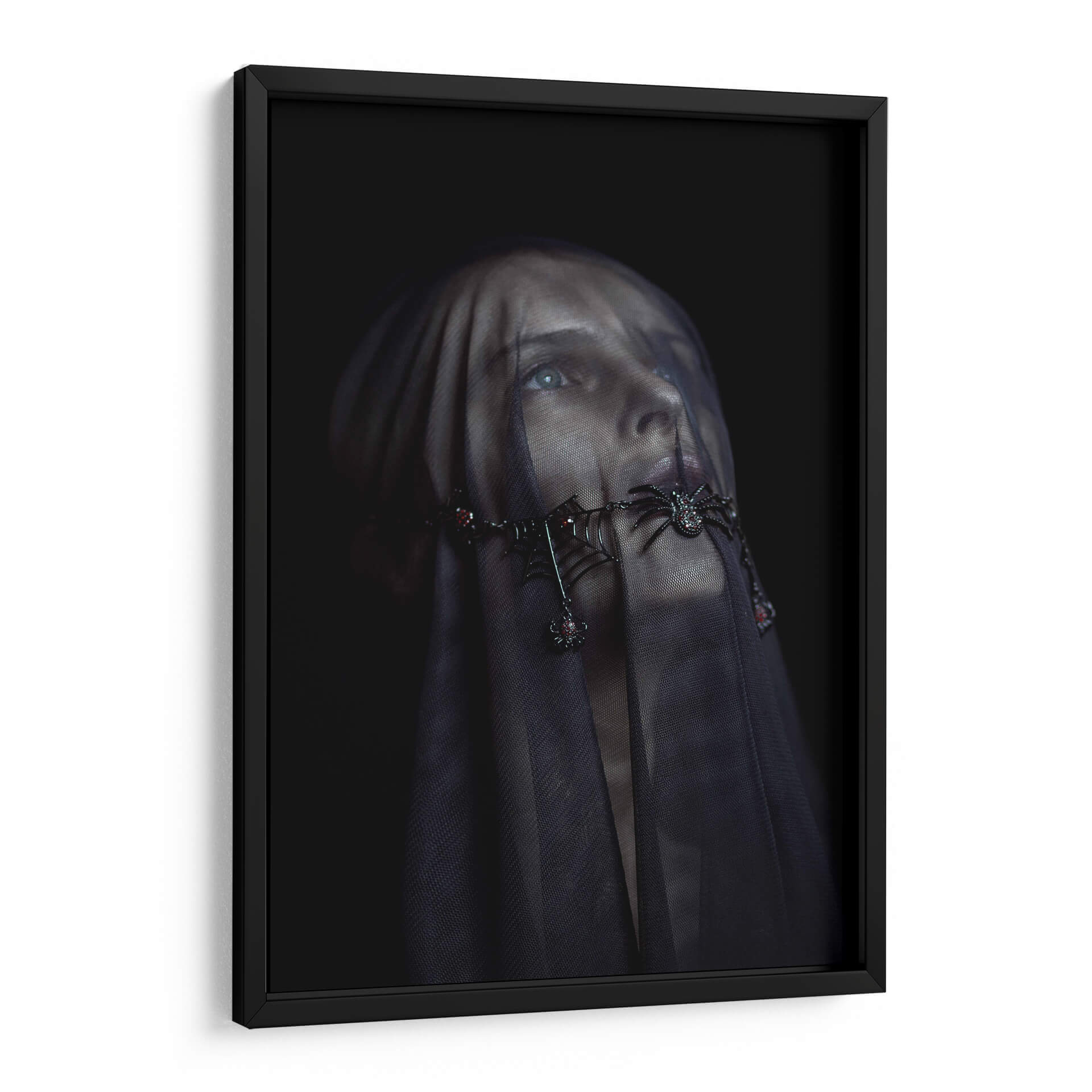 Sumérgete en el misterio y la elegancia con "La Amante de la Araña", una obra de arte cautivadora de Angelina Goncharova. Esta pieza visual explora la dualidad de la belleza y lo enigmático, presentando un rostro etéreo velado por una delicada tela oscura, adornado con un intrincado tocado que evoca la silueta de arañas y telarañas. La paleta de colores se centra en profundos negros y sutiles tonos de piel, creando una atmósfera de introspección y sofisticación. La iluminación juega un papel crucial, resaltando los ojos penetrantes y la expresión enigmática del sujeto, mientras que las sombras añaden profundidad y un aire de secreto. El estilo, con toques de surrealismo y un enfoque en la atmósfera, invita a la contemplación. "La Amante de la Araña" es ideal para aquellos que buscan añadir un toque de drama sutil y un punto de conversación a sus espacios, ya sea en un salón moderno, un estudio privado o un dormitorio con carácter. Este cuadro decorativo transformará cualquier pared, aportando una dimensión única de arte contemporáneo y misterio seductor, convirtiéndose en un foco de atención que inspira y fascina.