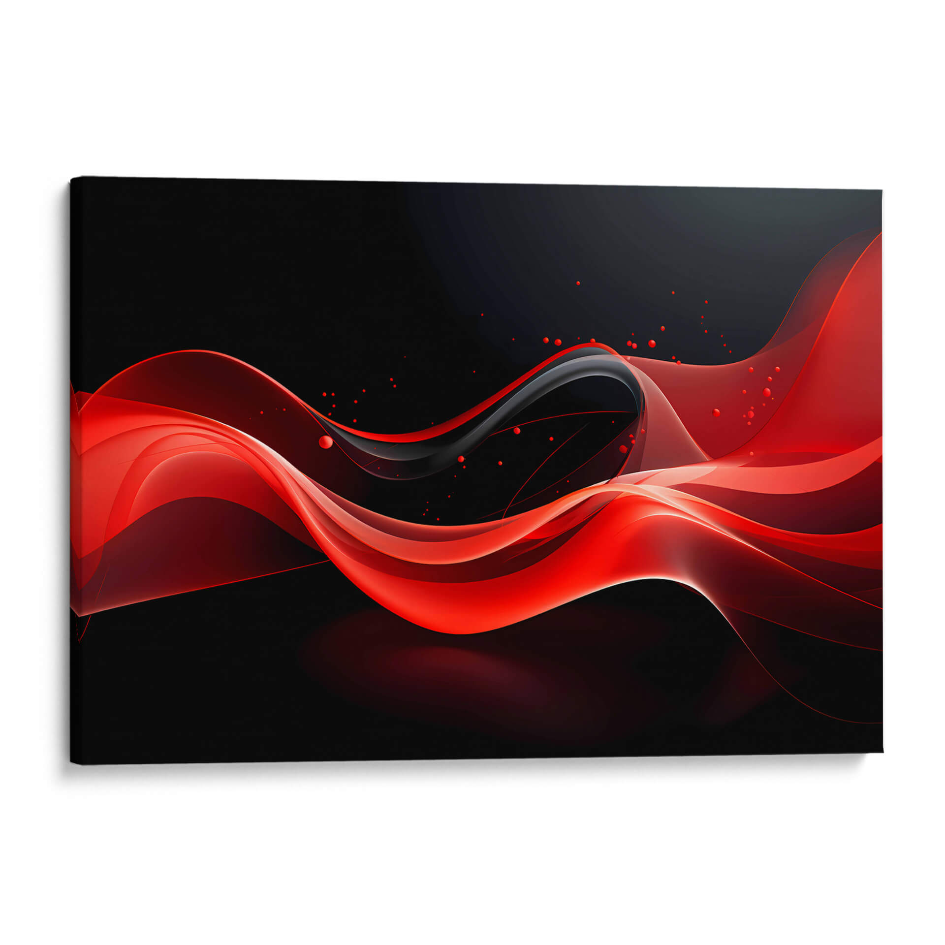 Sumérgete en la intensidad y el dinamismo de "La Calma Roja - 6", una obra de arte digital que captura la fluidez y la pasión a través de sus vibrantes tonalidades rojas y negros profundos. Este cuadro decorativo abstracto se caracteriza por sus elegantes curvas y líneas etéreas que evocan movimiento y energía, como si se tratara de velos de seda danzando en la oscuridad. Las salpicaduras de pequeños puntos rojos añaden un toque lúdico y sorprendente, rompiendo la suavidad de las ondas principales y creando un contraste visual cautivador. La paleta de colores, dominada por el rojo carmesí y el negro azabache, genera una atmósfera de sofisticación, misterio y fuerza. Ideal para espacios que buscan un toque de audacia y modernidad, este lienzo abstracto es perfecto para salas de estar, oficinas o cualquier lugar donde se desee una pieza que inspire pasión y provoque conversación. "La Calma Roja - 6" es más que una simple decoración; es una declaración de estilo contemporáneo y una ventana a la expresión artística digital que transformará tu ambiente.