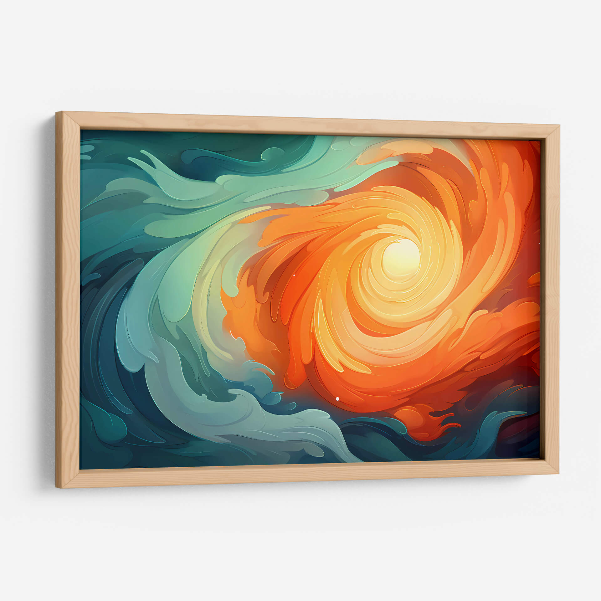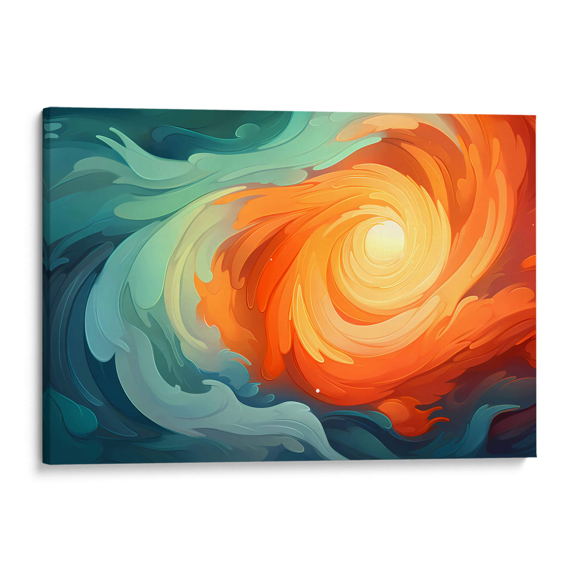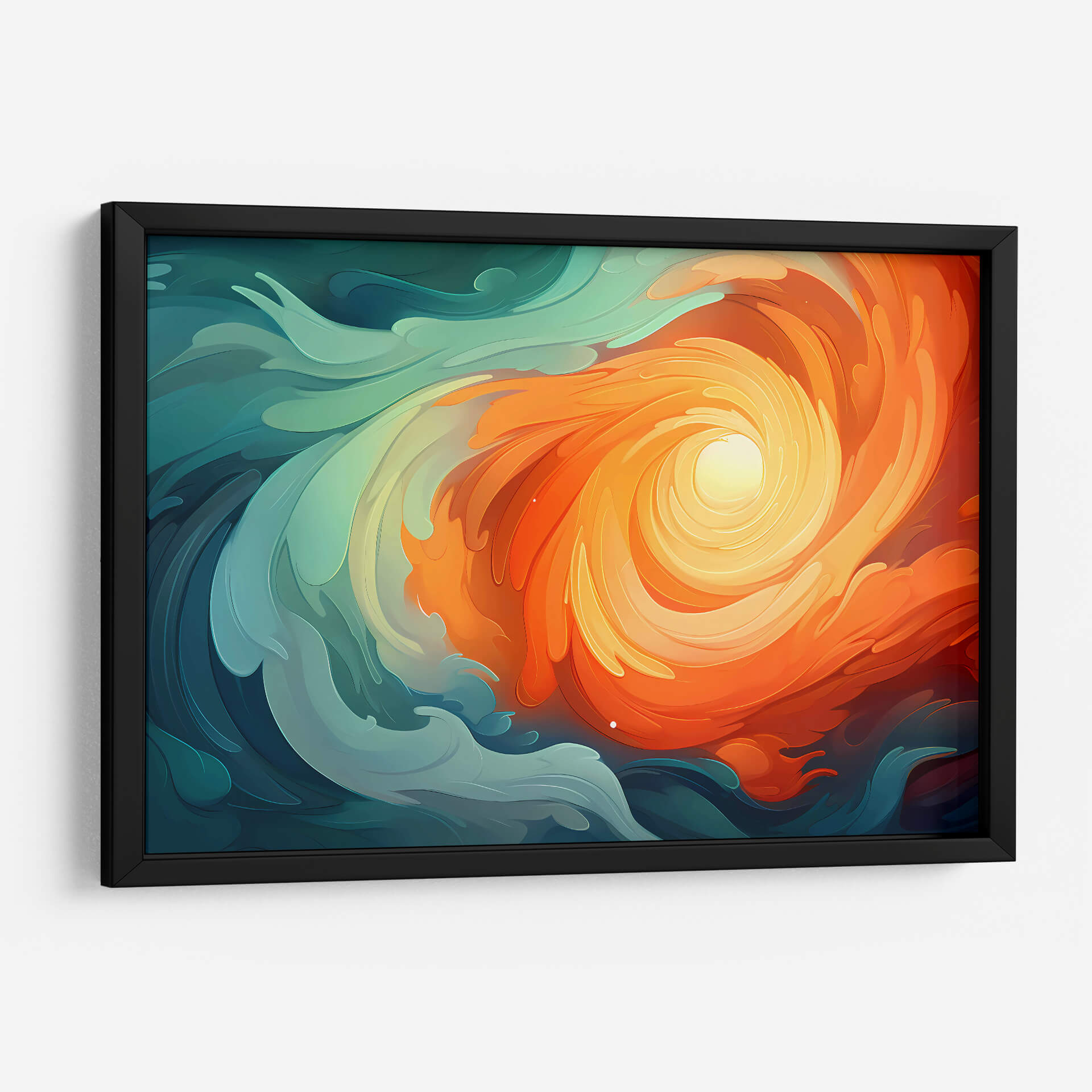 Sumérgete en la energía vibrante y la serenidad envolvente de "La Calma Verde - 1", una obra de arte contemporáneo que captura la dualidad de la naturaleza. Este cuadro decorativo presenta un torbellino dinámico de colores cálidos, dominado por naranjas intensos y amarillos radiantes que emanan de un centro luminoso, evocando la fuerza del sol o el corazón de una tormenta apaciguada. Contrastando con esta explosión de color, las formas fluidas en tonos fríos de verde azulado y azul marino fluyen desde el lado izquierdo, sugiriendo aguas tranquilas o el susurro del viento. La composición abstracta, con sus líneas curvas y texturas dinámicas, crea una sensación de movimiento y profundidad, invitando a la contemplación. "La Calma Verde - 1" es ideal para transformar cualquier espacio en un santuario de paz y vitalidad. Perfecto para salas de estar modernas, oficinas creativas o dormitorios que buscan un toque de inspiración y armonía visual. Este cuadro decorativo de arte abstracto contemporáneo se convertirá en el punto focal que cautivará a todos tus visitantes, aportando un diálogo visual entre la calma y la energía.