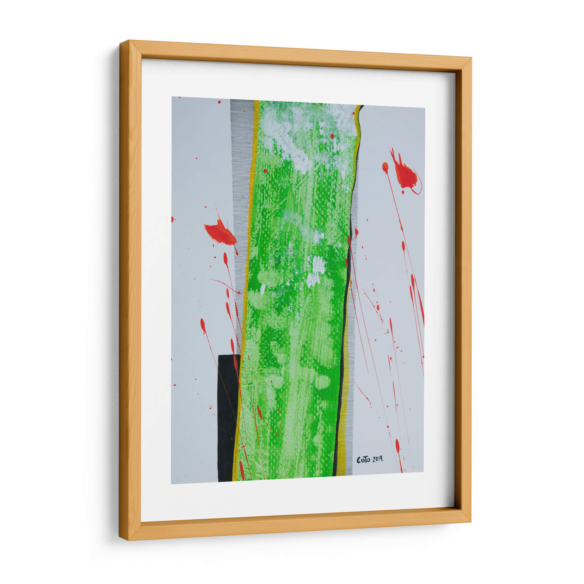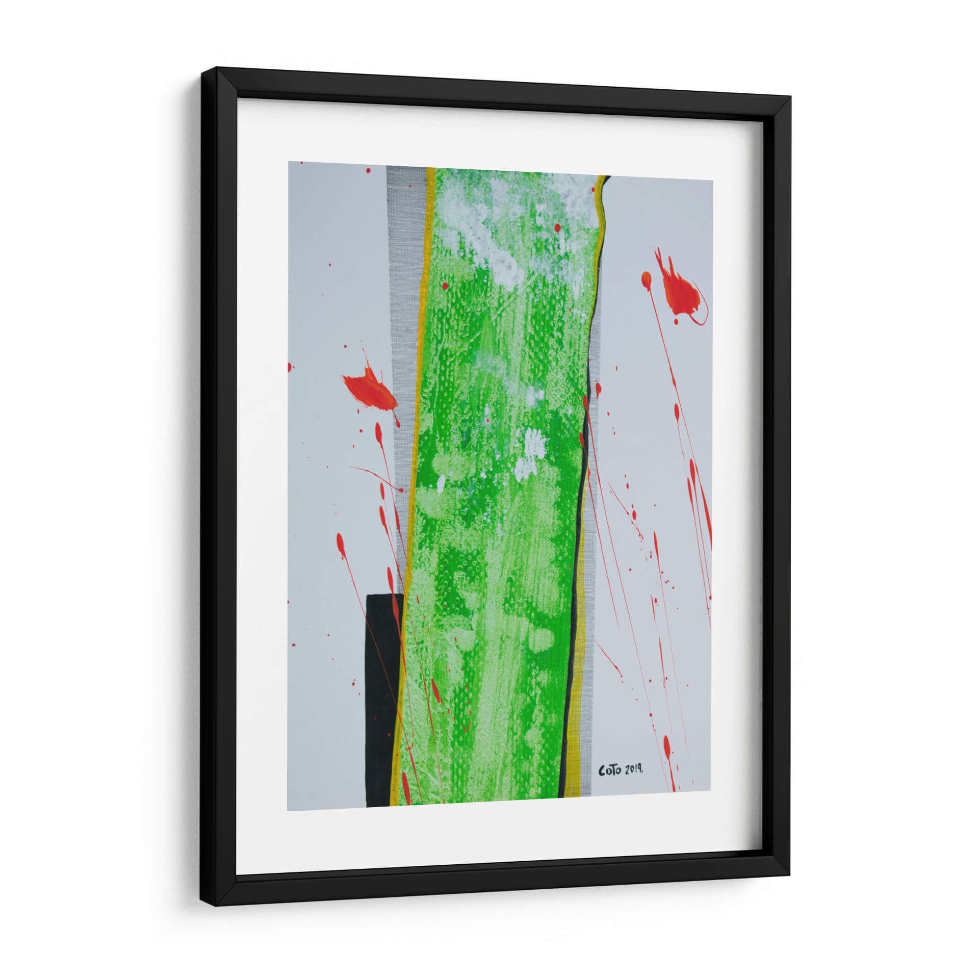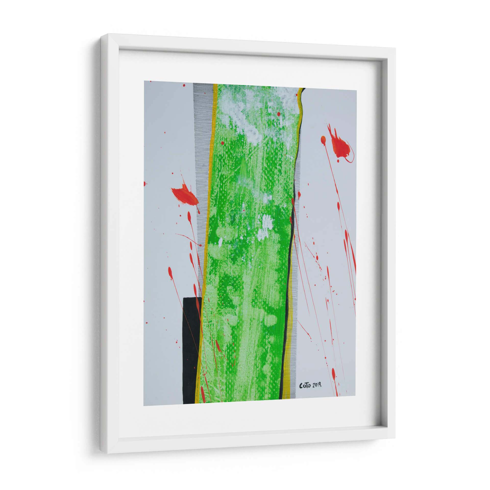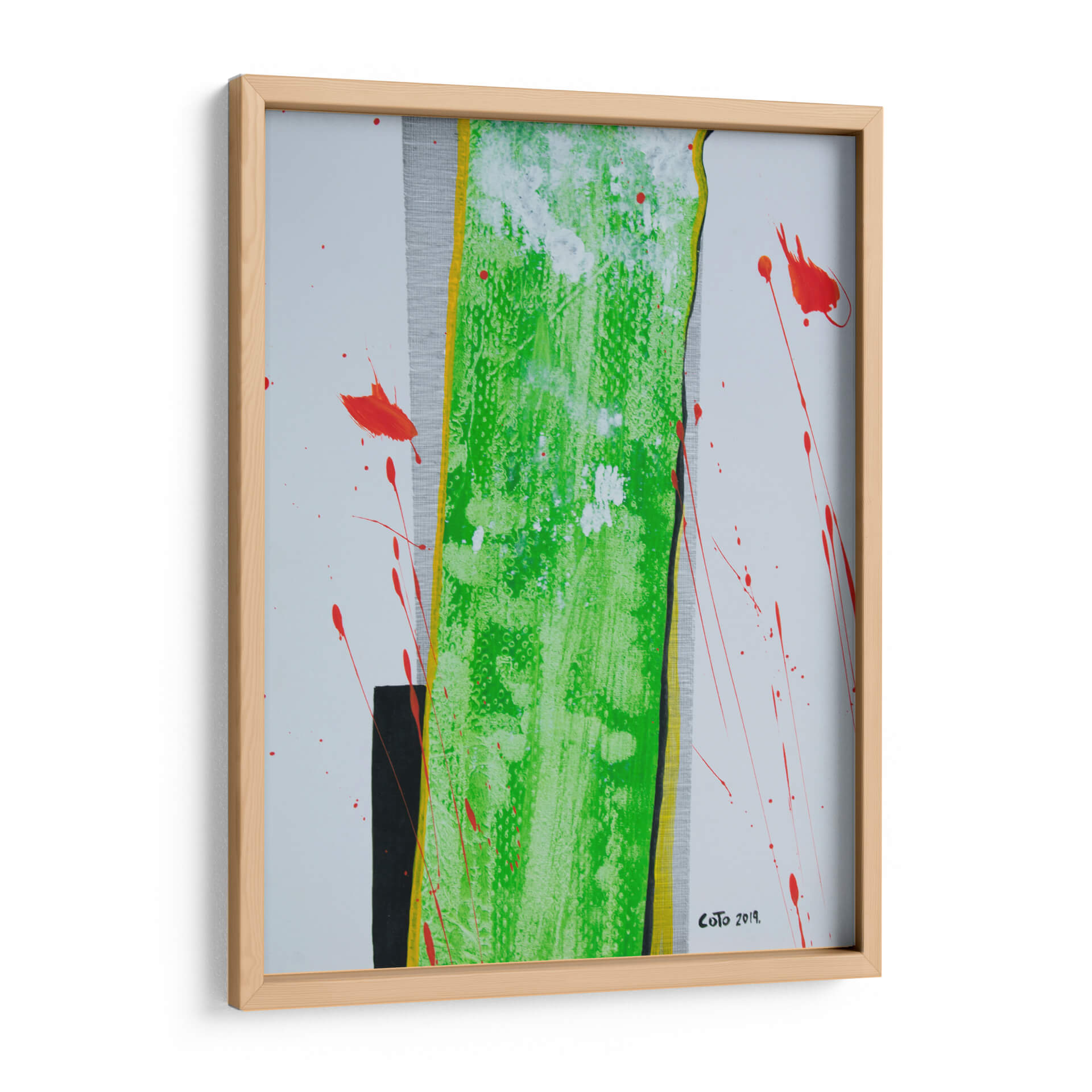 Sumérgete en la vibrante energía de "La Columna", una obra de arte contemporáneo que desafía las convenciones y cautiva la mirada. Este cuadro decorativo abstracto se caracteriza por su audaz uso del color, destacando una imponente franja central de un verde eléctrico y texturizado, bordeada por vibrantes toques de amarillo y negro. Salpicaduras de un rojo intenso rompen la serenidad del fondo blanco y gris texturizado, añadiendo un dinamismo inesperado y una sensación de movimiento que invita a la reflexión. La composición, aunque abstracta, evoca una estructura sólida y vertical, similar a una columna, que se ve acentuada por las líneas y contrastes. Es una pieza que combina la fuerza con una delicada explosión de color, perfecta para inyectar personalidad y un toque de arte moderno a cualquier espacio. Ideal para salas de estar, oficinas o cualquier lugar donde se busque un punto focal inspirador y lleno de vida. "La Columna" es más que una decoración; es una declaración de estilo y una invitación a experimentar la abstracción en su máxima expresión, aportando sofisticación y un toque de vanguardia a tu ambiente.