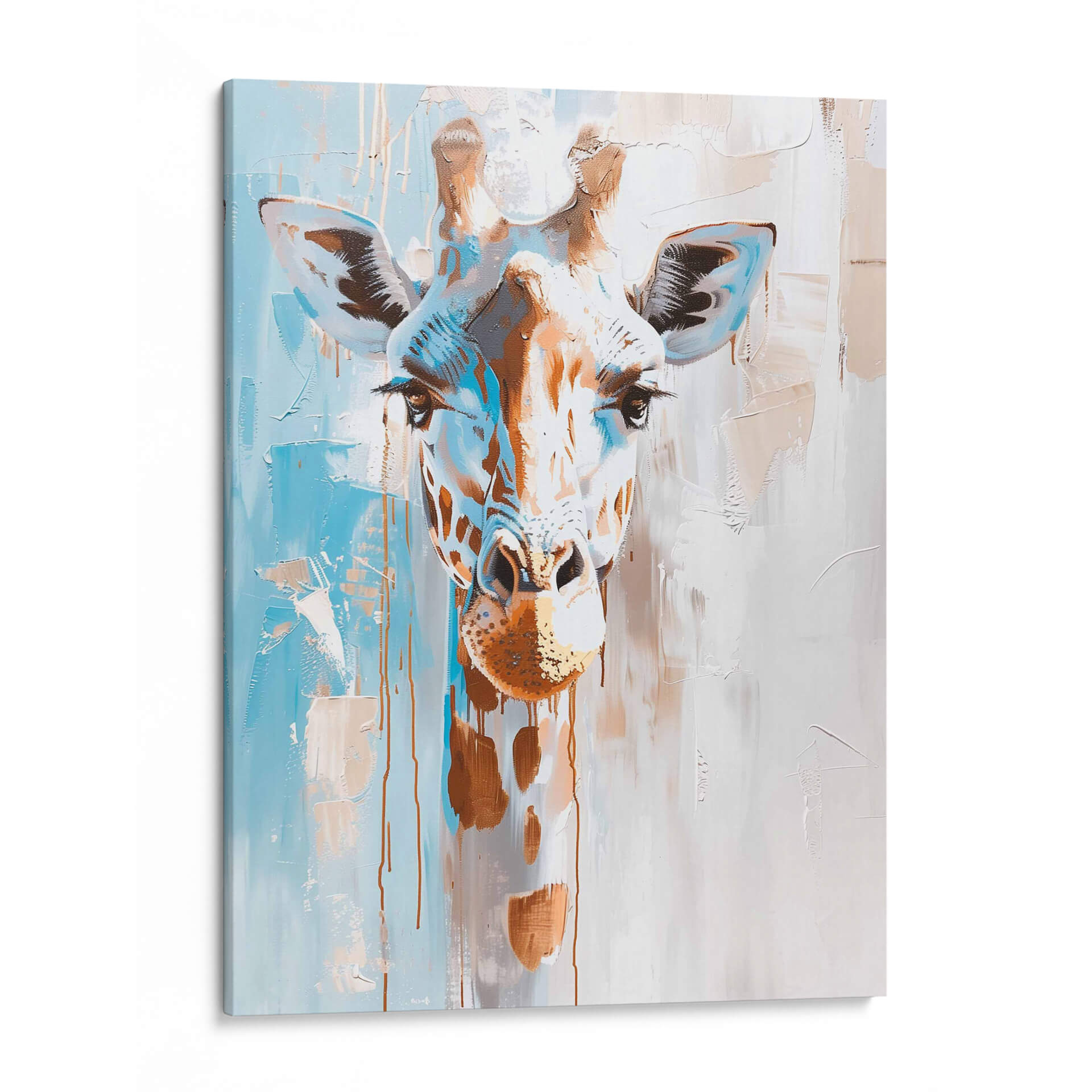 Captura la majestuosidad de la sabana africana con "La Jirafa", una obra de arte contemporáneo de Dav Madrid. Este cuadro decorativo presenta un primer plano impactante de una jirafa, con un enfoque expresionista que resalta su mirada profunda y serena. La paleta de colores combina tonos tierra cálidos y ocres con vibrantes toques de azul cielo y blanco puro, creando una atmósfera de calma y sofisticación. Las pinceladas audaces y la textura visible añaden una dimensión táctil a la pieza, mientras que las gotas de pintura simulando lluvia o lágrimas le otorgan un aire melancólico y poético. "La Jirafa" es ideal para añadir un punto focal de naturaleza elegante y moderna a cualquier sala de estar, dormitorio o estudio. Su estilo abstracto y el enfoque en la forma y el color la convierten en una adición versátil para interiores contemporáneos, minimalistas o bohemios. Transforma tu espacio con la gracia y el misterio de esta pieza única.