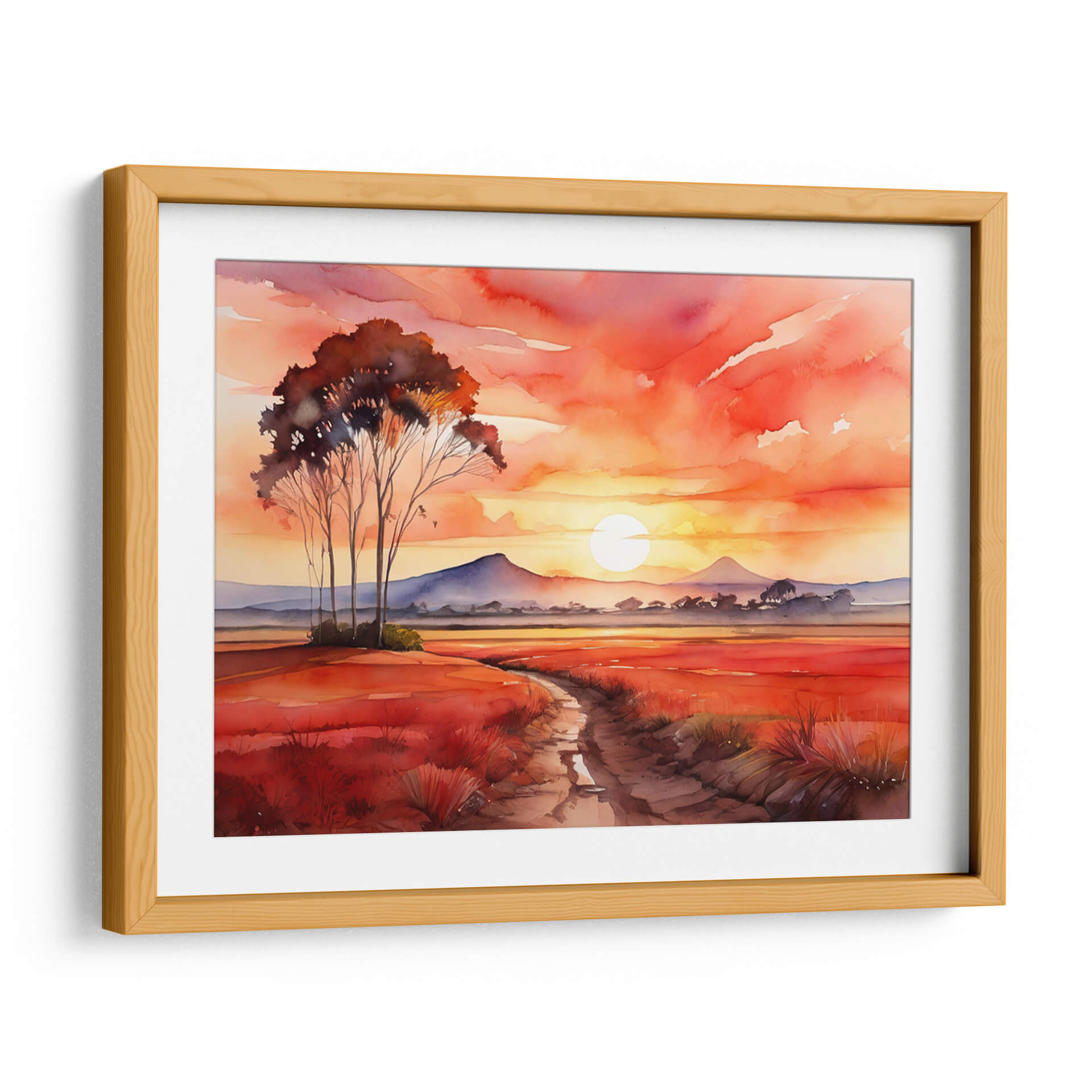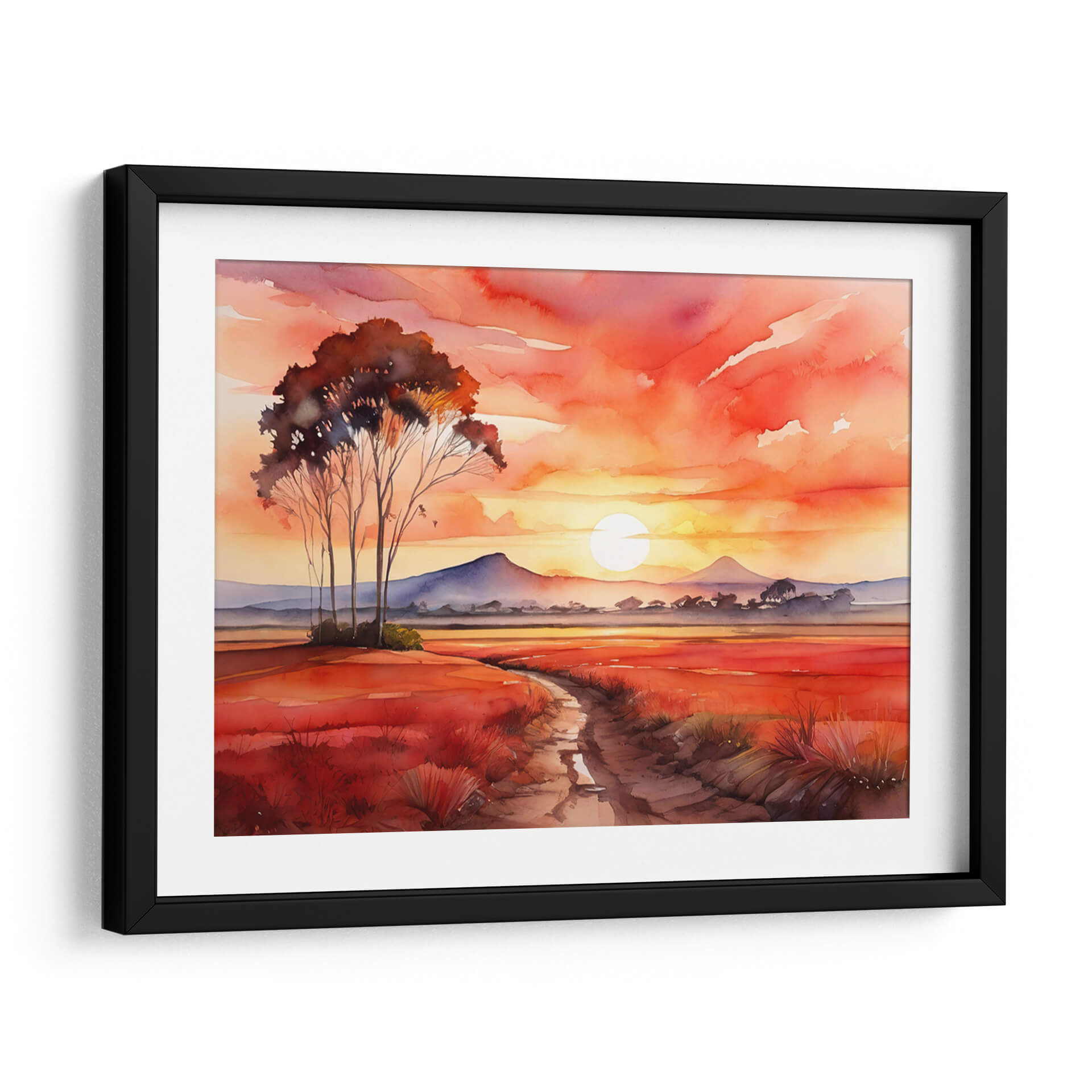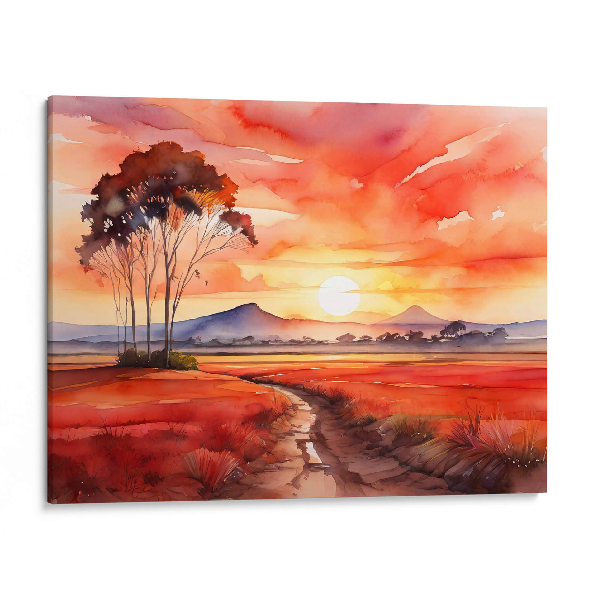 Sumérgete en la calidez y la serenidad de "La Sabana", una cautivadora obra de arte que captura la esencia de un atardecer africano. Esta pieza, ejecutada con una técnica de acuarela vibrante, te transportará a paisajes abiertos bañados por tonos anaranjados, rojizos y dorados, evocando una sensación de paz y asombro. La composición presenta un camino serpenteante que invita a la contemplación, flanqueado por una vegetación exuberante y un árbol solitario que se alza majestuosamente contra el cielo ardiente. Las montañas distantes y el sol radiante en el horizonte completan esta escena idílica, creando una atmósfera de tranquilidad y belleza natural. Ideal para añadir un toque de calidez y sofisticación a tu sala de estar, dormitorio u oficina, este cuadro decorativo es una invitación a la introspección y al disfrute de la naturaleza en su máxima expresión. Los colores intensos y las pinceladas fluidas transmiten una energía sutil pero poderosa, convirtiendo cualquier espacio en un refugio de serenidad. Descubre la magia de "La Sabana" y permite que su belleza transforme tu hogar.
