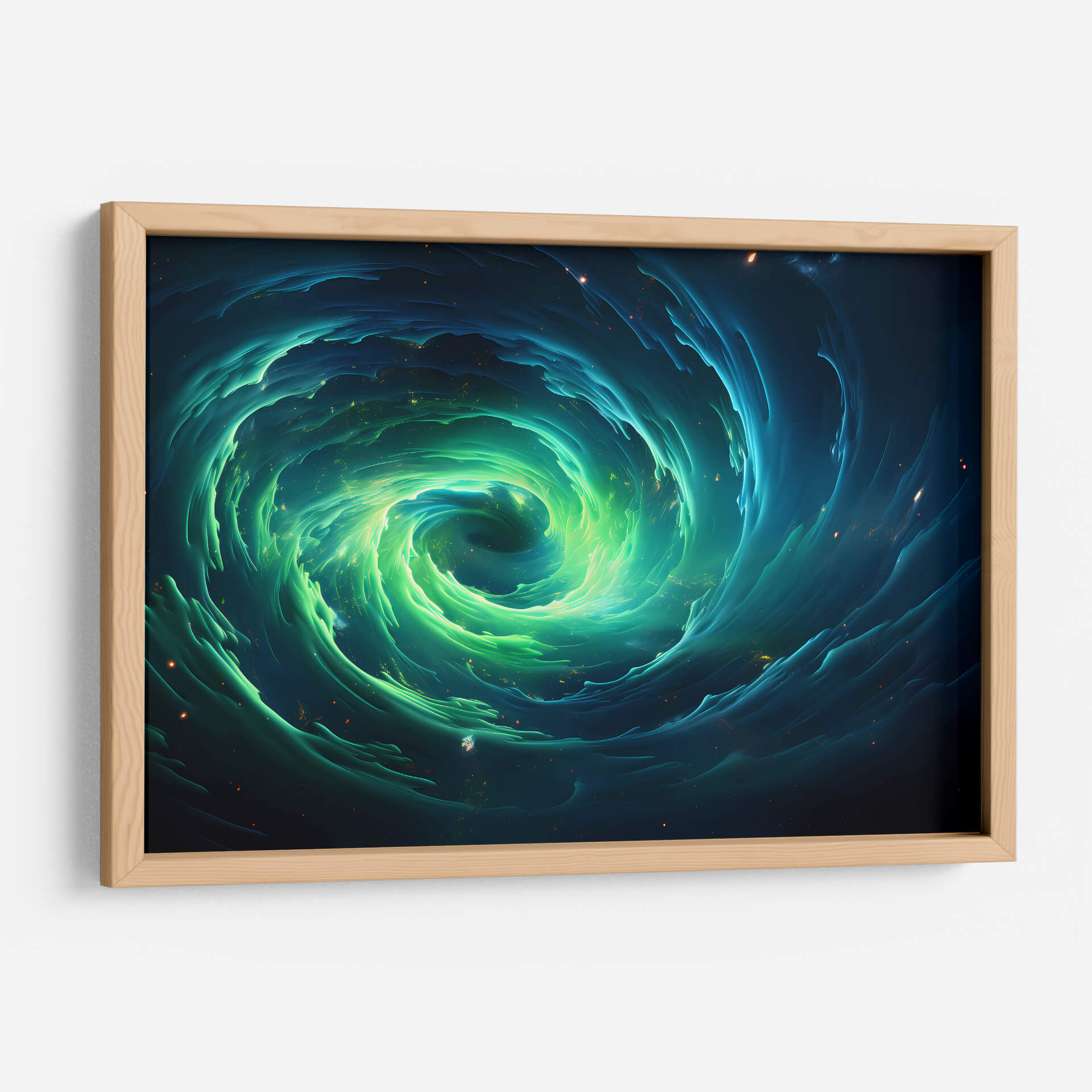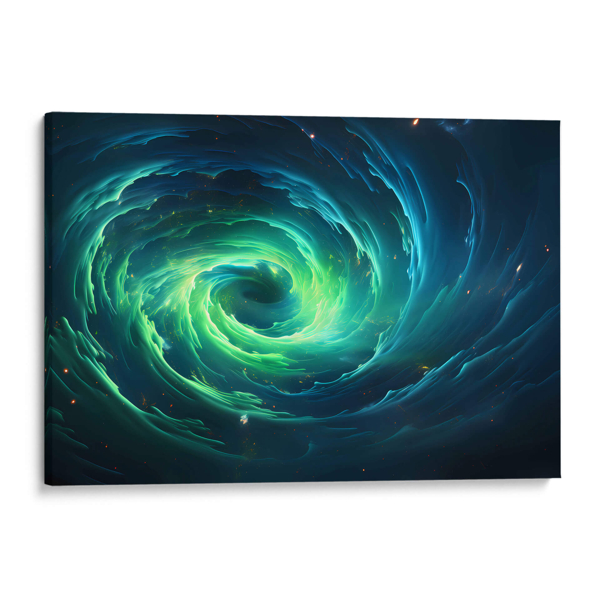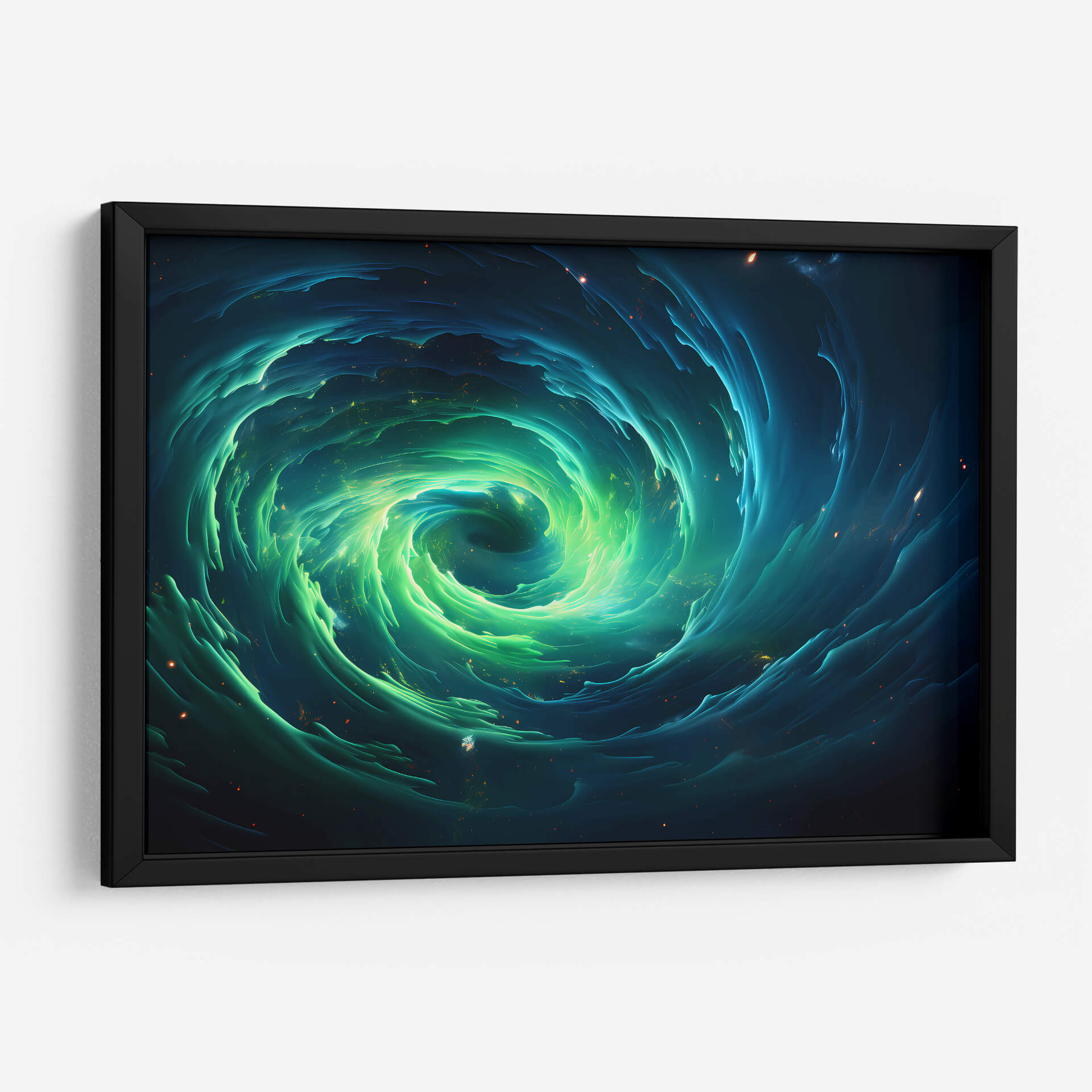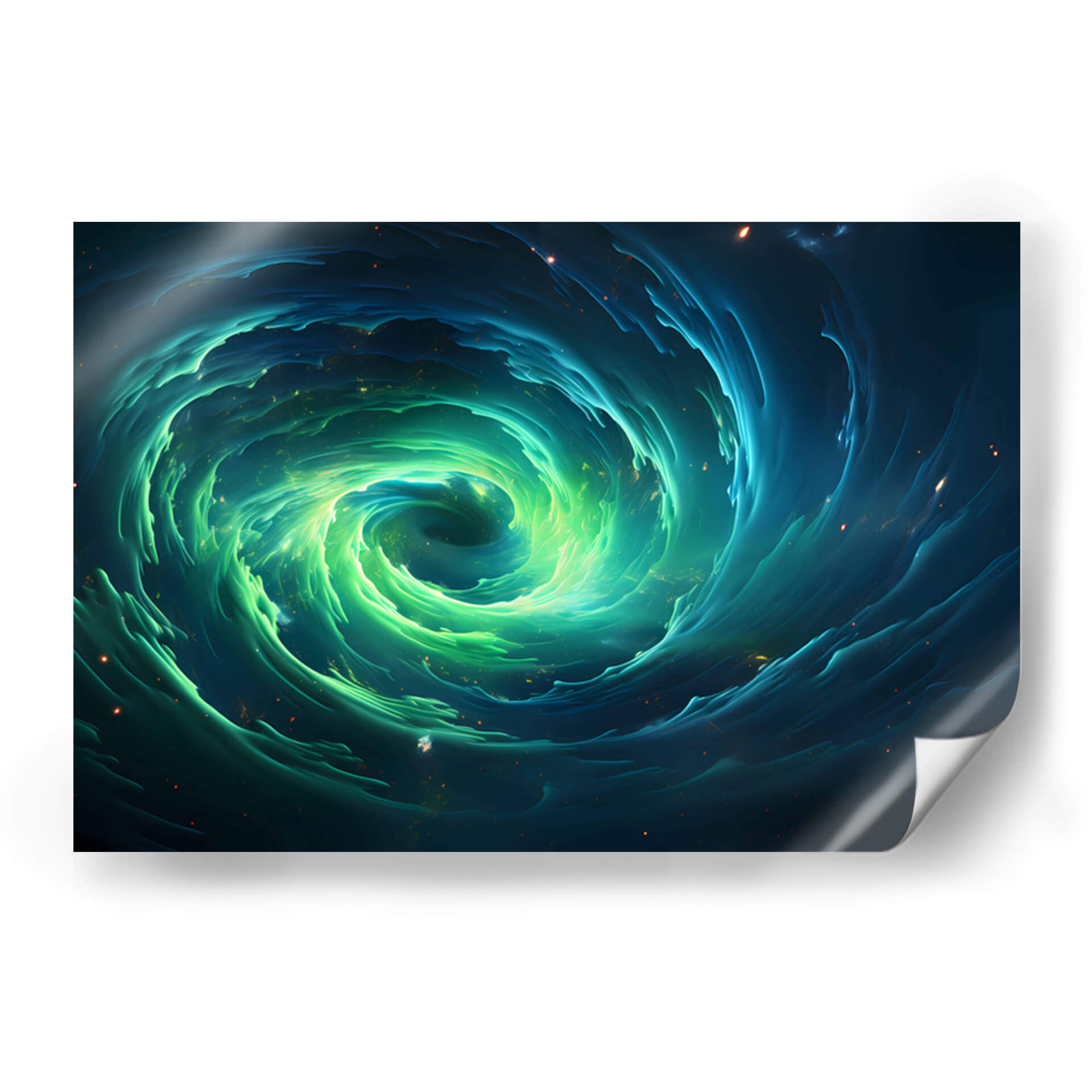 Sumérgete en la hipnotizante 'Tormenta Verde Encendida', una obra de arte digital que captura la majestuosidad y el poder de la naturaleza en un remolino cósmico. Este cuadro decorativo presenta un vórtice dinámico de tonos verdes vibrantes y azules profundos, salpicado de sutiles destellos de luz que evocan estrellas distantes o partículas energéticas. La composición es intensamente envolvente, guiando la mirada hacia el centro de la tormenta, donde la luz parece concentrarse con una energía palpable. El estilo abstracto y orgánico de la obra crea una sensación de movimiento perpetuo y misterio, invitando a la contemplación. Ideal para espacios modernos y contemporáneos, este arte de pared transformará cualquier habitación, añadiendo un toque de drama cósmico y sofisticación. Perfecto para salones, oficinas o cualquier lugar donde se desee un punto focal que inspire asombro y serenidad. Deja que esta tormenta visual energice tu entorno y despierte la imaginación.