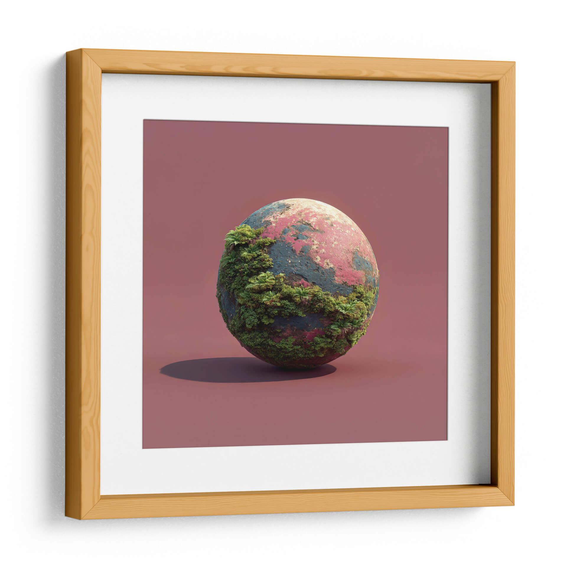 Descubre la obra de arte "Lejos de Casa - 029" del artista DeLaVegaGaming, una pieza visualmente cautivadora que evoca el misterio de la naturaleza y la resiliencia de la vida. Este cuadro decorativo presenta una esfera texturizada, reminiscentede un planeta o una roca antigua, cubierta parcialmente por una exuberante vegetación verde. La esfera muestra una paleta de colores que combina tonos grises y rojizos, sugiriendo una historia de desgaste y transformación. La vegetación, vibrante y detallada, contrasta con la superficie terrenal, creando una sensación de renacimiento y esperanza. La composición es minimalista, centrando toda la atención en el objeto principal y su intrigante dualidad entre lo orgánico y lo geológico. La iluminación suave proyecta una sombra sutil, añadiendo profundidad y realismo a la escena. "Lejos de Casa - 029" es ideal para espacios que buscan un toque de contemplación y originalidad, como un estudio moderno, una sala de estar ecléctica o incluso un dormitorio que aspire a la serenidad. Transforma tu hogar con este cuadro decorativo que invita a la reflexión sobre el ciclo de la vida y la belleza encontrada en lo inesperado. Añade una pieza única a tu colección de arte de pared.
