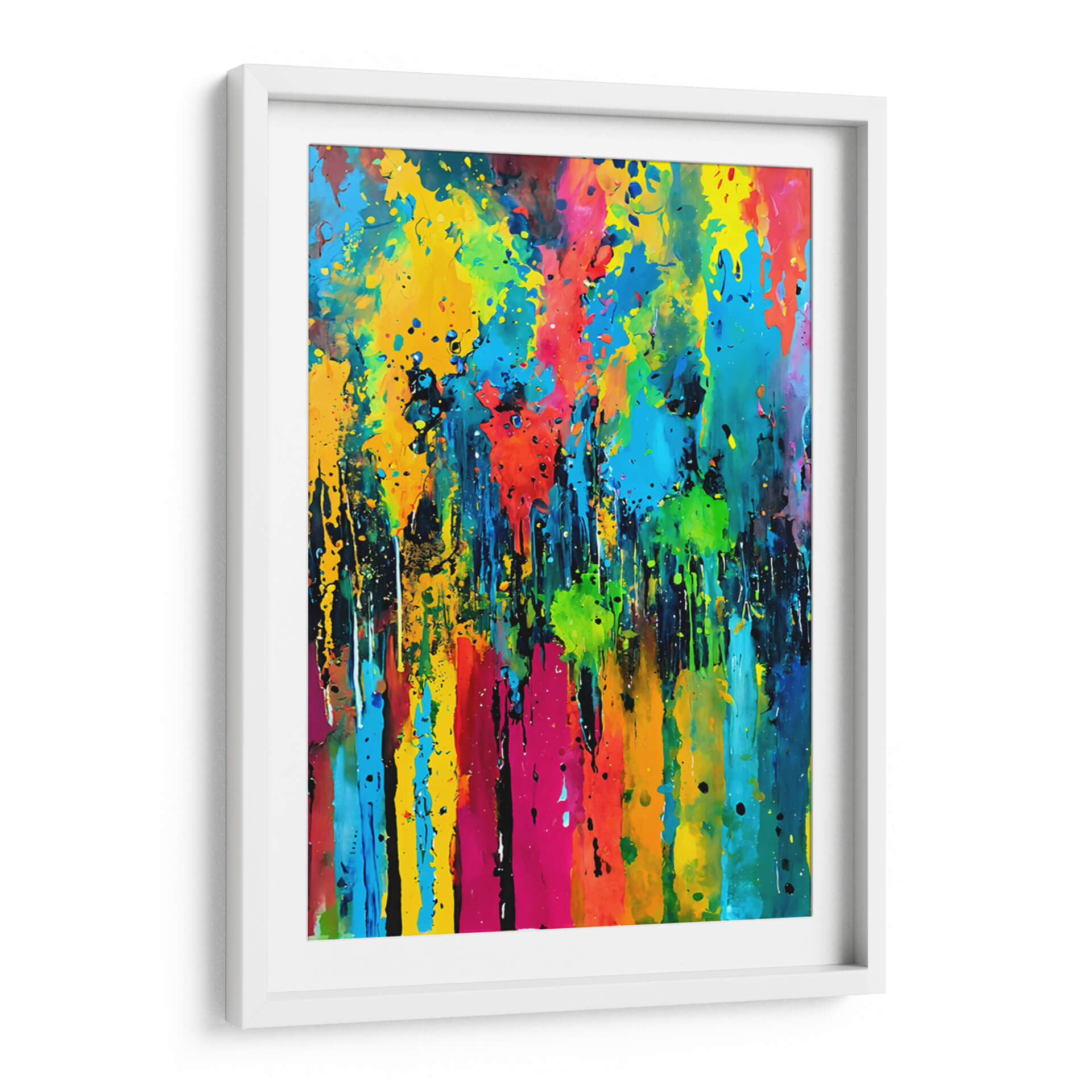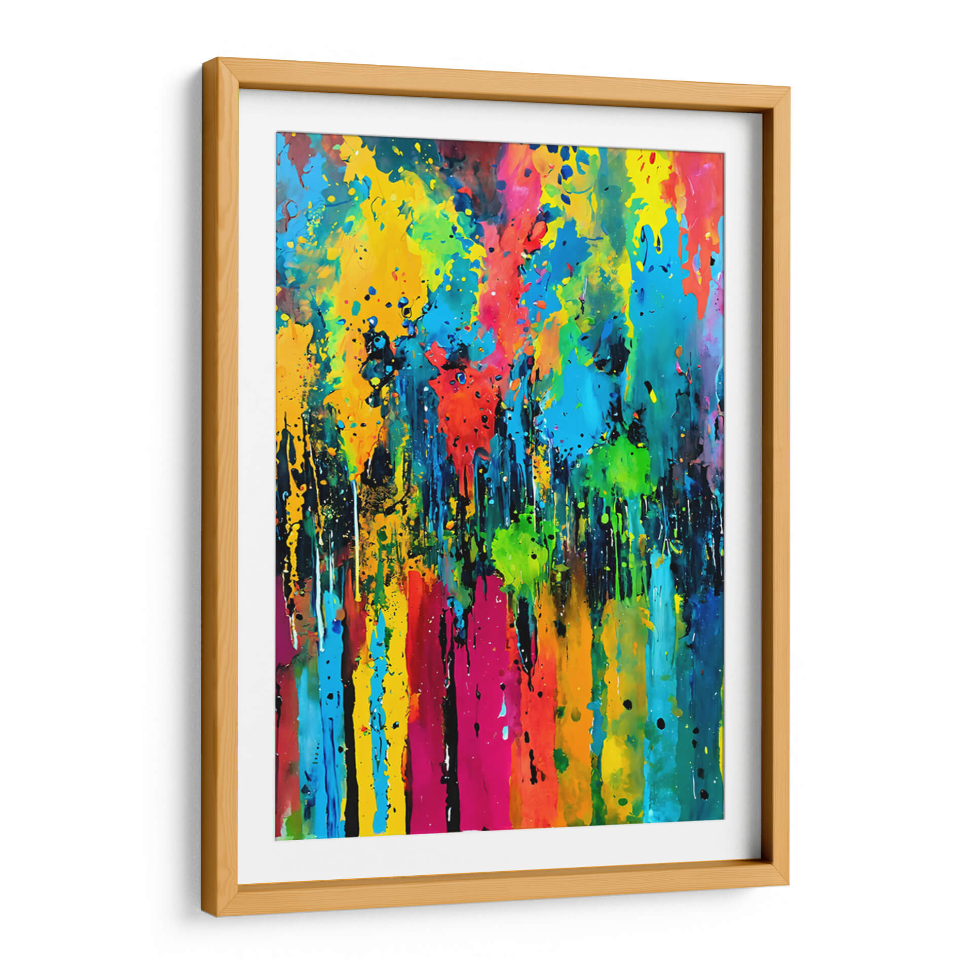 Sumérgete en la vibrante explosión de color y emoción con 'Lluvia Acrílica de Color', una obra maestra abstracta del artista DEA Digital Esoteric Art. Este cuadro decorativo captura la esencia dinámica de las gotas de pintura cayendo, creando un efecto visual cautivador que evoca tanto la energía pura como la serenidad de un aguacero cromático. La paleta de colores, rica y audaz, despliega una sinfonía de amarillos intensos, azules eléctricos, verdes vibrantes y toques de fucsia y naranja, salpicados sobre un fondo oscuro que realza la luminosidad de cada trazo. La composición, con sus líneas verticales fluidas y salpicaduras aleatorias, genera una sensación de movimiento y profundidad, invitando a la contemplación. Ideal para infundir vida y carácter a cualquier espacio, desde una sala de estar moderna hasta un estudio creativo u oficina, este arte abstracto contemporáneo es perfecto para aquellos que buscan una pieza que hable de audacia y vitalidad. Transforma tu pared en un lienzo de expresión pura y deja que la 'Lluvia Acrílica de Color' inspire conversaciones y admiración.