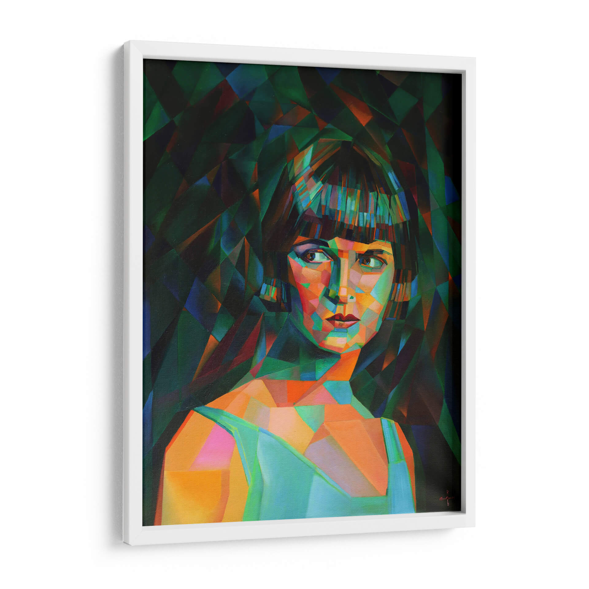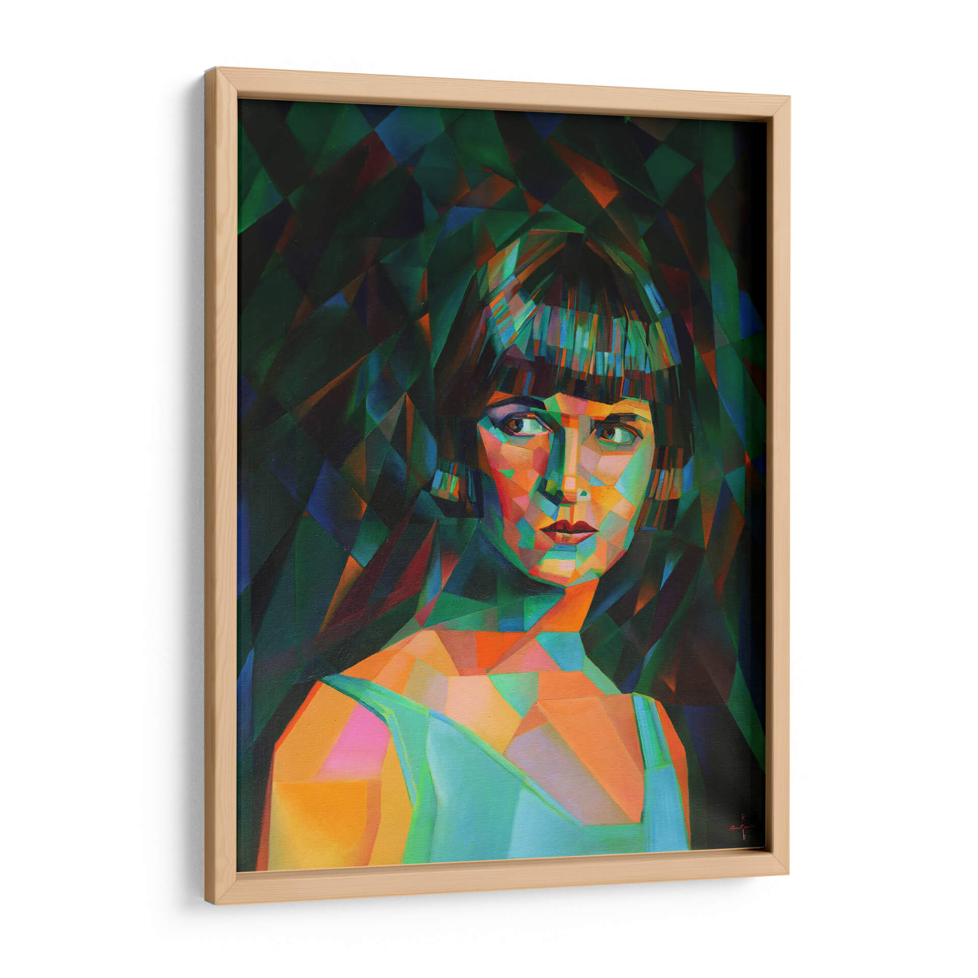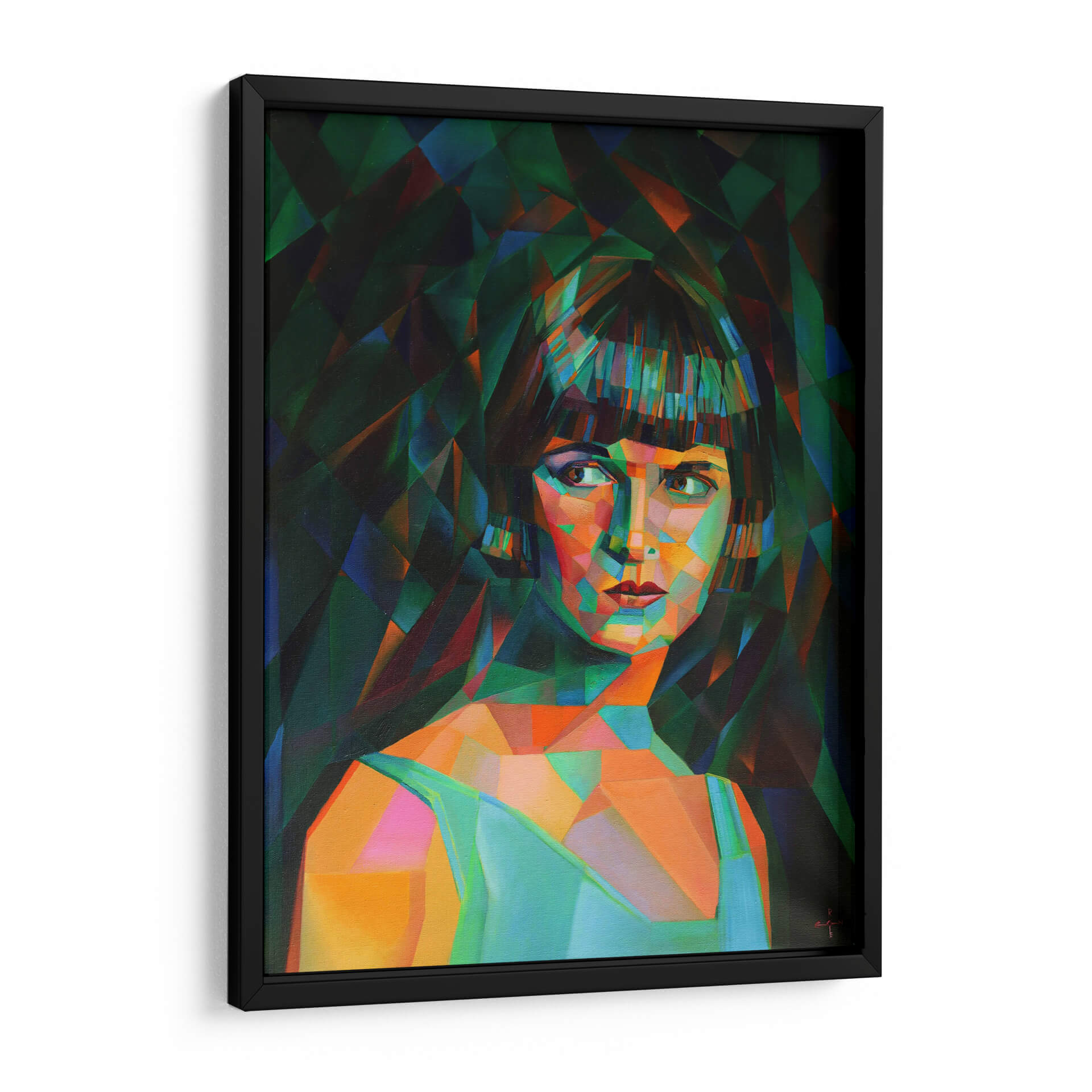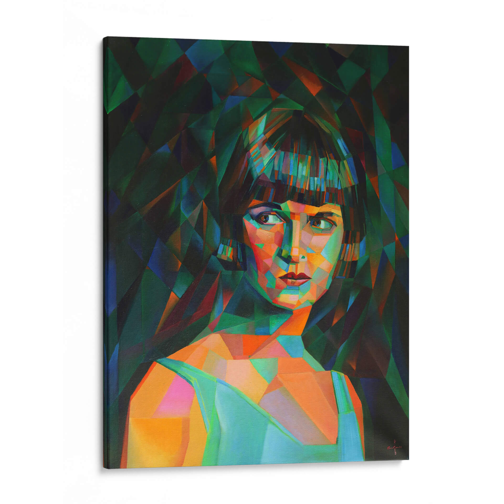 Sumérgete en la cautivadora obra de Corne Akkers, 'Lulú - 26-10-14', un retrato contemporáneo que redefine la percepción a través de una audaz deconstrucción geométrica. Esta pieza vibrante captura la esencia de una figura femenina, descompuesta en facetas de colores intensos y contrastantes. La paleta cromática, dominada por profundos verdes oscuros que contrastan con explosiones de naranja, fucsia, azul y amarillo, crea una atmósfera dinámica y llena de energía, a la vez que misteriosa. El estilo, que fusiona elementos del cubismo con una sensibilidad moderna, invita a una contemplación profunda de la forma y la luz. Cada ángulo y cada polígono parecen vibrar, dando vida a un rostro expresivo que mira con una intensidad enigmática. Este cuadro decorativo es perfecto para aquellos que buscan añadir un toque de arte moderno y audaz a su hogar u oficina. Su composición intrigante y su uso del color lo convierten en un punto focal instantáneo, ideal para salas de estar, comedores o espacios de trabajo que desean proyectar sofisticación y un espíritu vanguardista. 'Lulú - 26-10-14' no es solo una decoración de pared, es una declaración de estilo que celebra la belleza a través de una perspectiva única y fragmentada, asegurando una pieza de conversación que inspira y fascina.