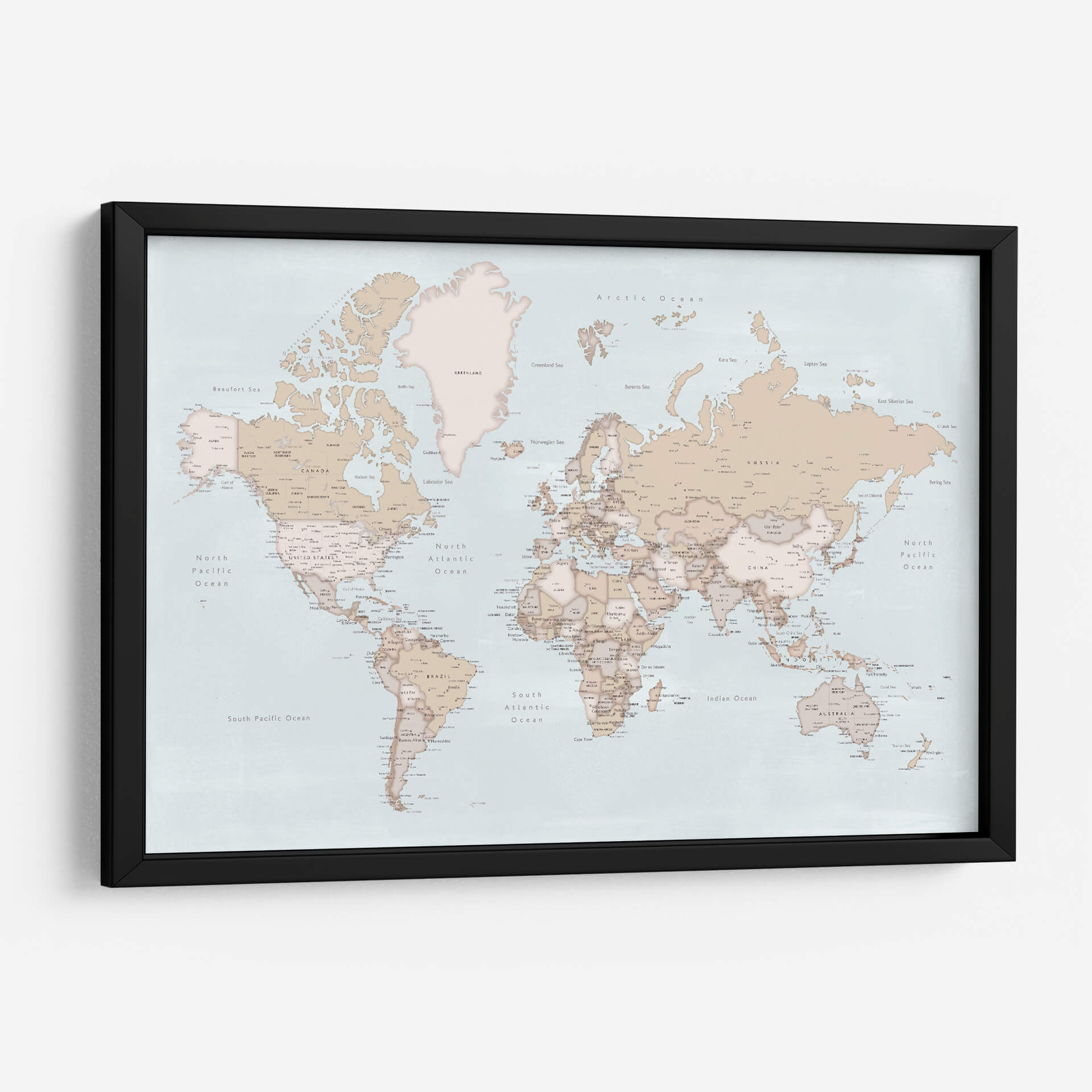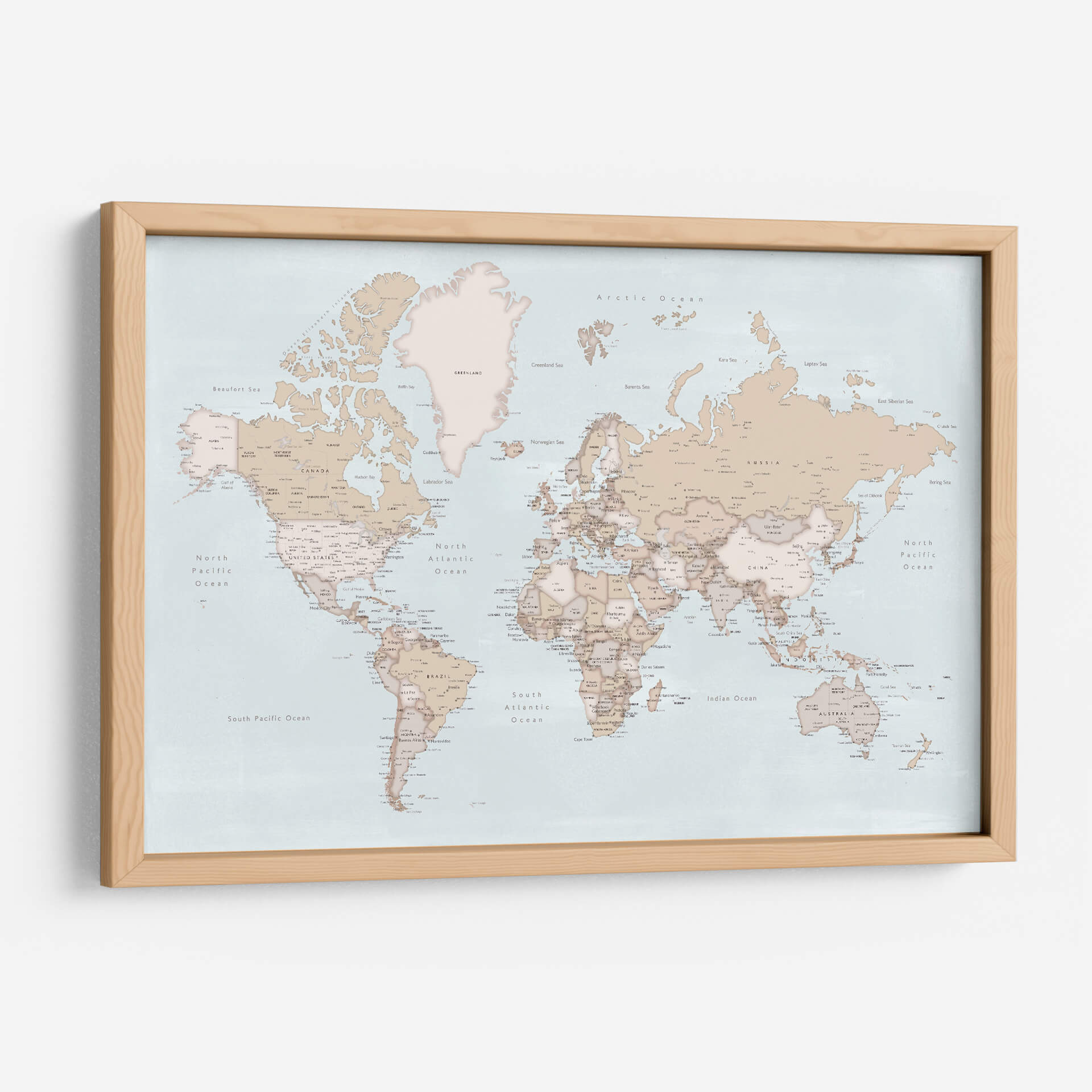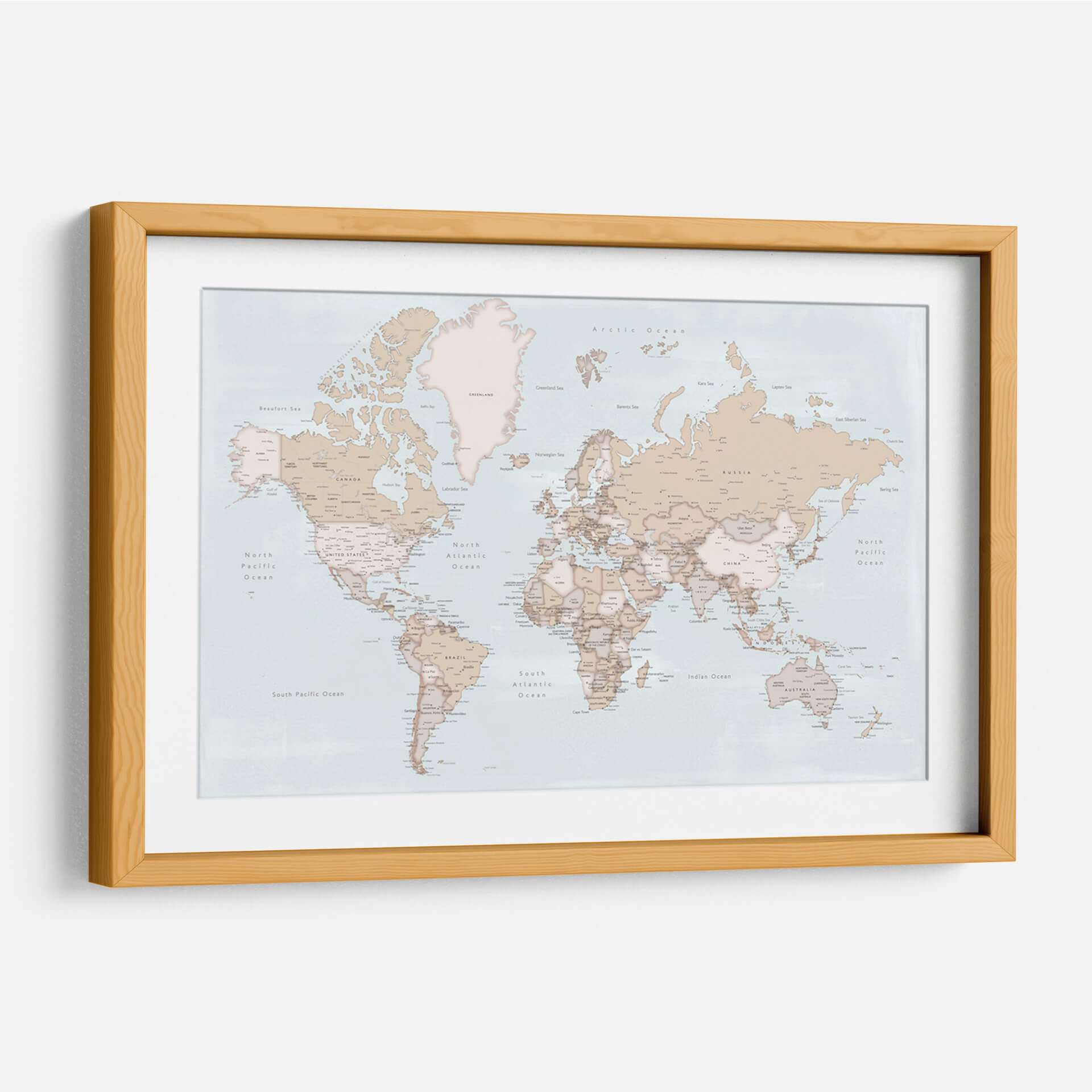 Embárcate en un viaje visual con nuestro exclusivo cuadro decorativo 'Mapa del Mundo Rústico con Ciudades', una obra de arte que captura la esencia del mundo en un estilo contemporáneo y sofisticado. Creada por la talentosa artista Rosana Laiz Blursbyai, esta pieza se distingue por su paleta de colores tierra y suaves, evocando una sensación de calidez y conexión global. El diseño detallado del mapa del mundo, con una tipografía sutil y delicada para las ciudades, invita a la exploración y al descubrimiento, convirtiéndose en un punto focal cautivador para cualquier espacio. Su atmósfera serena y elegante lo hace ideal para decorar salas de estar, estudios, oficinas o cualquier ambiente donde se desee añadir un toque de inspiración y cultura. Este cuadro decorativo no solo embellece tu pared, sino que también fomenta la conversación y la reflexión sobre nuestro planeta. Perfecto para amantes de la geografía, viajeros y aquellos que buscan una decoración de pared única y con carácter, este mapa rústico es una adición atemporal a tu hogar u oficina, fusionando arte contemporáneo con el encanto de la cartografía clásica.