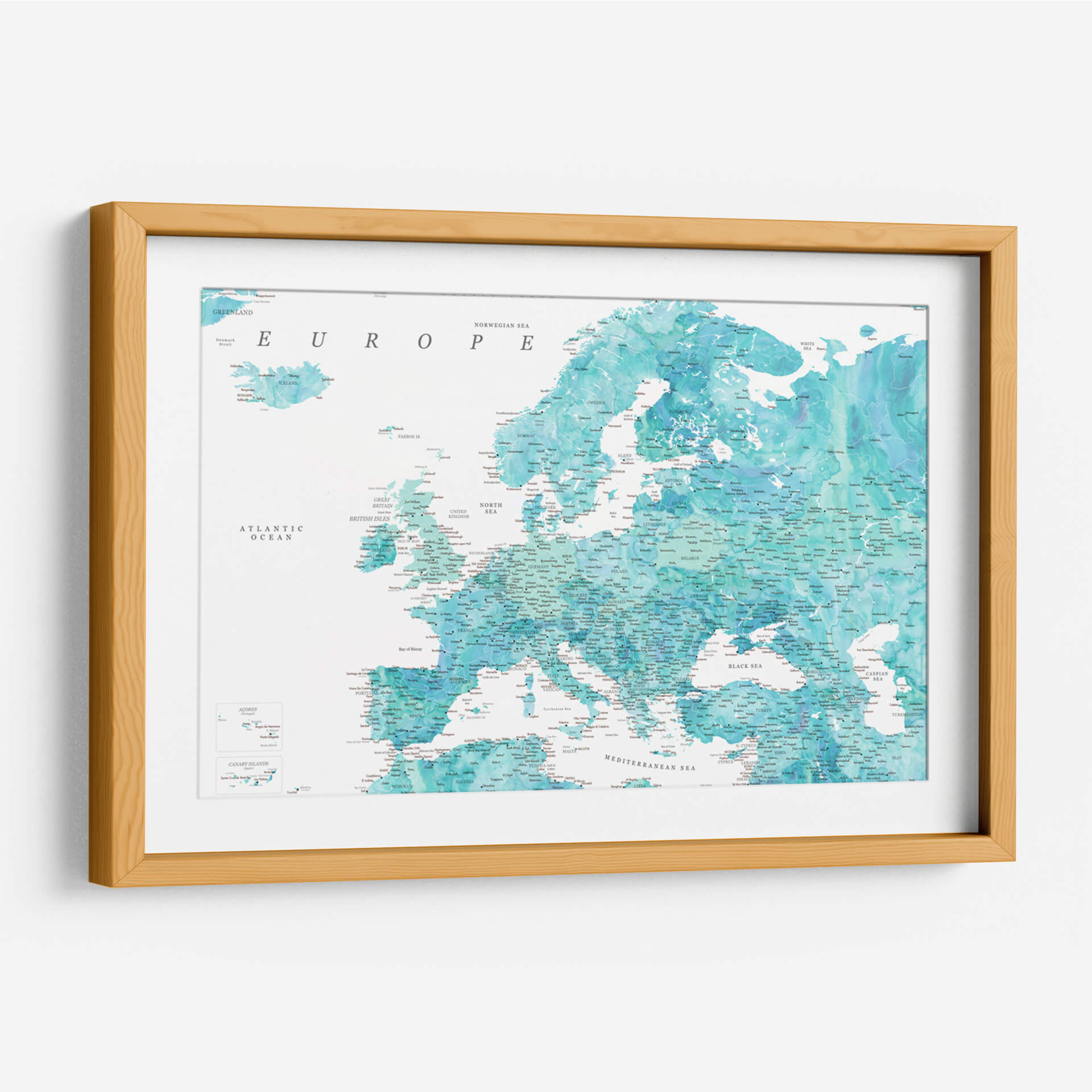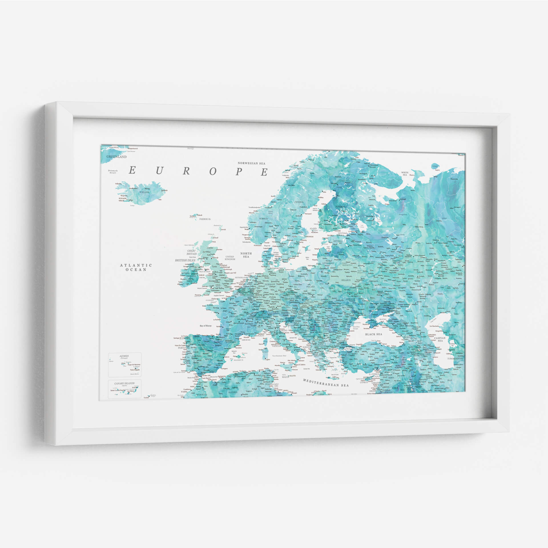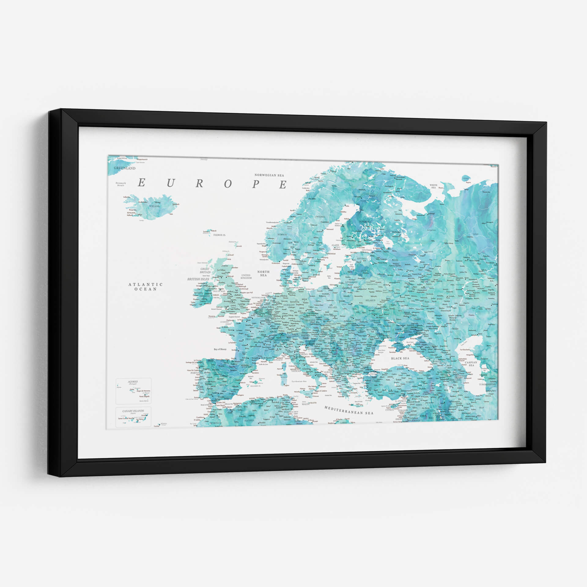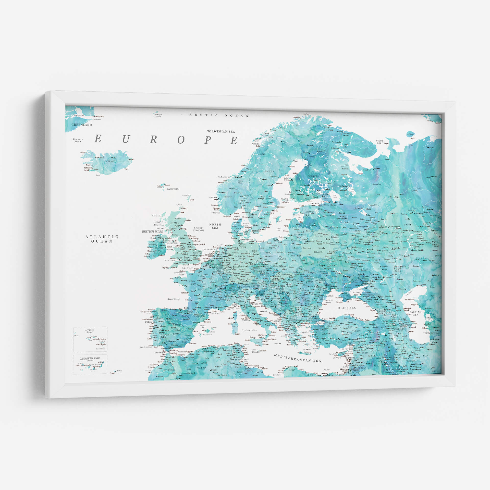 Sumérgete en la belleza cartográfica con este detallado mapa de Europa en tonos aguamarina. La obra de arte de Rosana Laiz Blursbyai captura la esencia del continente europeo a través de una paleta de colores serenos y vibrantes que evocan la profundidad del océano y la claridad del cielo. Cada país, ciudad y accidente geográfico está representado con una precisión exquisita, invitando a la exploración visual y al descubrimiento. Los sutiles degradados y las texturas acuosas añaden una dimensión artística única, transformando un elemento geográfico en una pieza decorativa cautivadora. Este cuadro decorativo es ideal para infundir una sensación de calma y conocimiento en cualquier espacio, ya sea tu hogar u oficina. Su estilo contemporáneo y su temática universal lo convierten en una elección perfecta para quienes aprecian tanto la geografía como el arte. Añade un toque de elegancia y sofisticación a tus paredes, y deja que este mapa detallado de Europa sea el punto de partida para conversaciones inspiradoras y una fuente continua de admiración. Transforma tu entorno con esta representación artística del viejo continente, perfecta para amantes de los viajes y la decoración de interiores.
