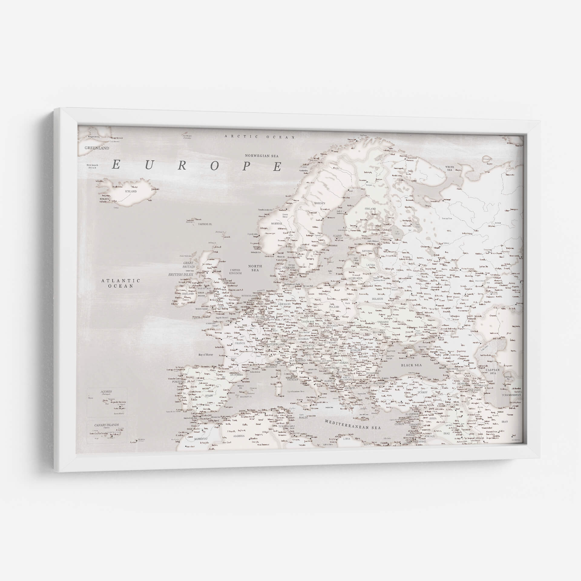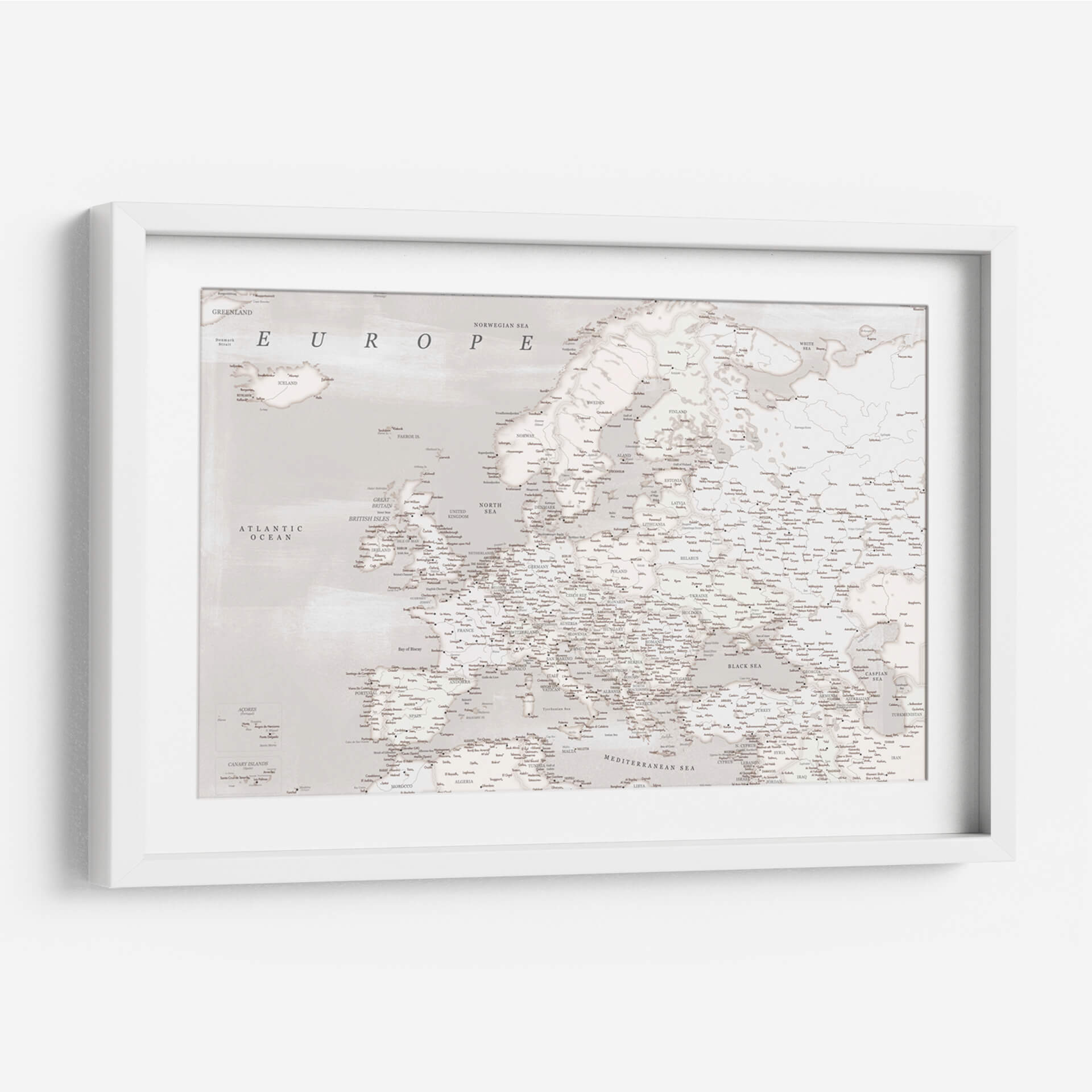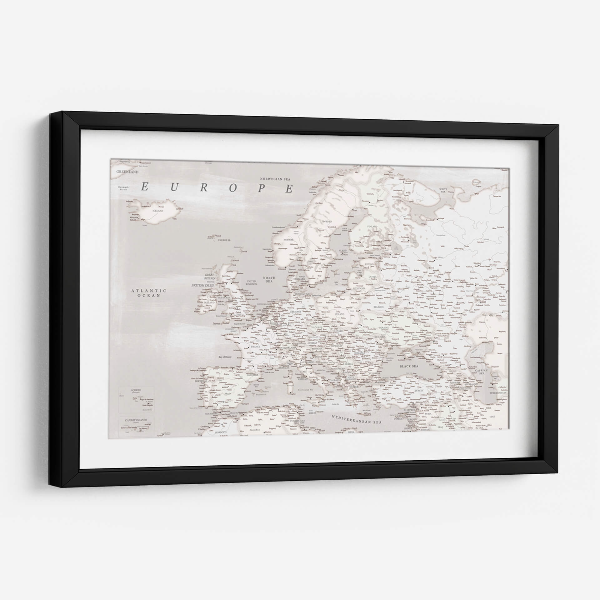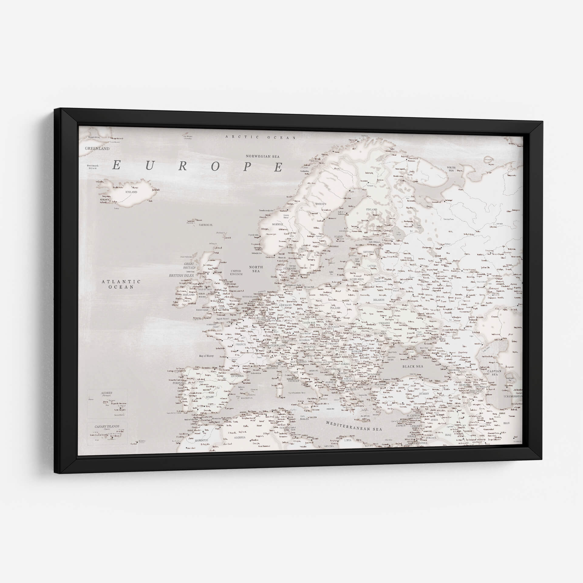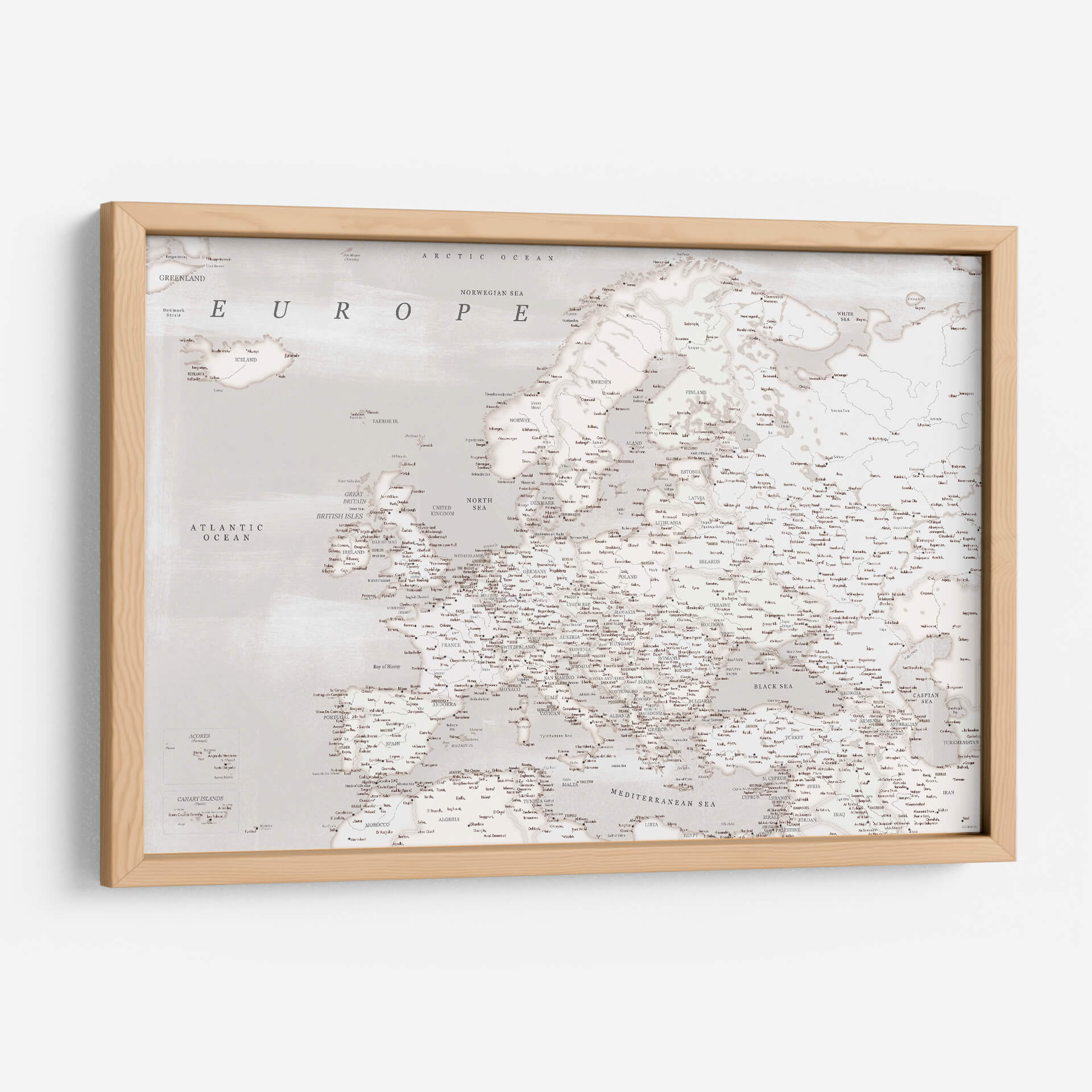 Transforma tu espacio con este detallado mapa decorativo de Europa, una obra de arte que combina la precisión geográfica con una estética contemporánea. Cada país, ciudad y detalle geográfico se presenta con una claridad excepcional, invitando a la exploración visual y al descubrimiento. Los sutiles tonos neutros y el diseño limpio hacen de este cuadro una pieza versátil, perfecta para añadir un toque de sofisticación a cualquier hogar u oficina. Su diseño evoca un sentido de aventura y conocimiento, ideal para aquellos apasionados por los viajes, la historia o simplemente por la belleza de la cartografía. Imagina este mapa como un punto focal inspirador en tu sala de estar, estudio o incluso en un dormitorio, añadiendo profundidad y carácter. La obra de Rosana Laiz Blursbyai "Mapa detallado de Europa Lysander" no es solo una representación de un continente, sino una invitación a soñar con destinos y planificar futuras exploraciones, convirtiéndose en una pieza decorativa funcional y estéticamente cautivadora. Su estilo discreto permite integrarla en diversas decoraciones, desde la más moderna hasta la más clásica, aportando un toque de elegancia atemporal. Es la elección perfecta para quien busca arte que cuente historias y conecte a las personas con el mundo.