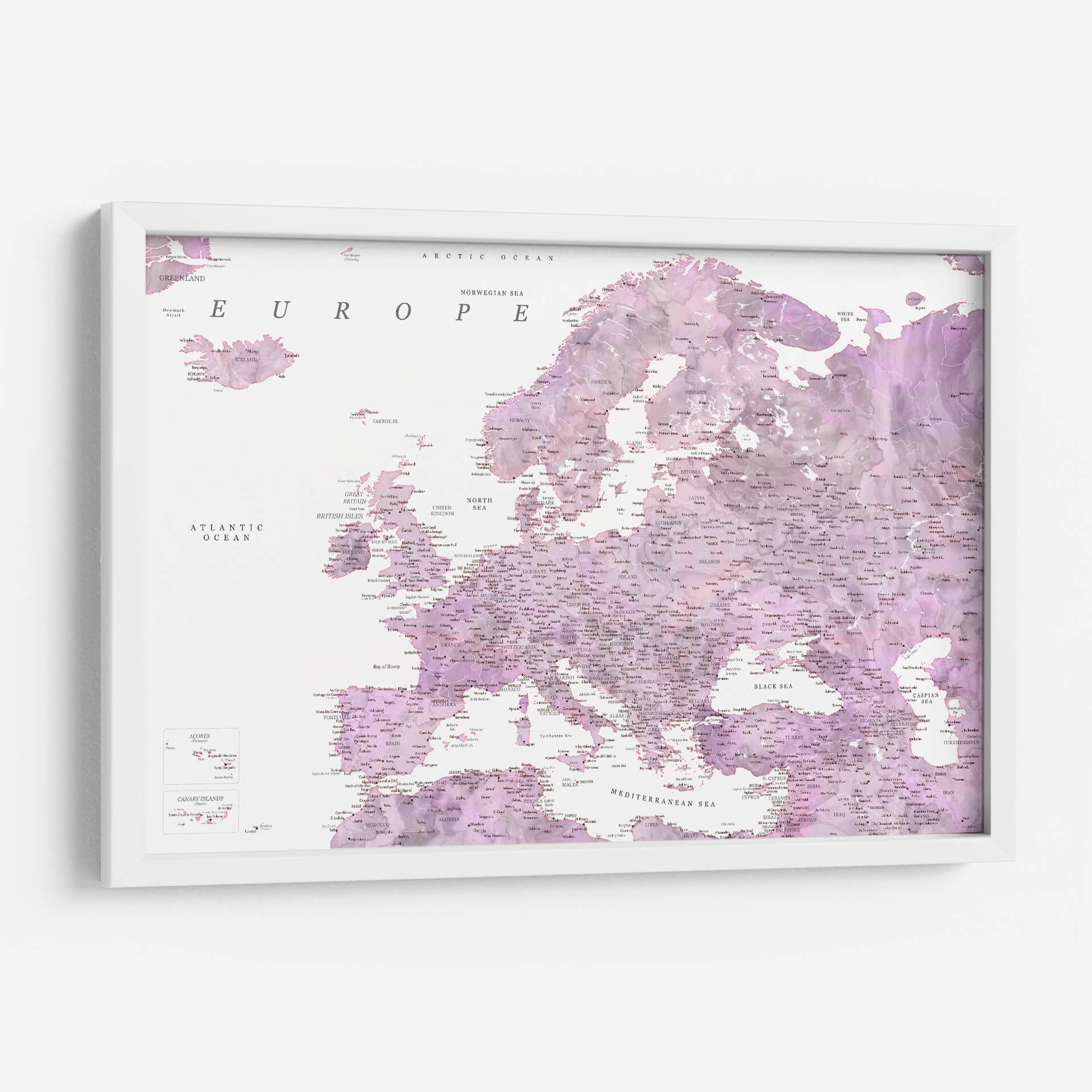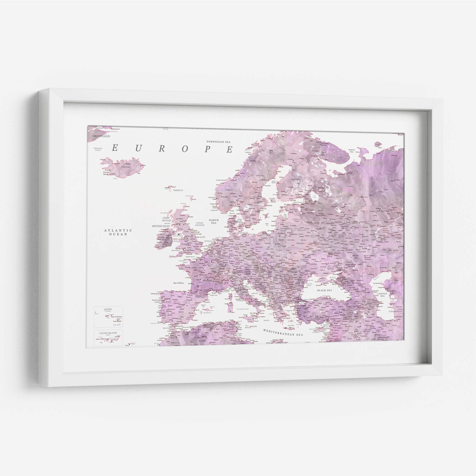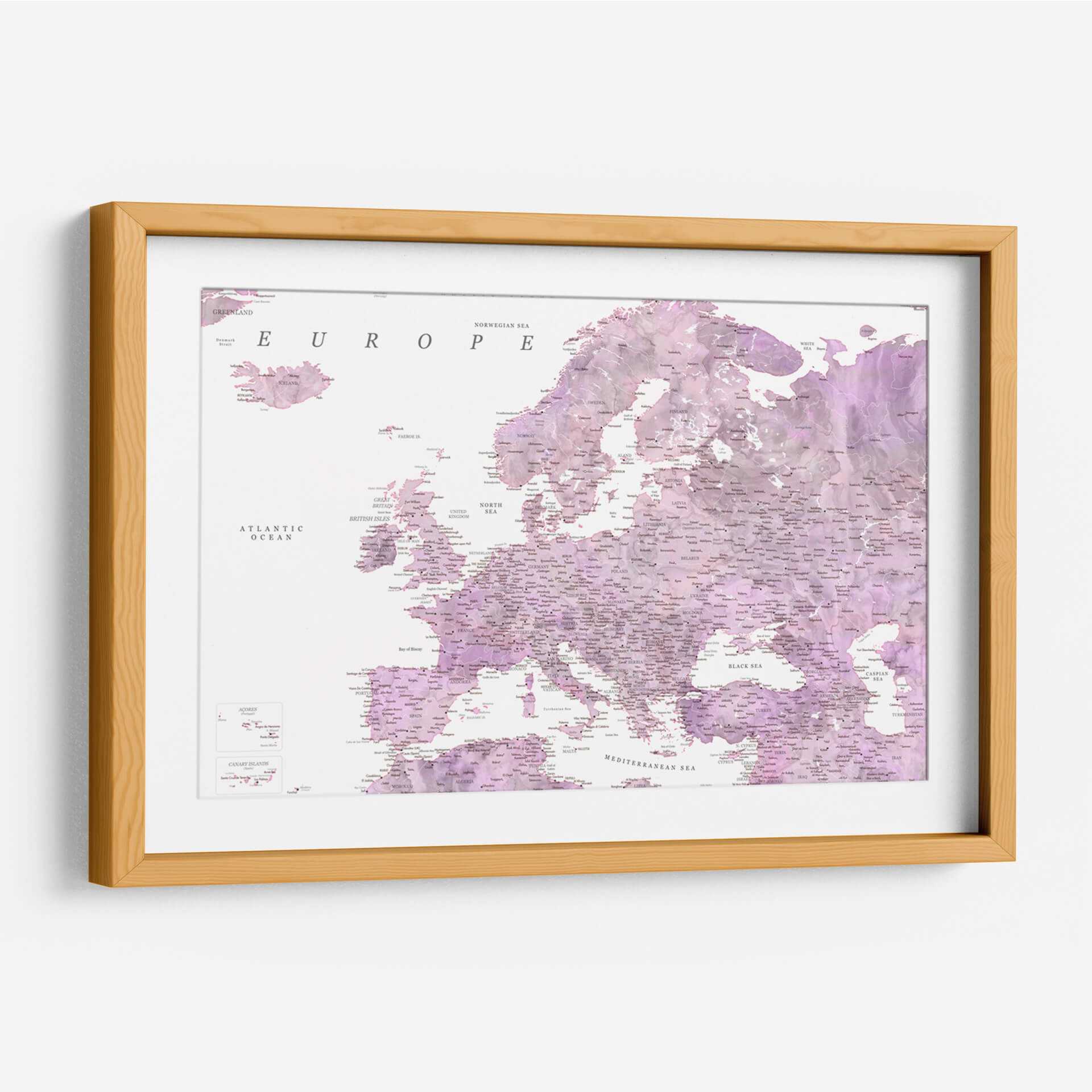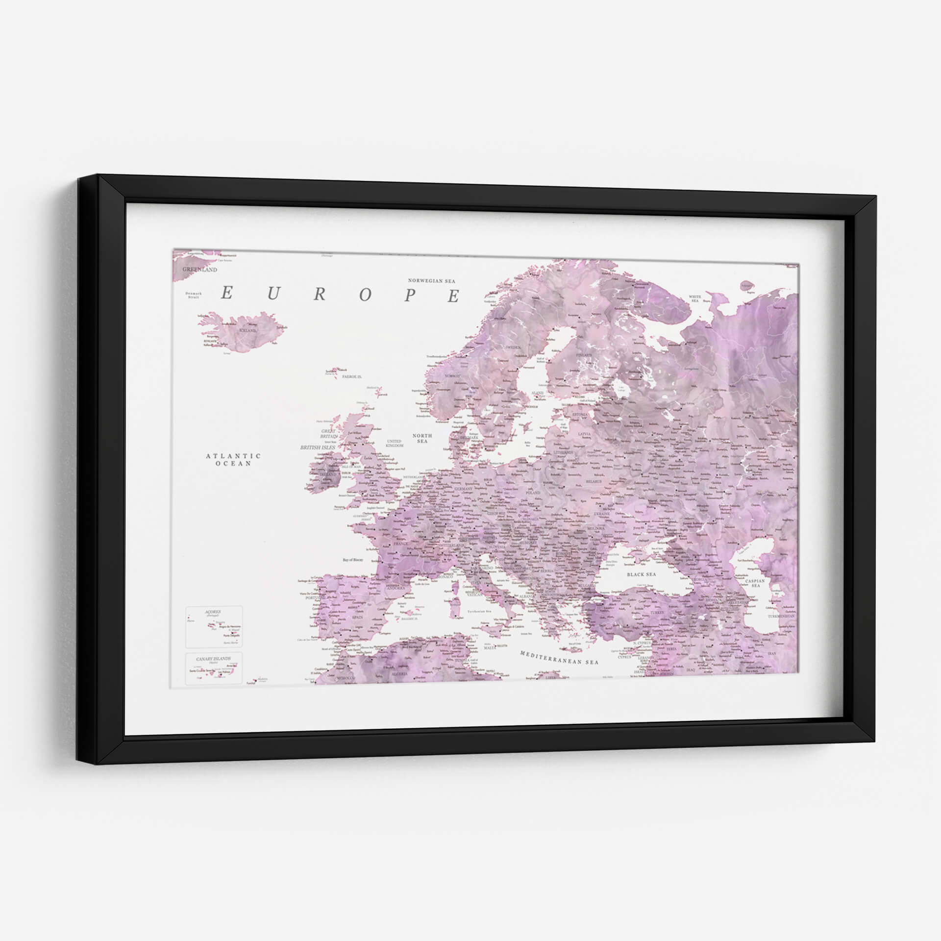 Transforma tu espacio con este exquisito cuadro decorativo 'Mapa detallado morado de Europa', una obra maestra de Rosana Laiz Blursbyai. Esta pieza captura la esencia del continente europeo con una paleta de colores morados y lavandas que evocan calma y sofisticación. Cada detalle geográfico está representado con una delicadeza que invita a la contemplación, desde las costas bañadas por el Atlántico y el Mediterráneo hasta las profundidades de Europa del Este. El estilo contemporáneo y ligeramente abstracto de este mapa lo convierte en una adición versátil para cualquier decoración, ya sea en un hogar moderno, una oficina elegante o un espacio de estudio. Los tonos suaves y envolventes del morado no solo añaden un toque de color distintivo, sino que también crean una atmósfera de serenidad y profundidad, perfecta para inspirar viajes y descubrimientos. Este cuadro decorativo es ideal para quienes buscan una pieza que combine funcionalidad informativa con un atractivo estético innegable. Añade un toque de cultura y geografía a tus paredes con este mapa de Europa único, diseñado para ser un punto focal que estimule la conversación y el interés.