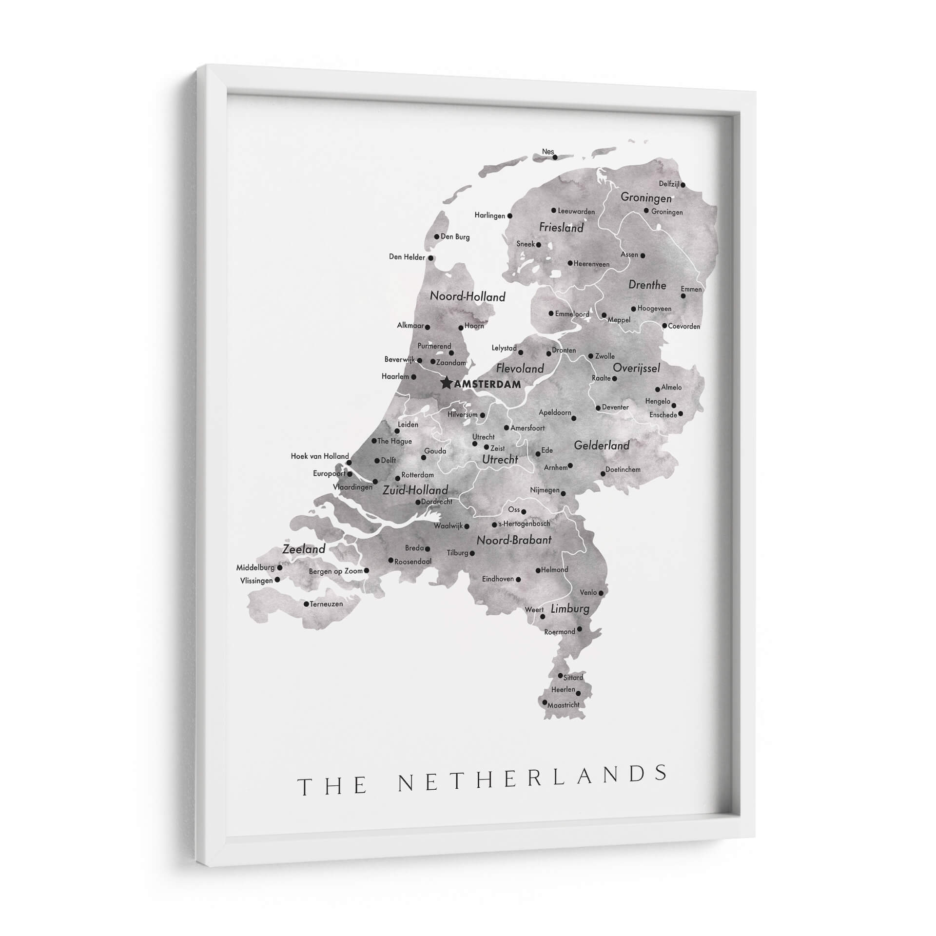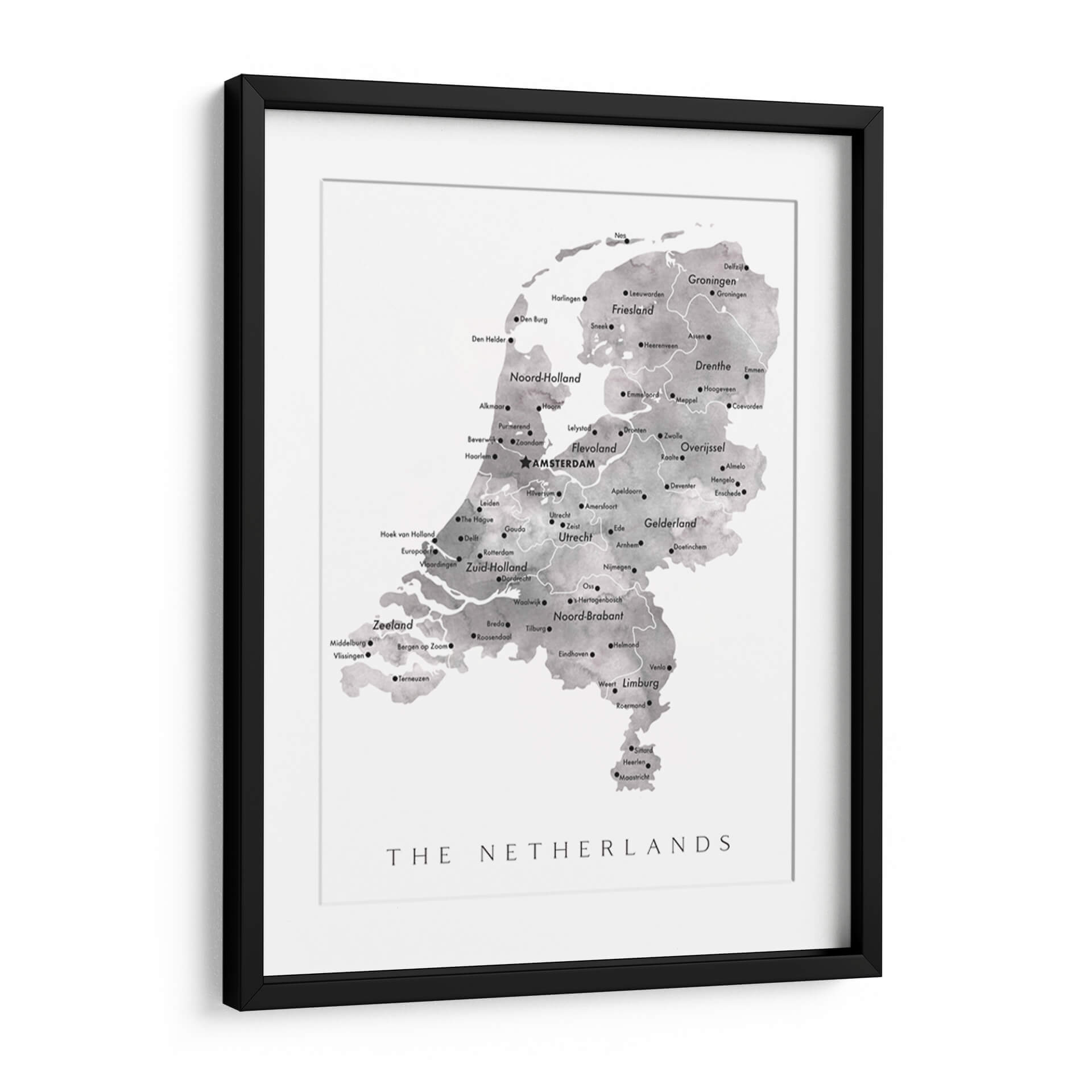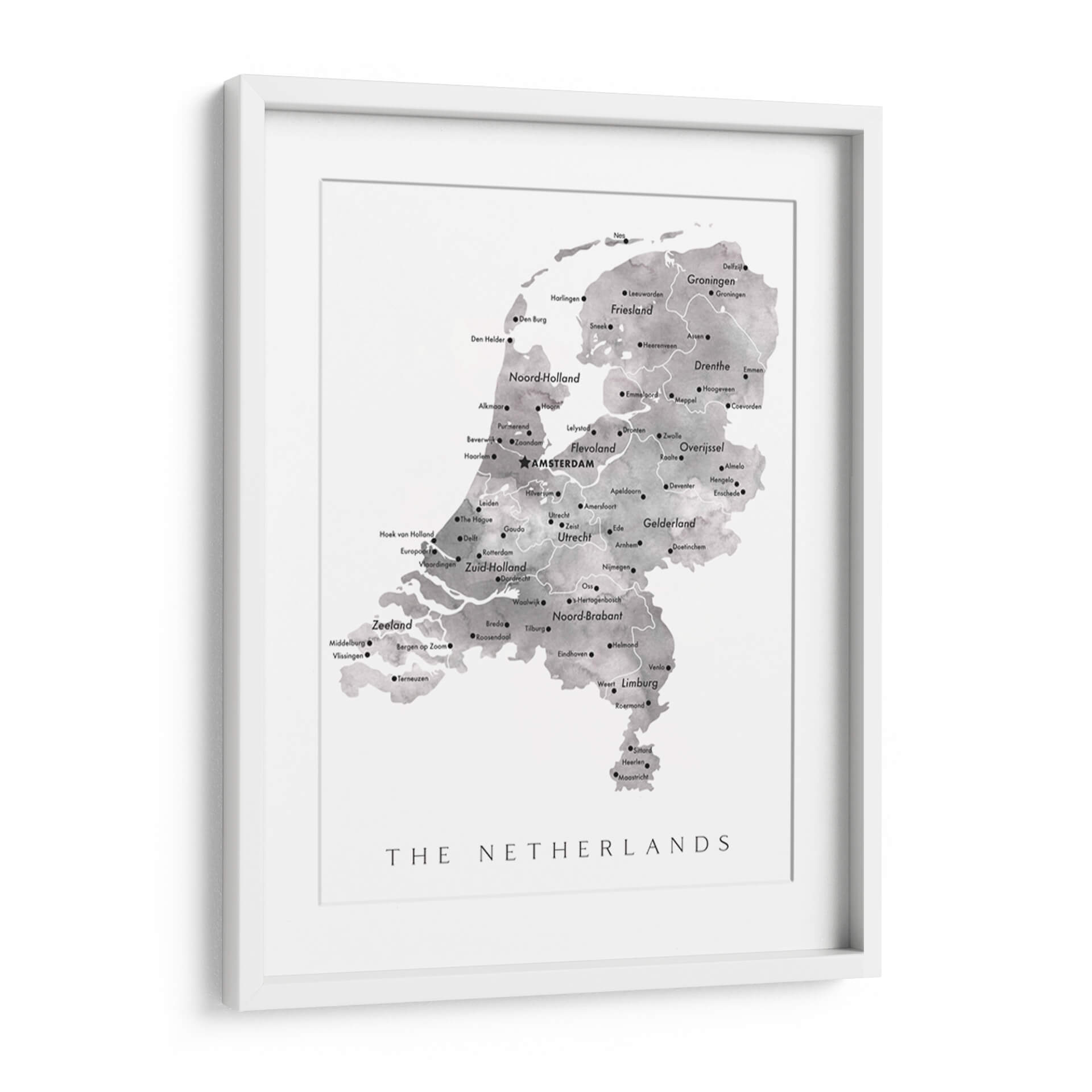Mapa gris de los Países Bajos (Holanda) - The Netherlands - Rosana Laiz Blursbyai
