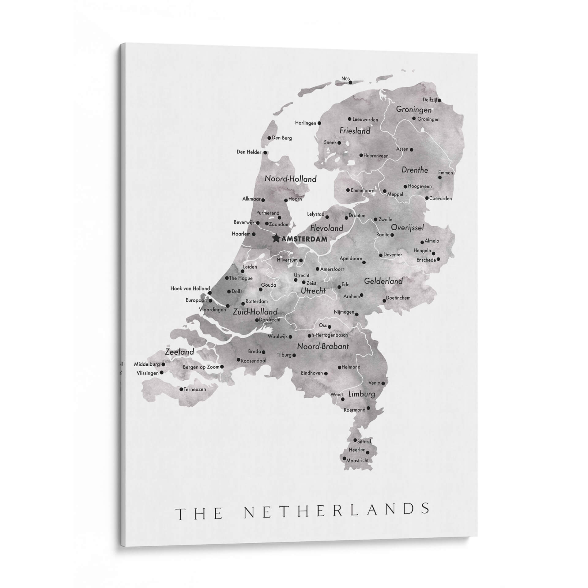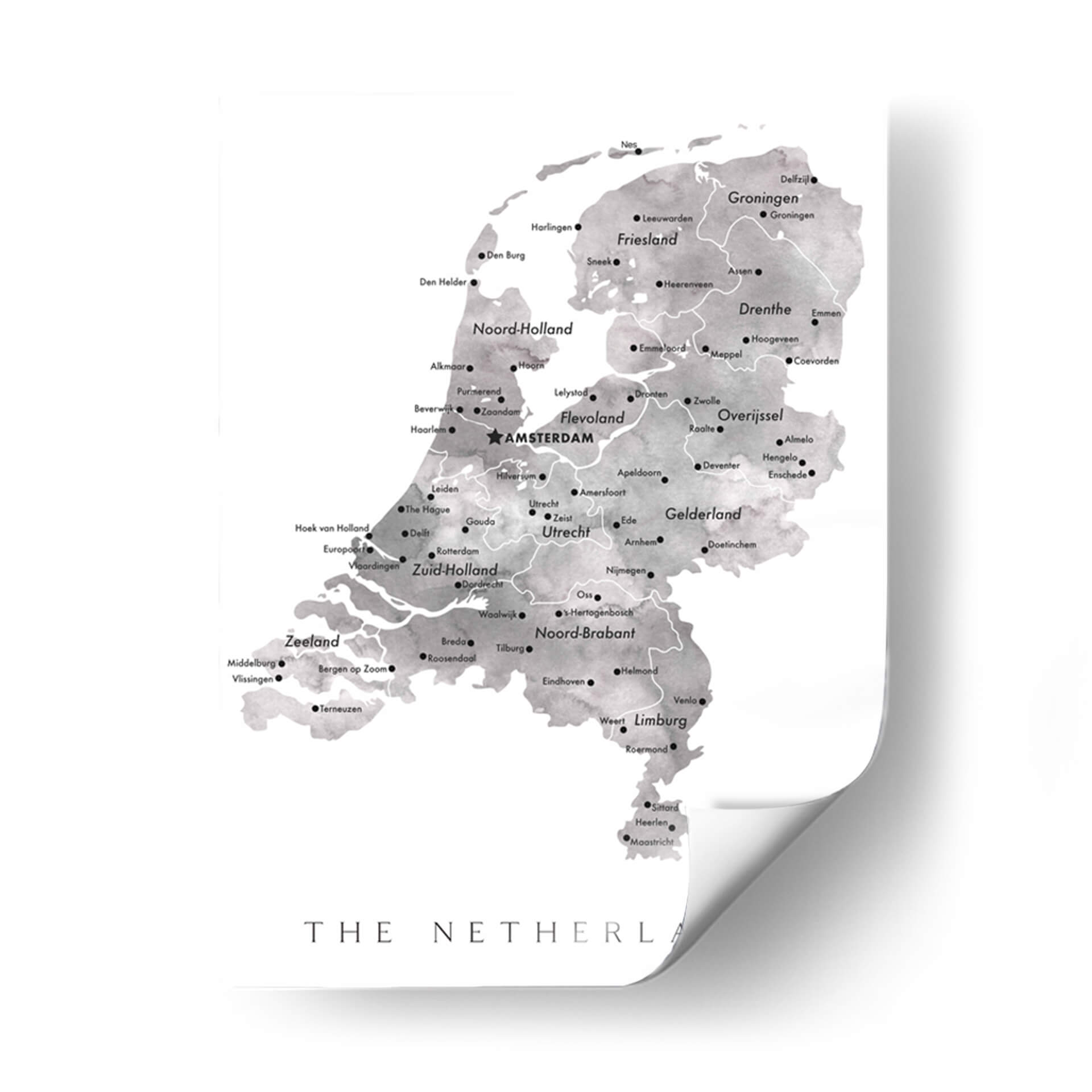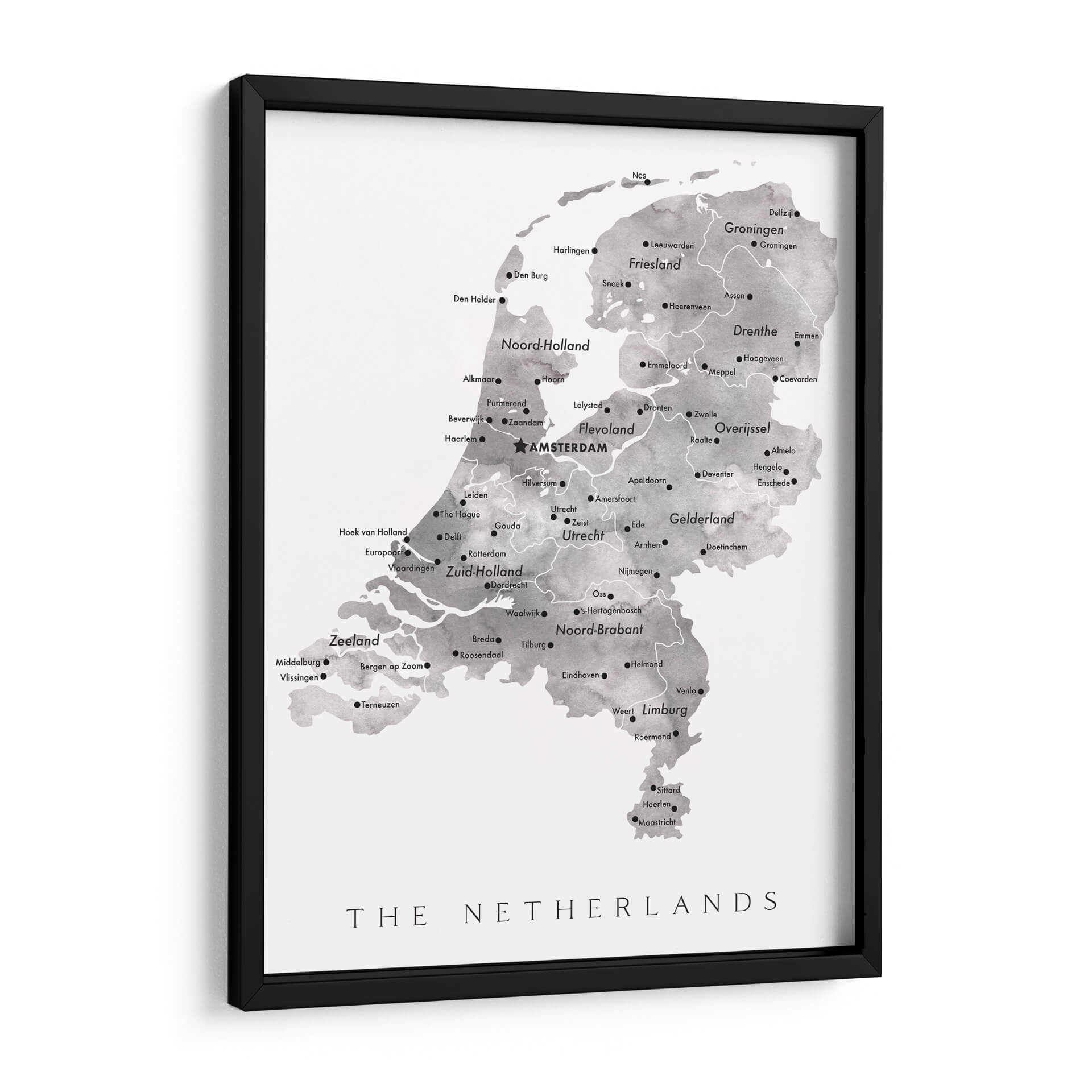 Mapa gris de los Países Bajos (Holanda) - The Netherlands - Rosana Laiz Blursbyai