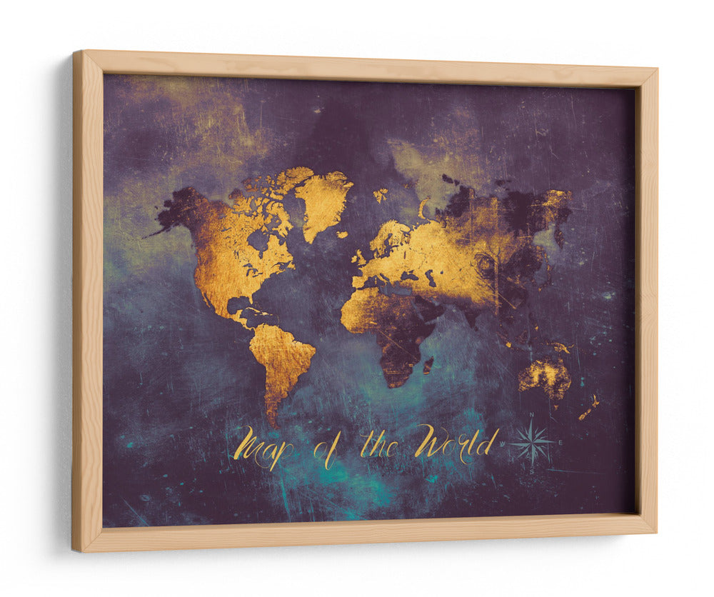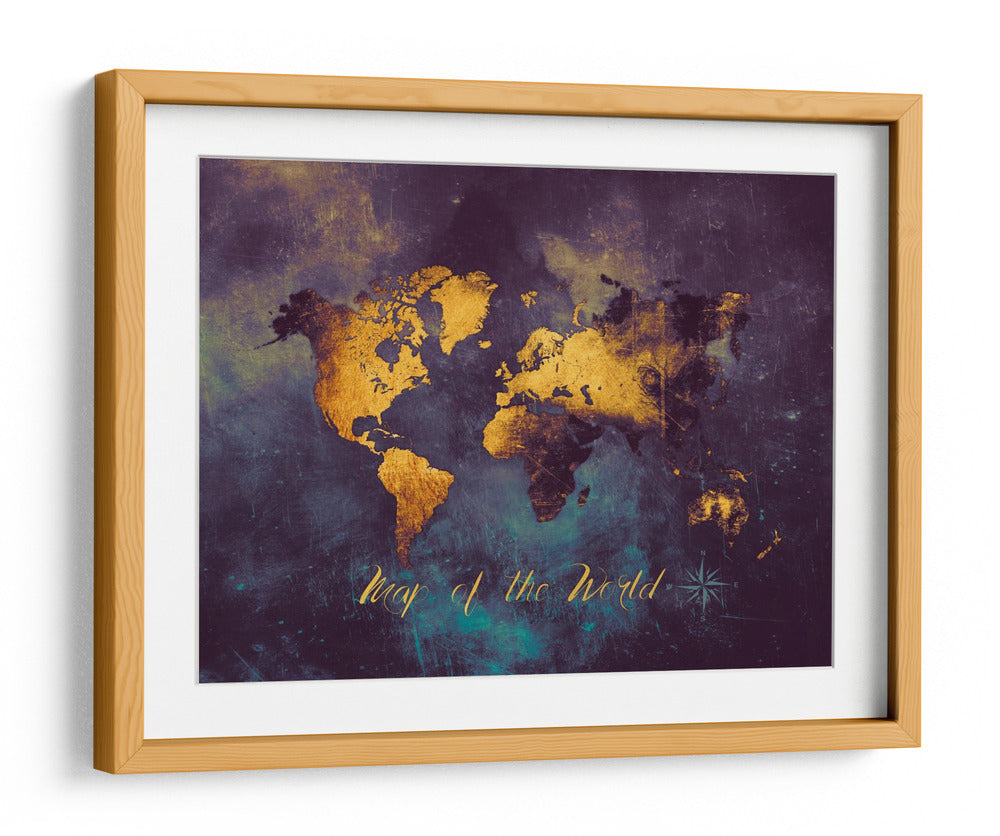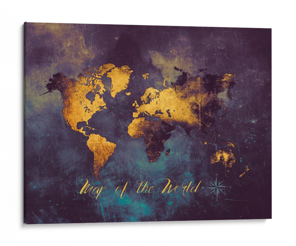 Embárcate en un viaje visual con nuestro exclusivo cuadro decorativo 'Mapa mundial 14', una obra maestra del arte contemporáneo de Justyna Jaszke. Esta pieza cautiva con su representación estilizada del planeta Tierra, donde los continentes emergen en un deslumbrante tono dorado, contrastando dramáticamente con un fondo profundo y texturizado de tonos índigo y turquesa. La estética desgastada y ligeramente grunge evoca una sensación de historia y descubrimiento, como un antiguo mapa redescubierto. La sutileza de la caligrafía que acompaña a la obra, junto a una brújula decorativa, añade un toque de elegancia y aventura. Este cuadro decorativo es perfecto para infundir carácter y un sentido de perspectiva global a cualquier espacio, ya sea una sala de estar moderna, un despacho profesional o una acogedora biblioteca. Su diseño versátil lo convierte en un punto focal intrigante que estimula la conversación y la imaginación, invitando a soñar con viajes y exploración. Ideal para amantes de la geografía, la historia y el arte con un toque distintivo. Añade un aire de sofisticación y aventura a tu hogar u oficina con este impresionante mapa mundial artístico.