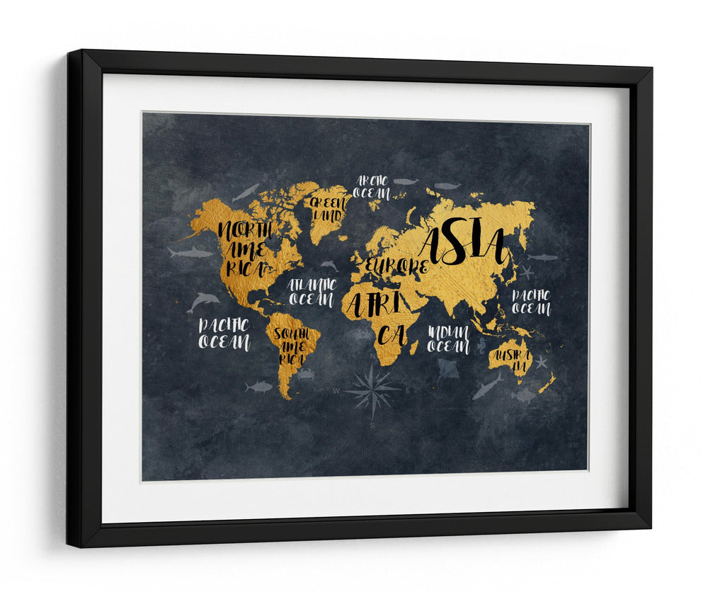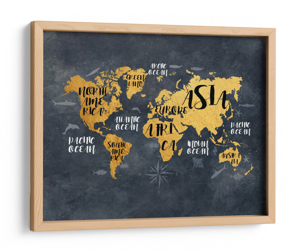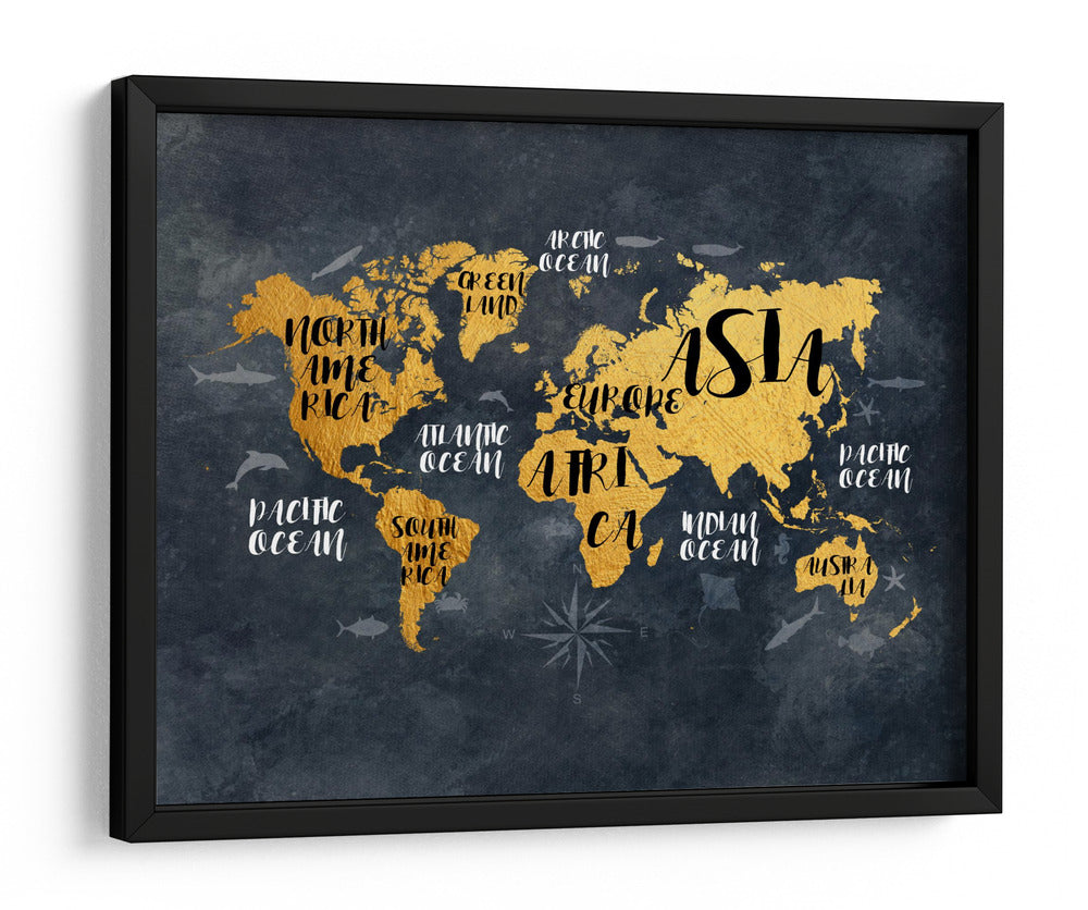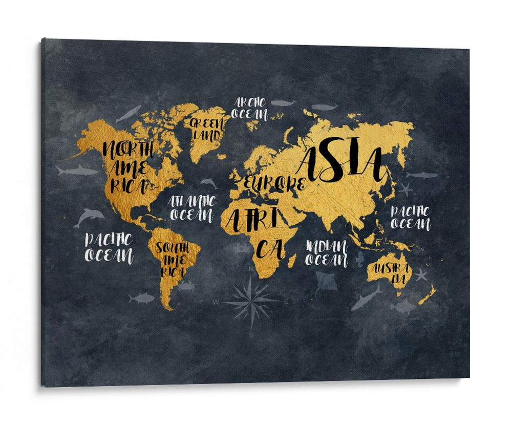 Embárcate en un viaje visual alrededor del mundo con este cautivador cuadro decorativo, una representación artística del globo terráqueo que combina elegancia y conocimiento geográfico. La obra presenta un mapa mundial estilizado en un vibrante tono dorado, contrastando audazmente sobre un fondo texturizado de carbón oscuro, evocando la profundidad y el misterio del universo. Detalle a detalle, los continentes emergen con una calidez metálica, mientras que los océanos se definen con sutiles contornos y nombres escritos en una tipografía moderna y fluida. Pequeñas siluetas de vida marina, como delfines y tiburones, añaden un toque de dinamismo y recuerdan la vasta extensión de nuestros mares. Este mapa decorativo no es solo una pieza de arte de pared, sino una invitación a la exploración y un símbolo de conexión global. Su diseño contemporáneo y la sofisticada paleta de colores lo convierten en un elemento decorativo versátil, perfecto para inspirar conversaciones y añadir un toque de aventura a cualquier espacio, desde una oficina ejecutiva hasta una sala de estar moderna o un dormitorio temático. Es una elección ideal para los amantes de los viajes, los geógrafos aficionados o cualquiera que busque una pieza de arte con carácter y significado.