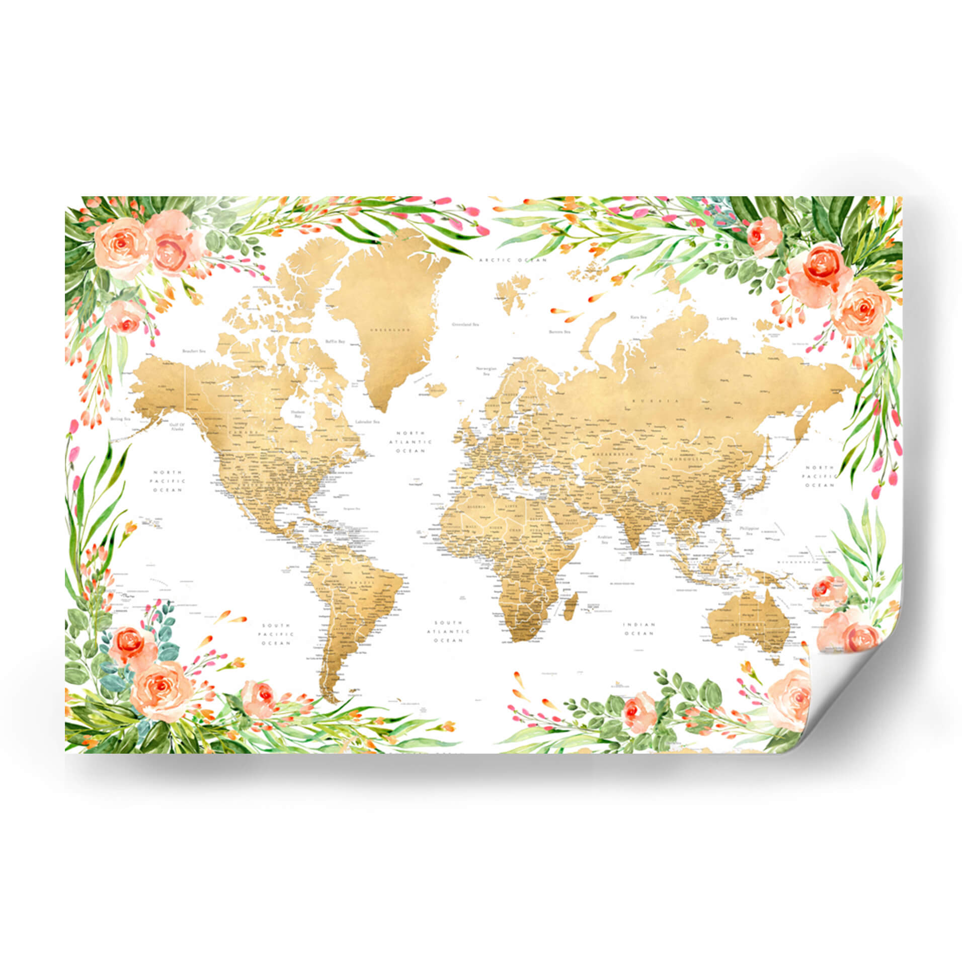 Mapa mundial bohemio floral con ciudades Blythe - Rosana Laiz Blursbyai