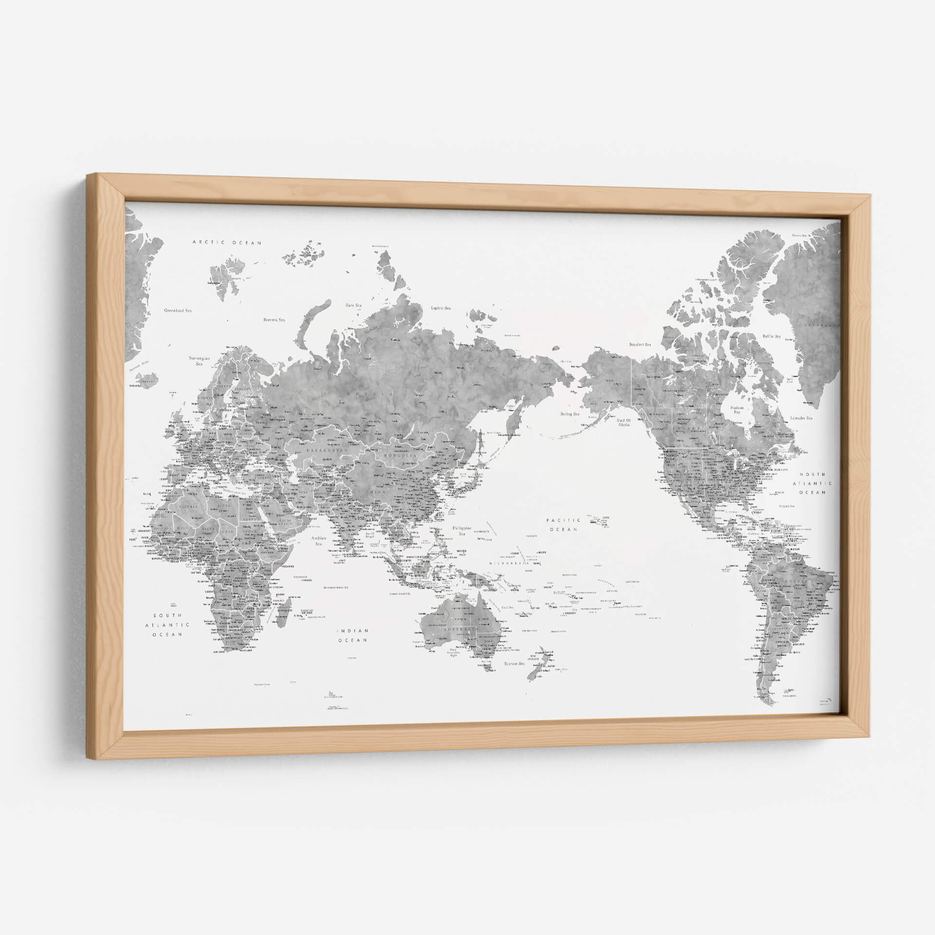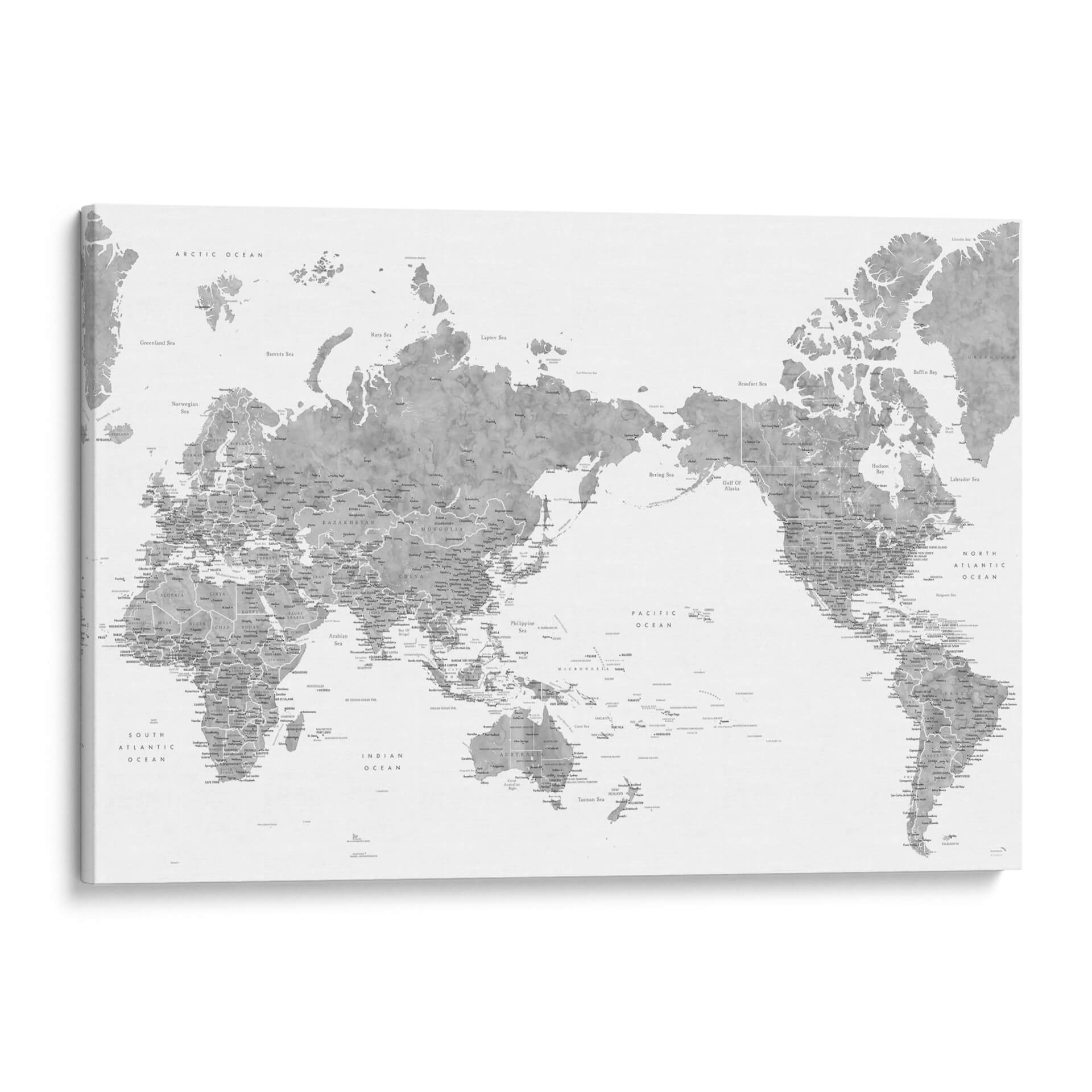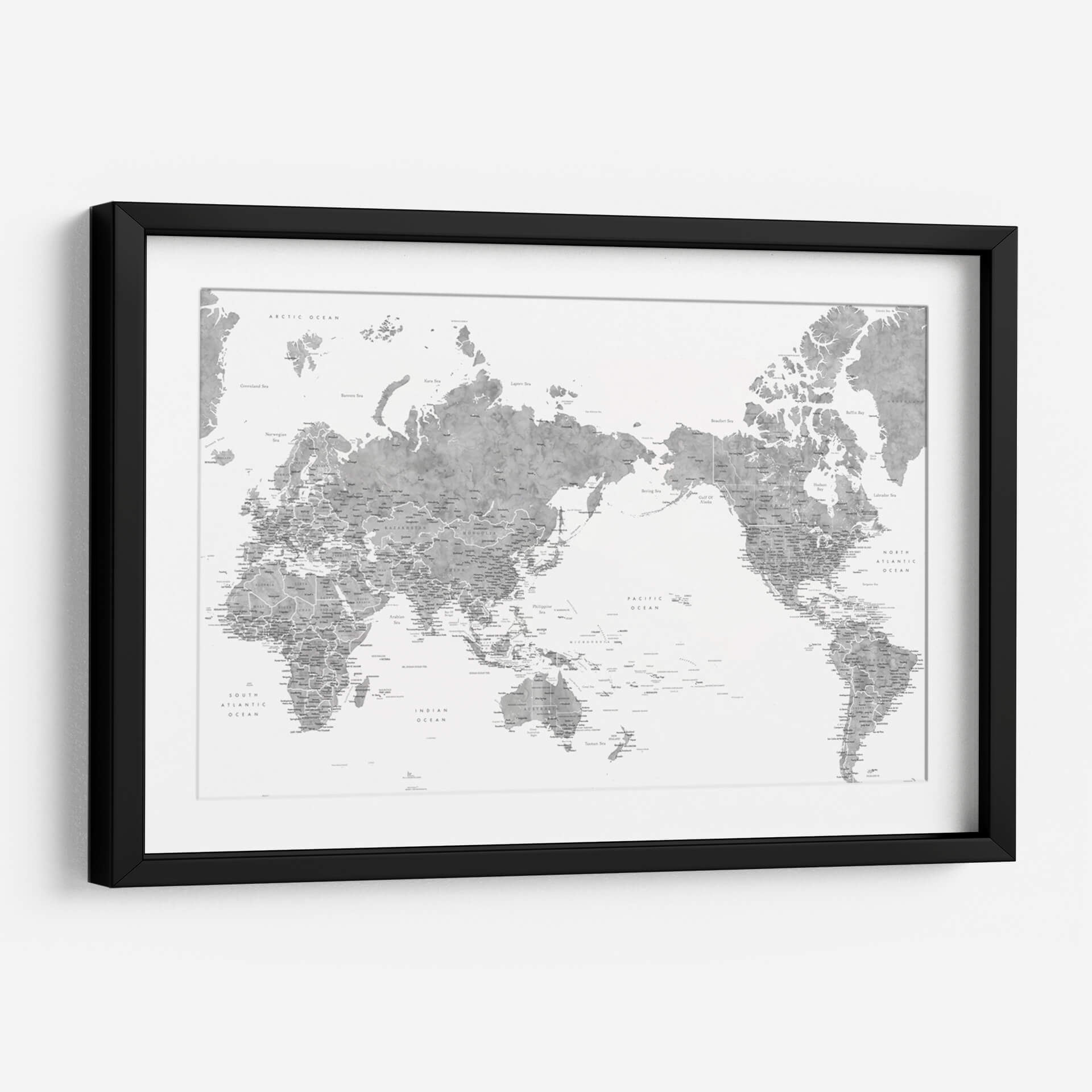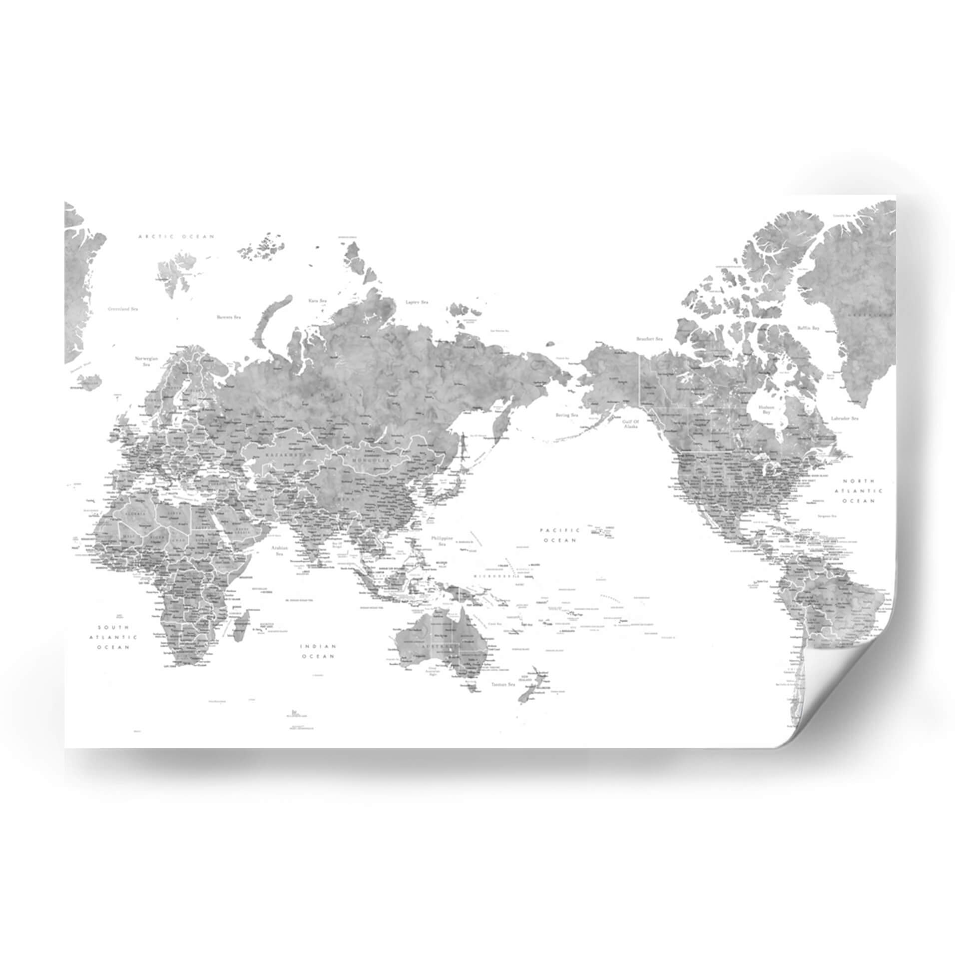 Mapa mundial centrado en el Pacífico en acuarela gris - Rosana Laiz Blursbyai