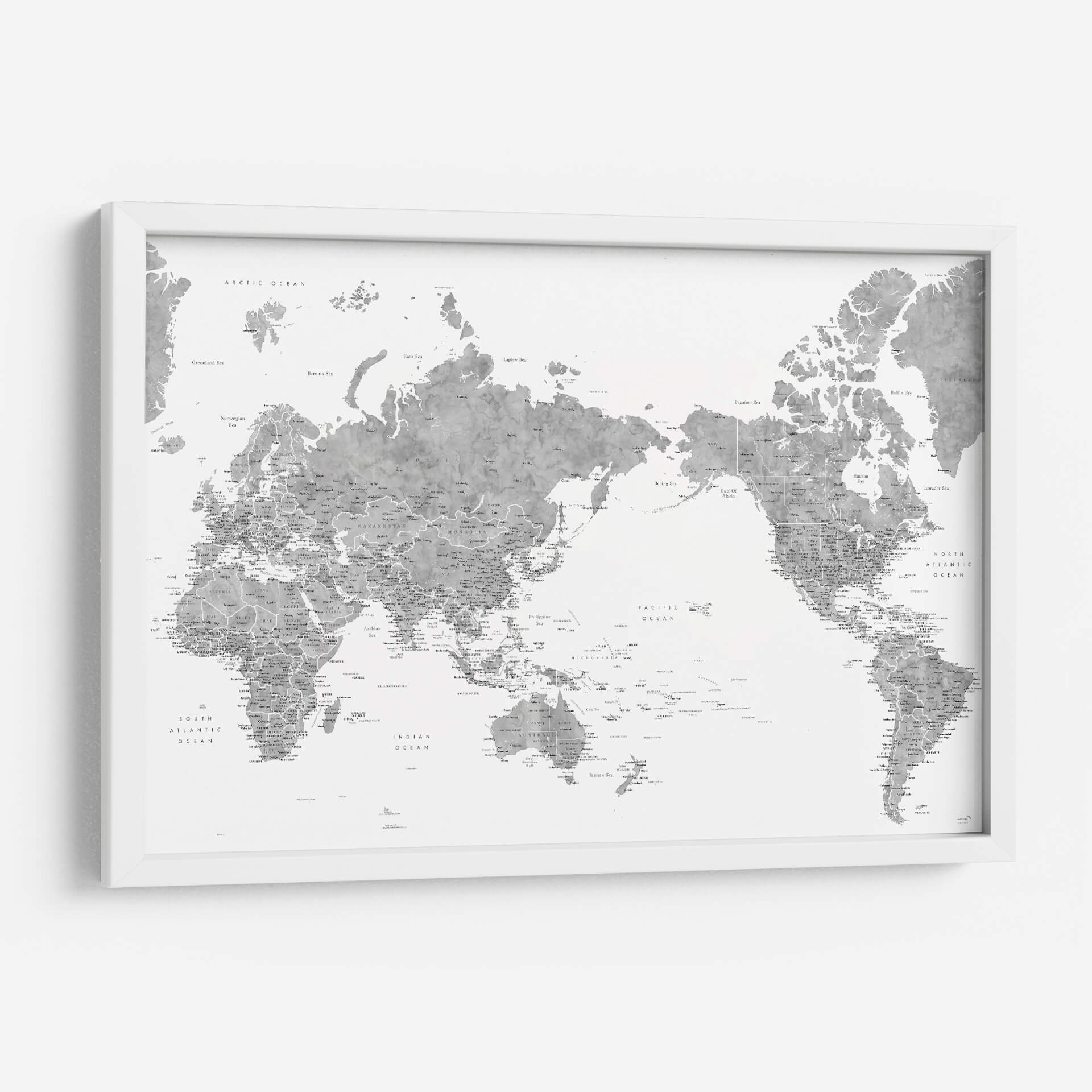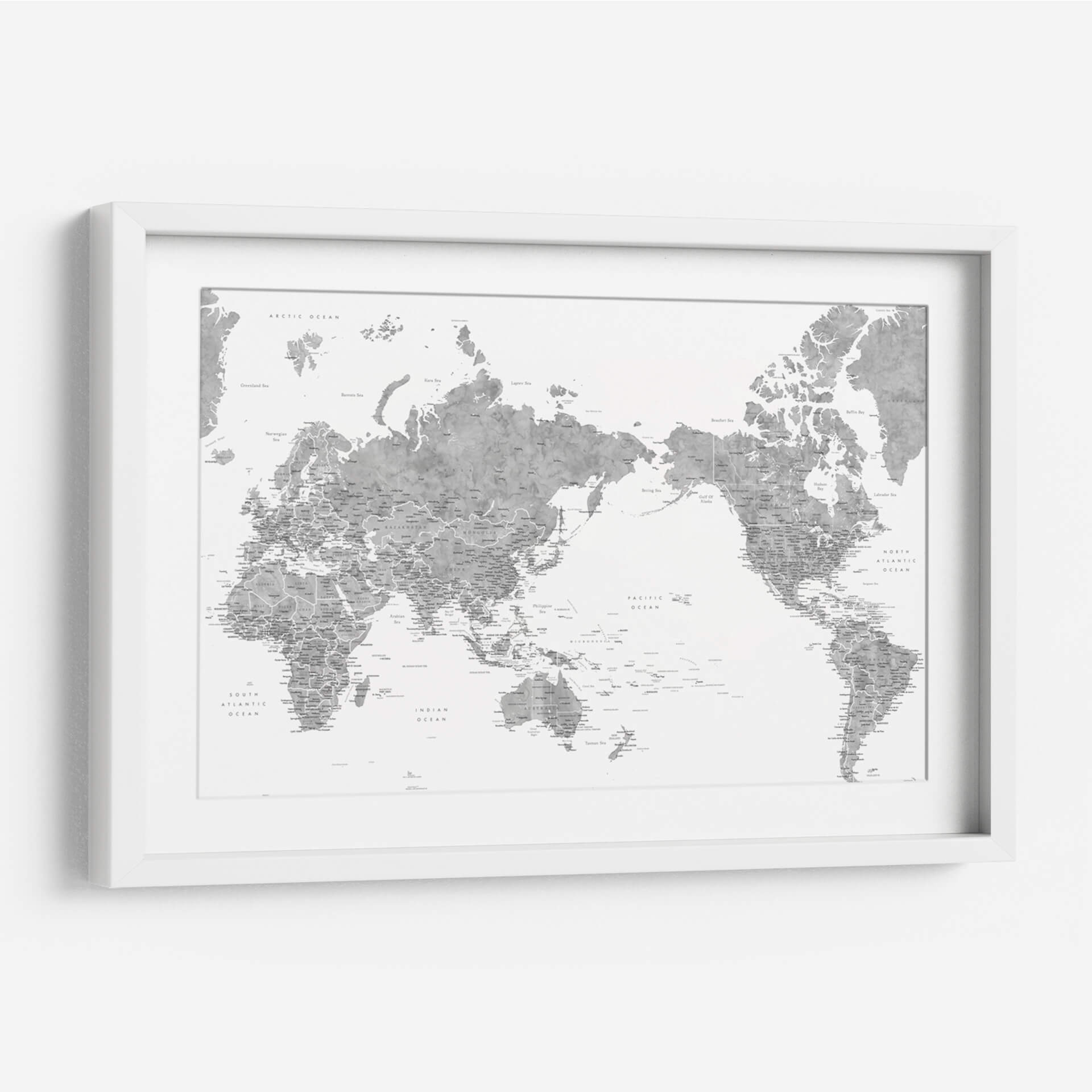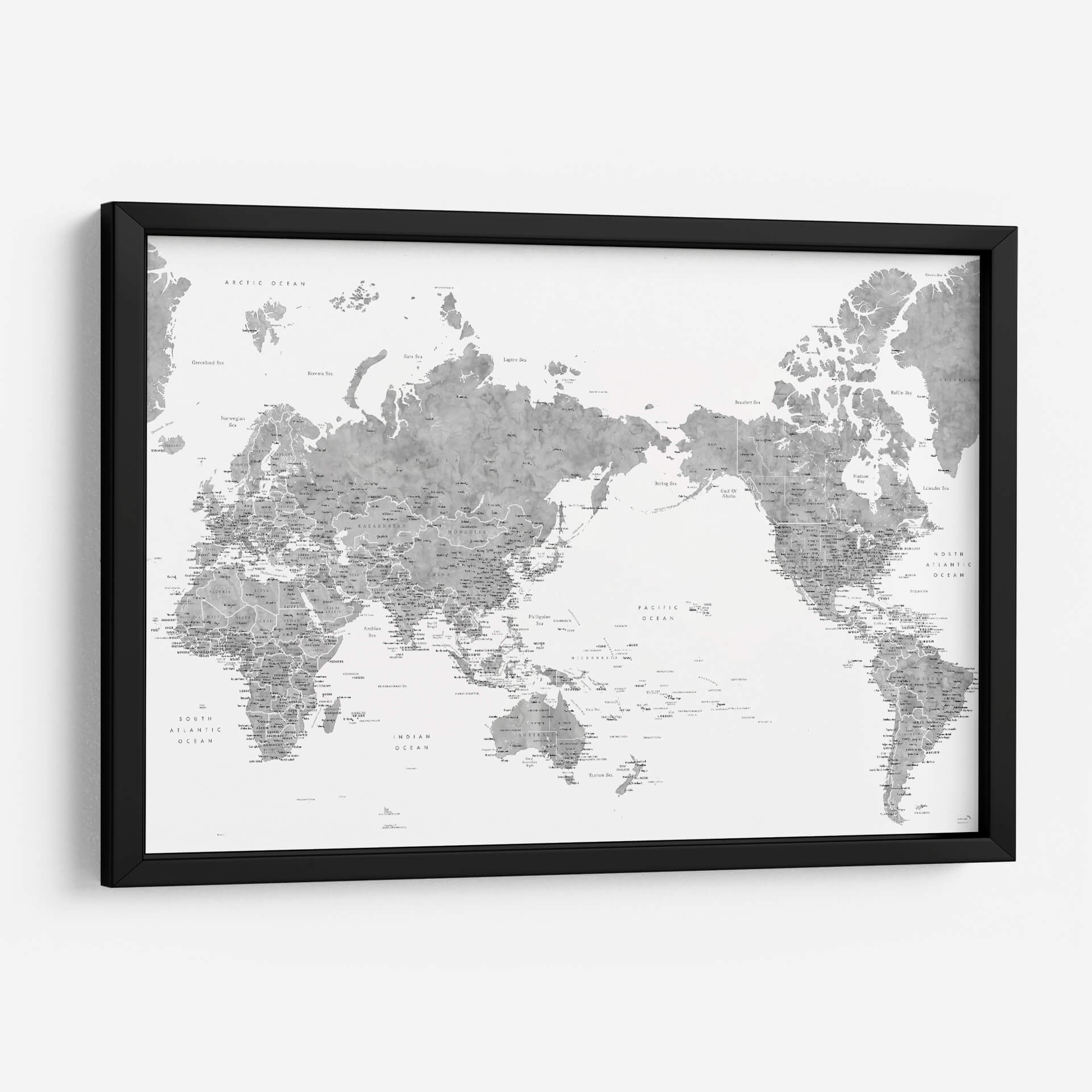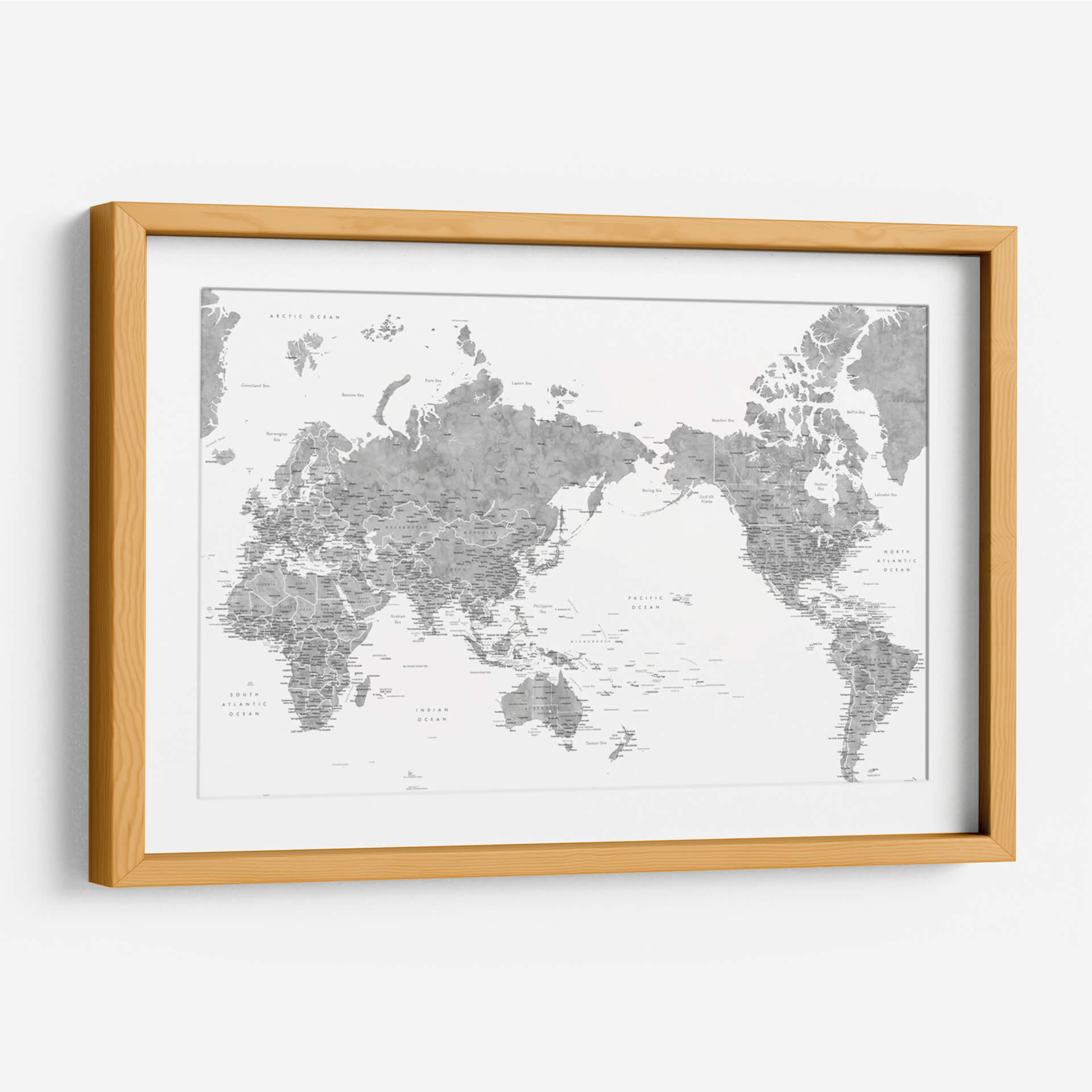 Mapa mundial centrado en el Pacífico en acuarela gris - Rosana Laiz Blursbyai