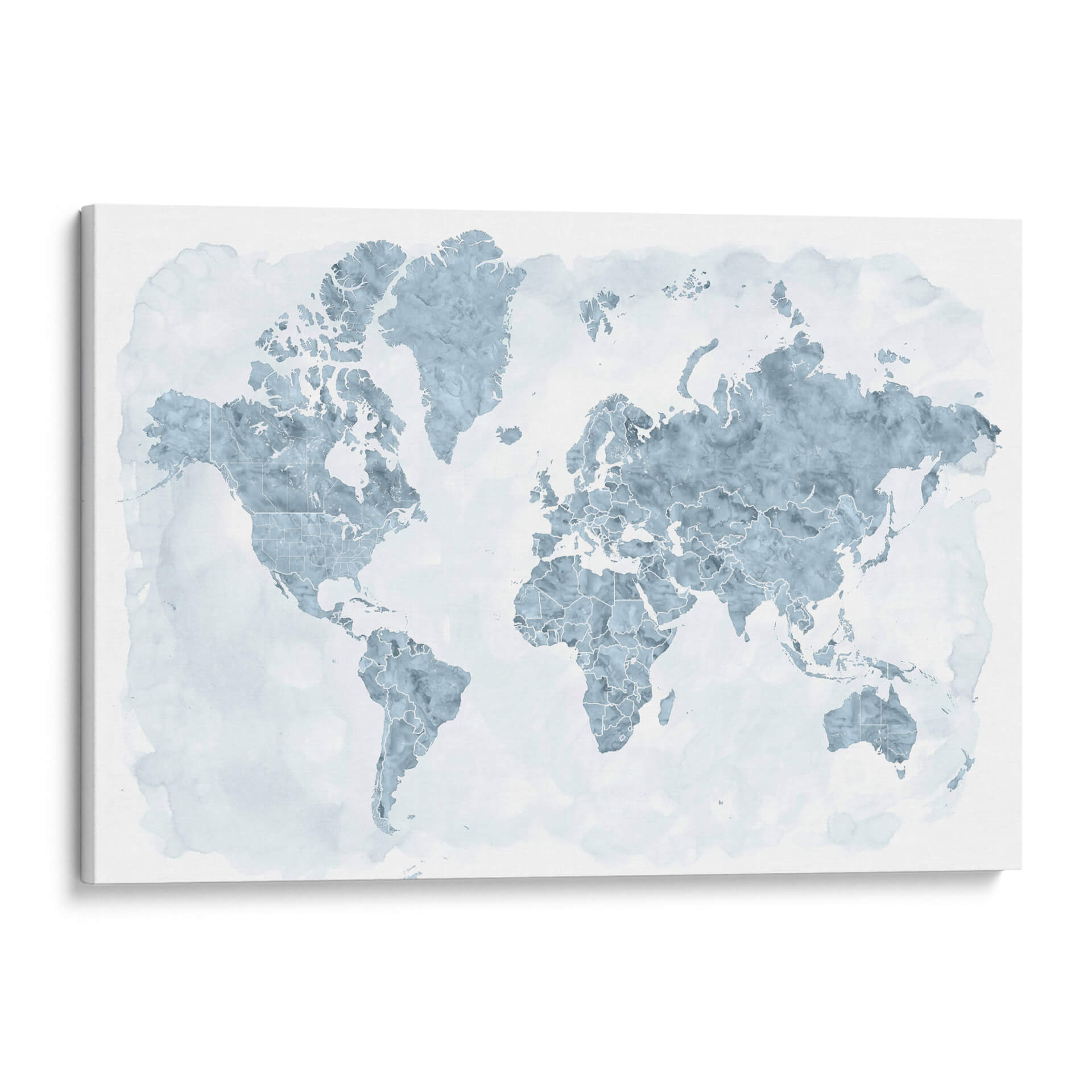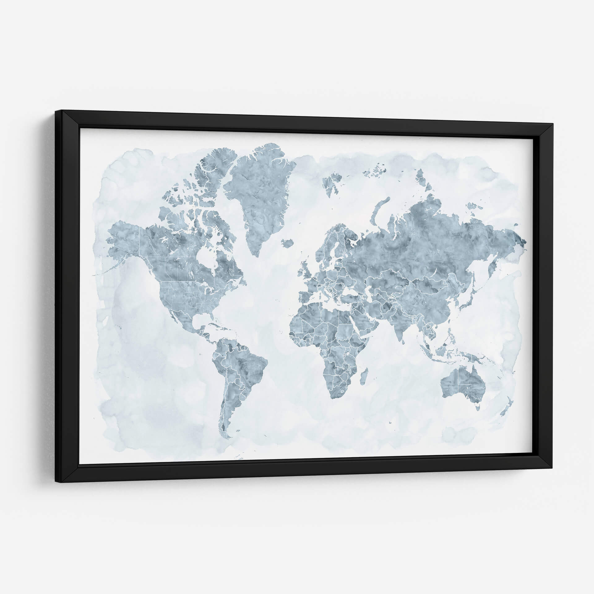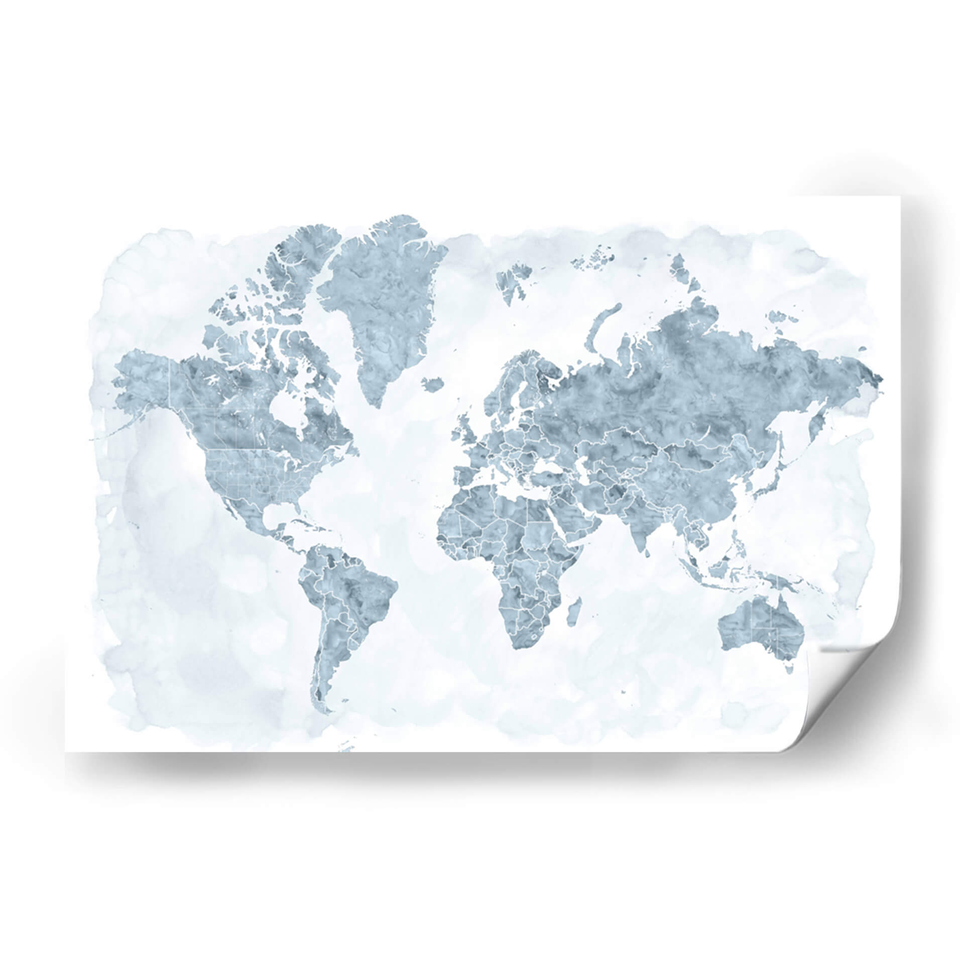Descubre el mundo con este cautivador cuadro decorativo de mapa mundial, donde los países se delinean con una delicada acuarela en tonos azules y grises sobre un fondo blanco etéreo. La obra de Rosana Laiz Blursbyai evoca una sensación de calma y amplitud, perfecta para infundir serenidad en cualquier espacio. Su estilo abstracto y acuoso transforma una representación geográfica familiar en una pieza de arte contemporáneo. Cada continente y país se presenta con contornos finos y sutiles texturas que sugieren el fluir del agua, creando un efecto visual relajante y sofisticado. Este cuadro es ideal para añadir un toque de interés global y elegancia a tu sala de estar, oficina o dormitorio. Su paleta de colores suaves lo convierte en un complemento versátil para diversas decoraciones, desde las más minimalistas hasta las más eclécticas. Imagina este mapa como un punto de partida para conversaciones, un recordatorio de tus viajes o un lienzo para tus sueños de exploración. Transforma tu pared en una ventana al mundo con esta exquisita interpretación artística de nuestro planeta, un símbolo de conexión y descubrimiento que inspirará a todos los que lo contemplen.