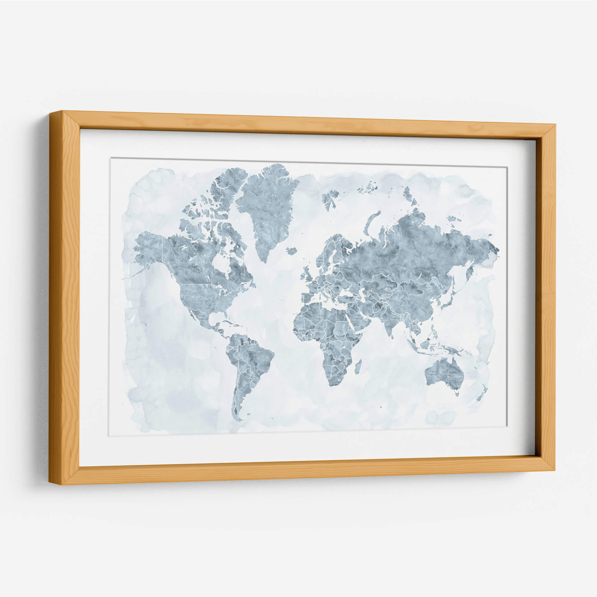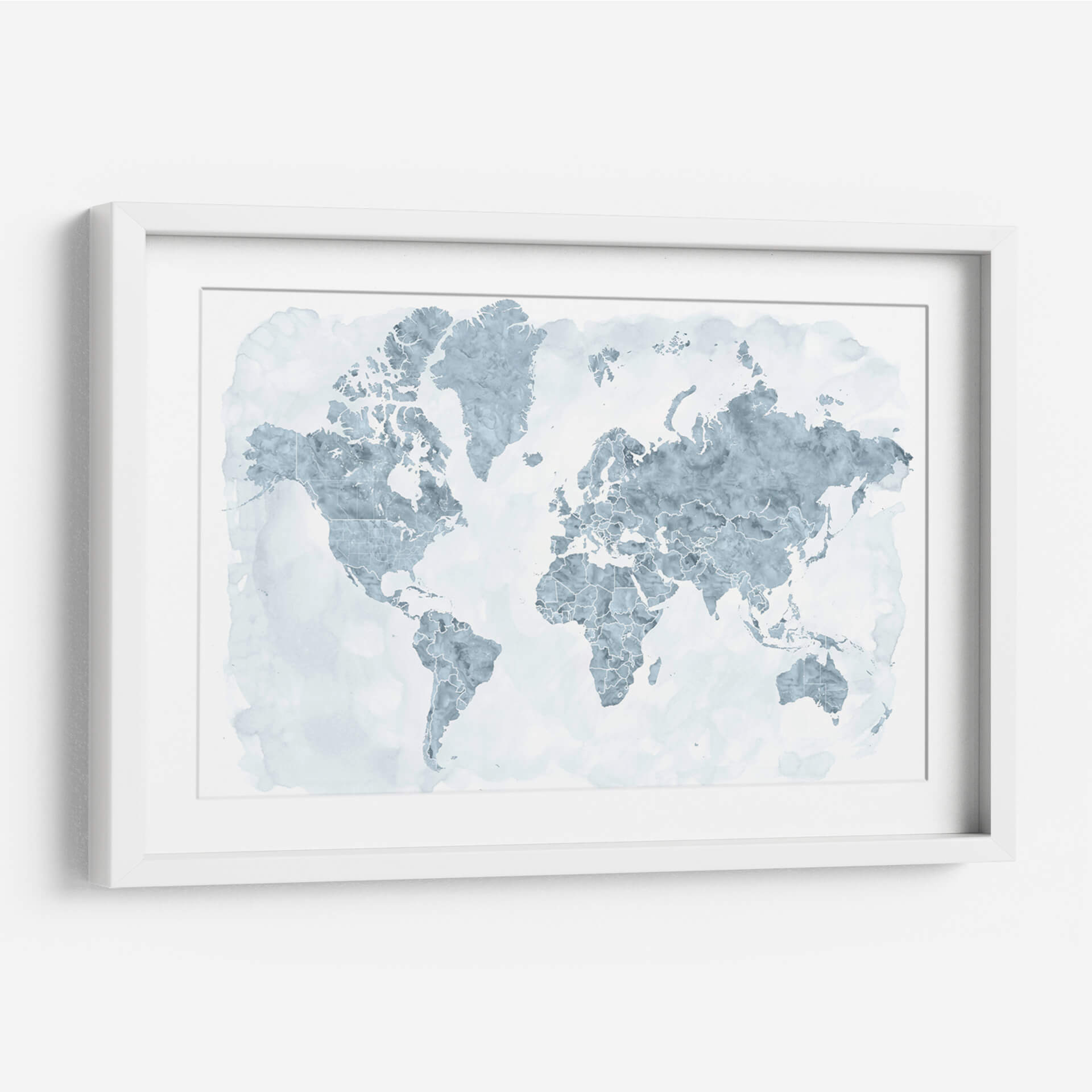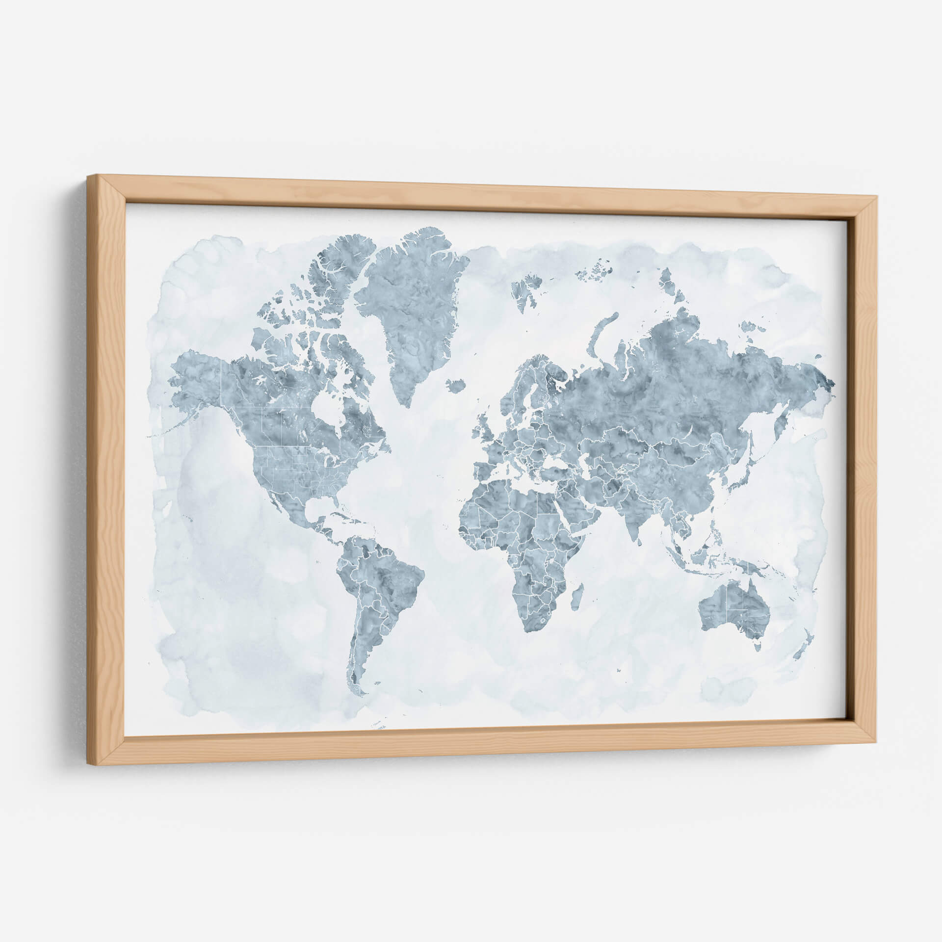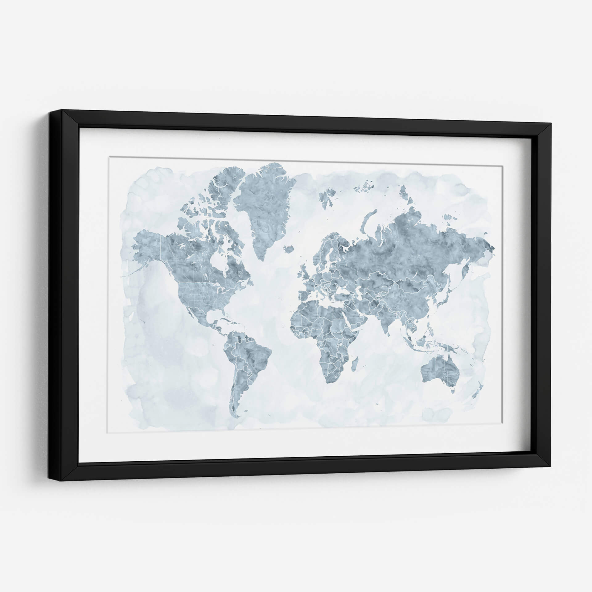 Descubre el mundo con este cautivador cuadro decorativo de mapa mundial, donde los países se delinean con una delicada acuarela en tonos azules y grises sobre un fondo blanco etéreo. La obra de Rosana Laiz Blursbyai evoca una sensación de calma y amplitud, perfecta para infundir serenidad en cualquier espacio. Su estilo abstracto y acuoso transforma una representación geográfica familiar en una pieza de arte contemporáneo. Cada continente y país se presenta con contornos finos y sutiles texturas que sugieren el fluir del agua, creando un efecto visual relajante y sofisticado. Este cuadro es ideal para añadir un toque de interés global y elegancia a tu sala de estar, oficina o dormitorio. Su paleta de colores suaves lo convierte en un complemento versátil para diversas decoraciones, desde las más minimalistas hasta las más eclécticas. Imagina este mapa como un punto de partida para conversaciones, un recordatorio de tus viajes o un lienzo para tus sueños de exploración. Transforma tu pared en una ventana al mundo con esta exquisita interpretación artística de nuestro planeta, un símbolo de conexión y descubrimiento que inspirará a todos los que lo contemplen.