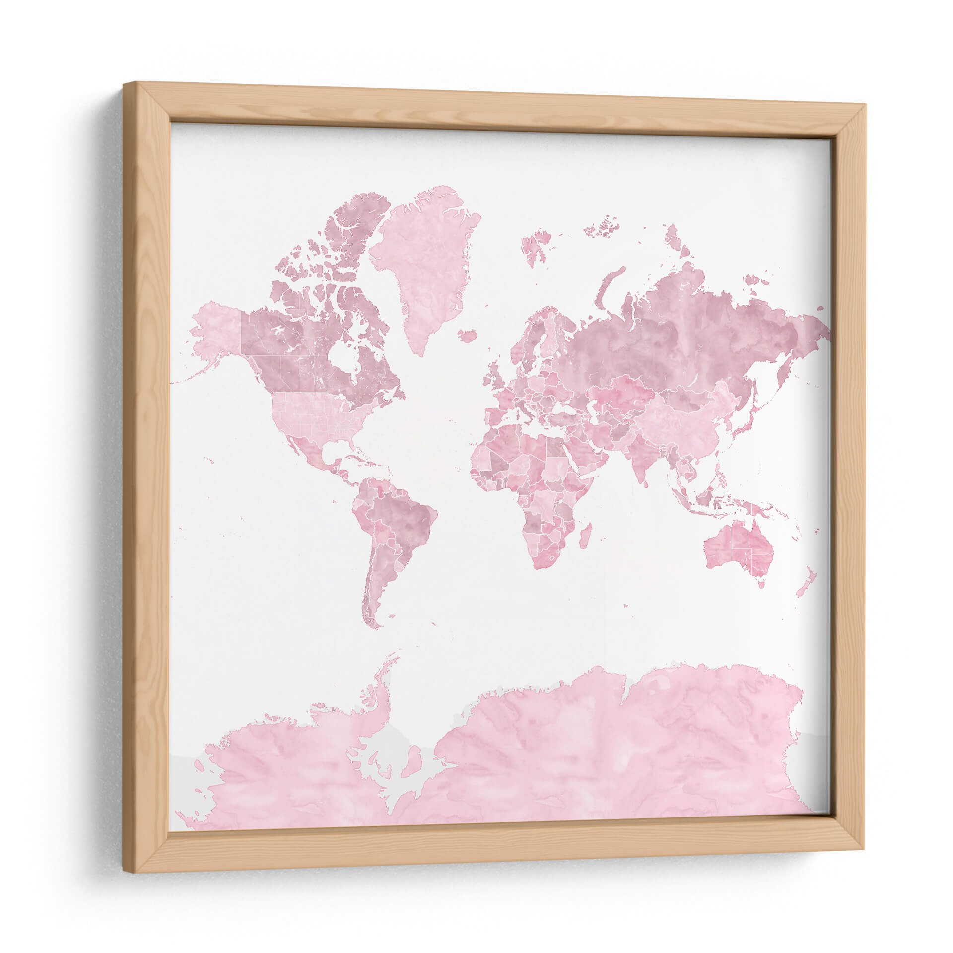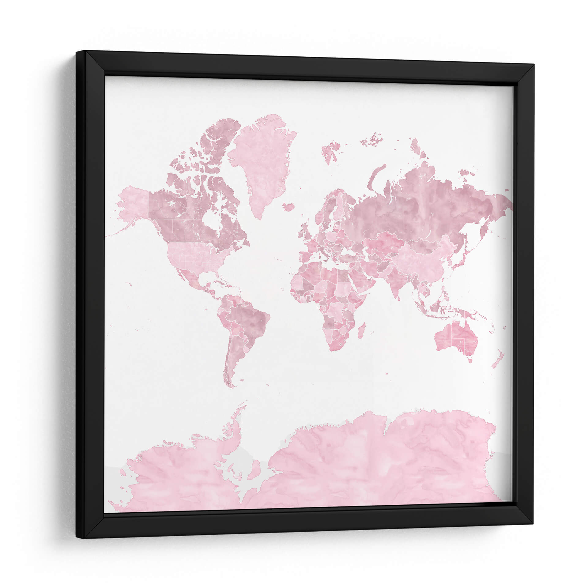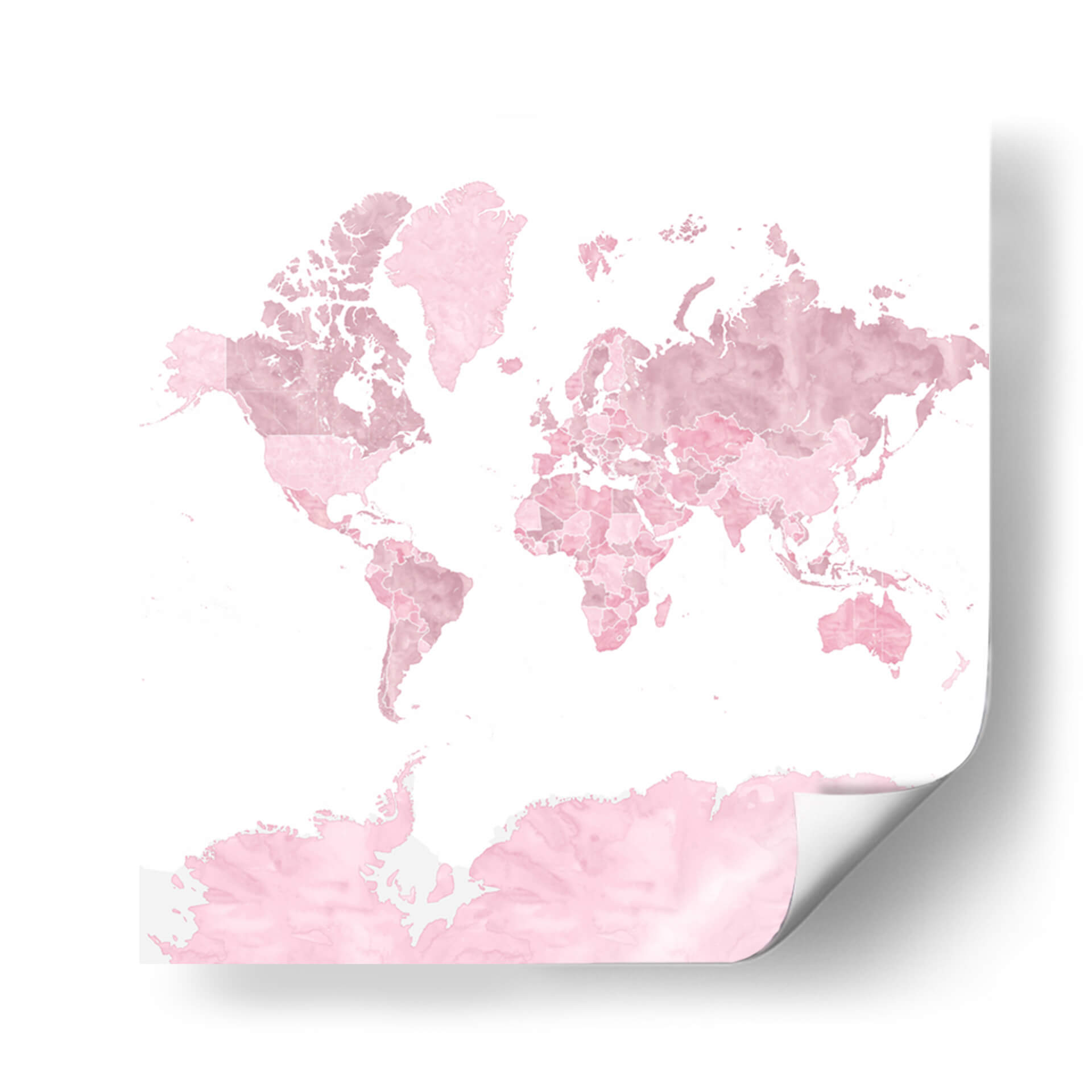 Mapa mundial de acuarela rosa con países delineados Melit - Rosana Laiz Blursbyai