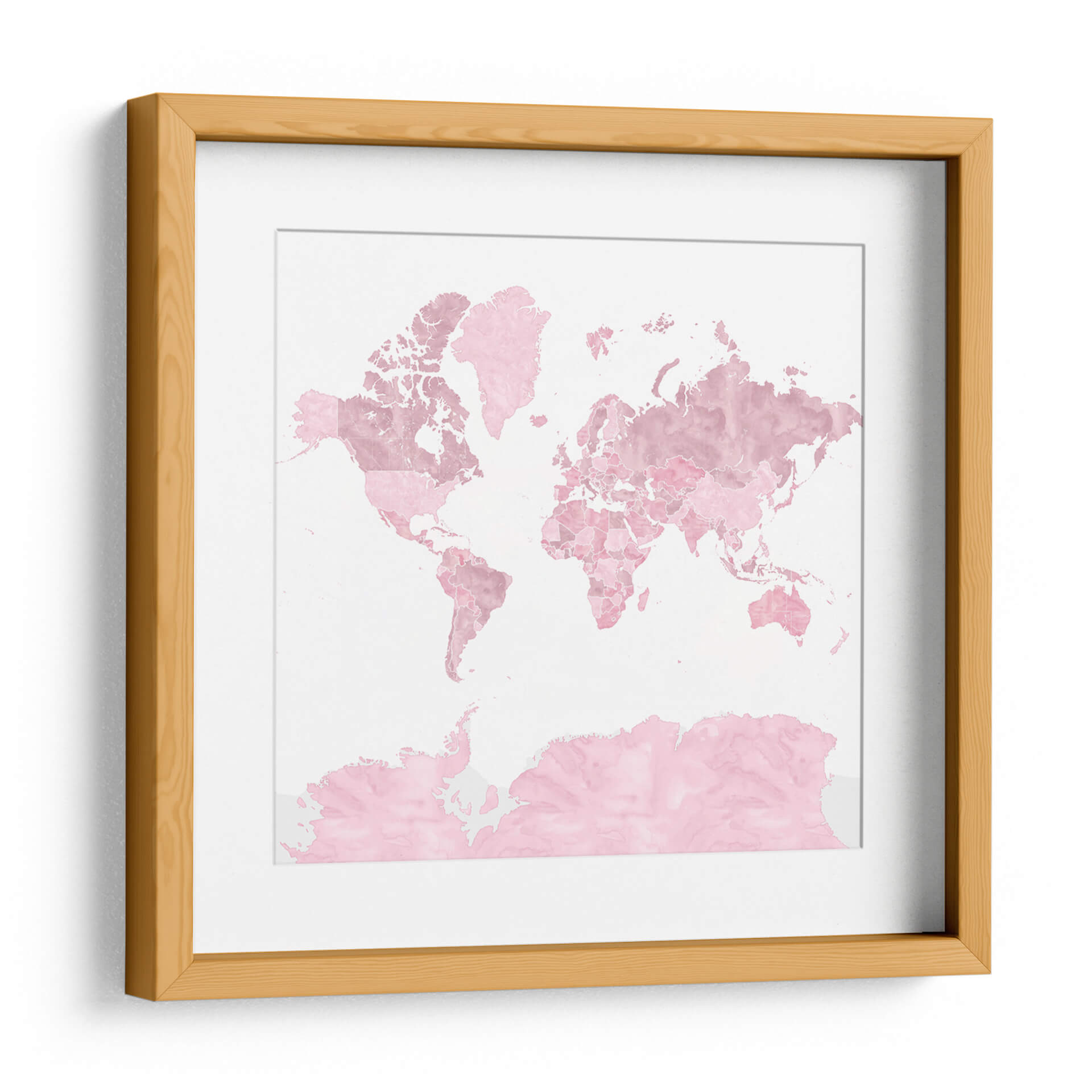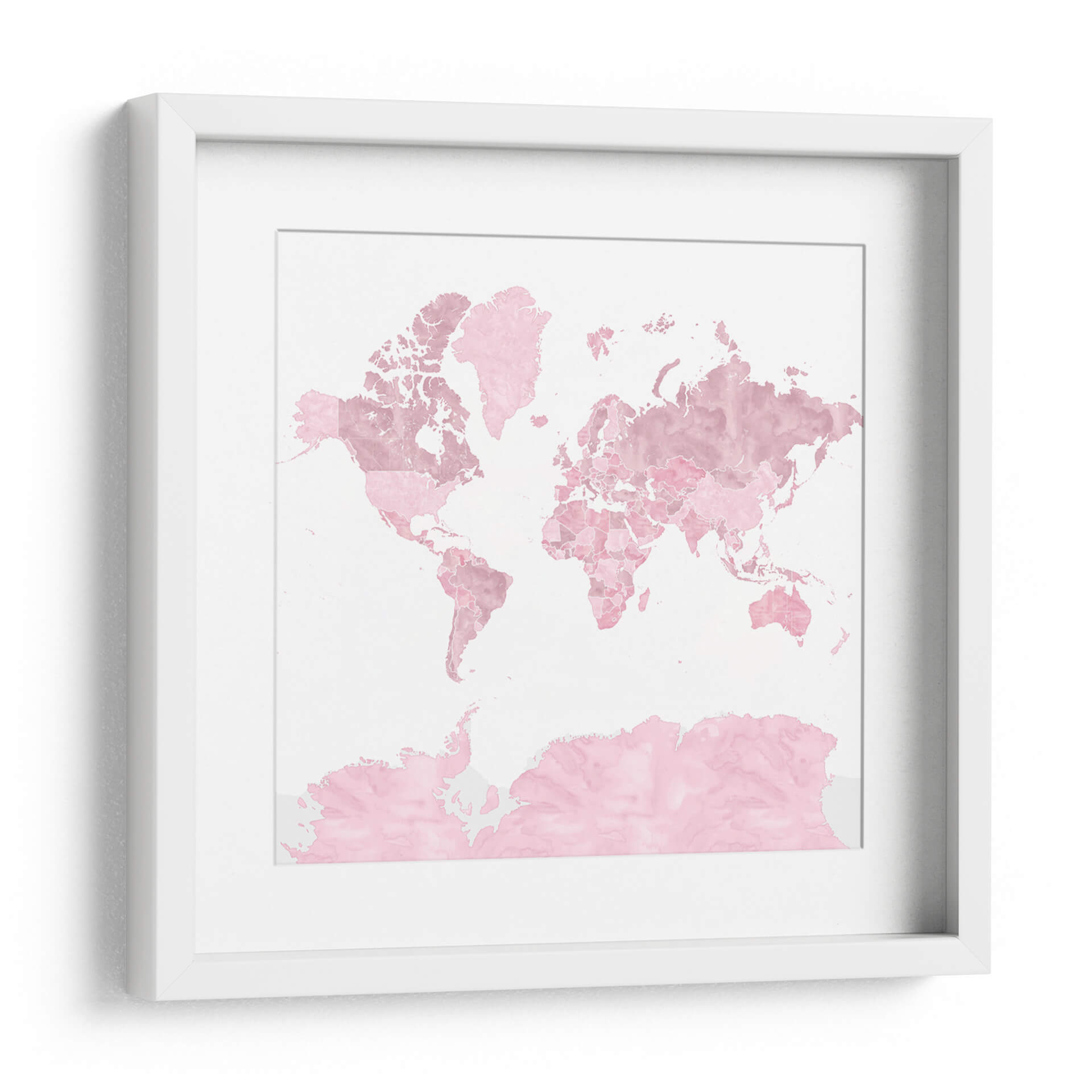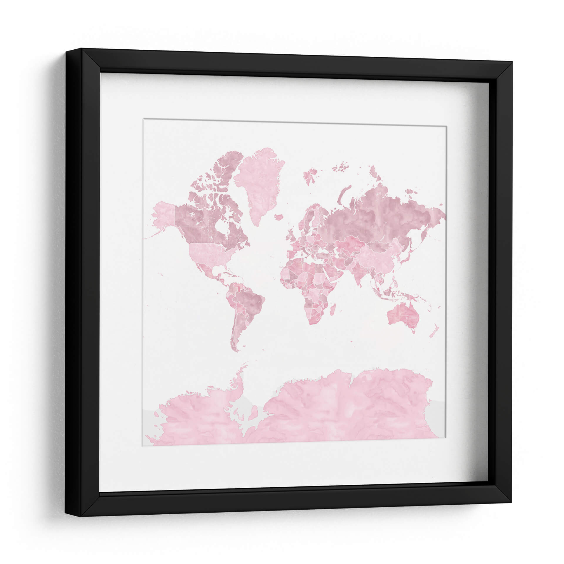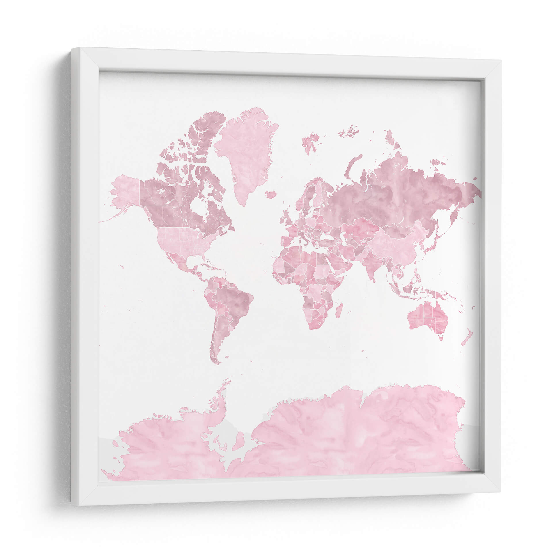 Mapa mundial de acuarela rosa con países delineados Melit - Rosana Laiz Blursbyai
