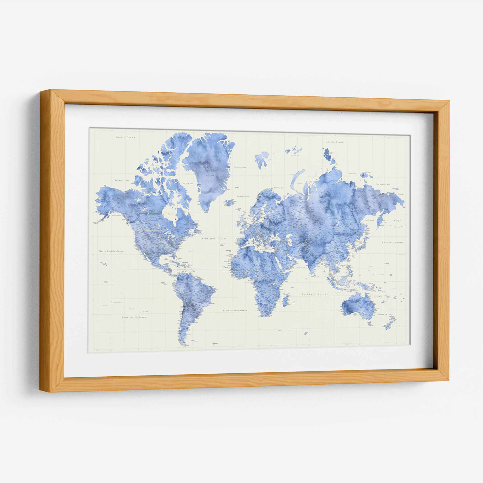 Embárquese en un viaje visual con este detallado mapa del mundo, una obra de arte que captura la magnificencia de nuestro planeta. Con una paleta de acuarela en tonos azules vibrantes y suaves sobre un fondo neutro, este cuadro decorativo aporta una sensación de calma y amplitud a cualquier espacio. Cada continente y océano está representado con una riqueza de detalles, invitando a la exploración y la contemplación. El estilo de la acuarela, con sus manchas y transiciones de color fluidas, añade una dimensión artística y moderna a la cartografía tradicional, creando un ambiente sereno pero inspirador. Ideal para estudios, oficinas o salas de estar, este mapa es perfecto para los amantes de la geografía, los viajeros soñadores o cualquiera que busque una pieza de conversación sofisticada. Su diseño atemporal y su ejecución artística lo convierten en una adición valiosa para decorar paredes, añadiendo un toque de conocimiento global y estilo contemporáneo. Transforma tu hogar u oficina en un centro de inspiración con este impresionante mapa mundi en acuarela, una invitación constante a soñar con nuevas aventuras y destinos.